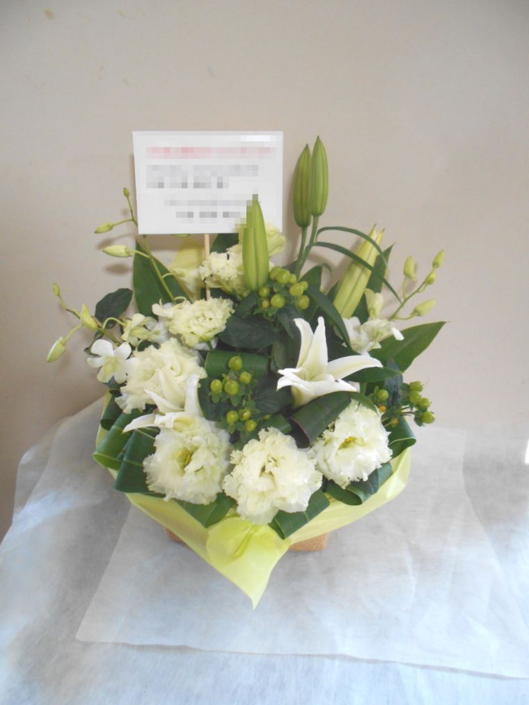 この写真は、実際にお届けさせていただいたアレンジメントです