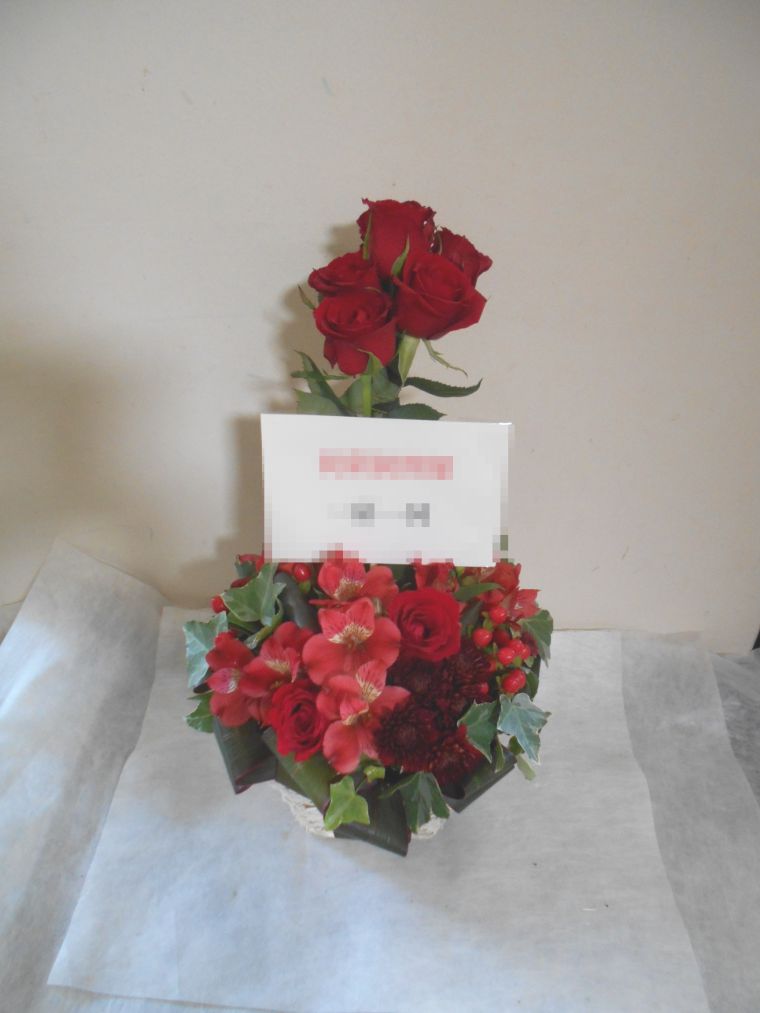 アレンジメントの実際にお届けした写真です。花秘書では発送前に写真をメールで送信致しますので安心して大切な顧客や取引様へのギフトにご利用頂けます。