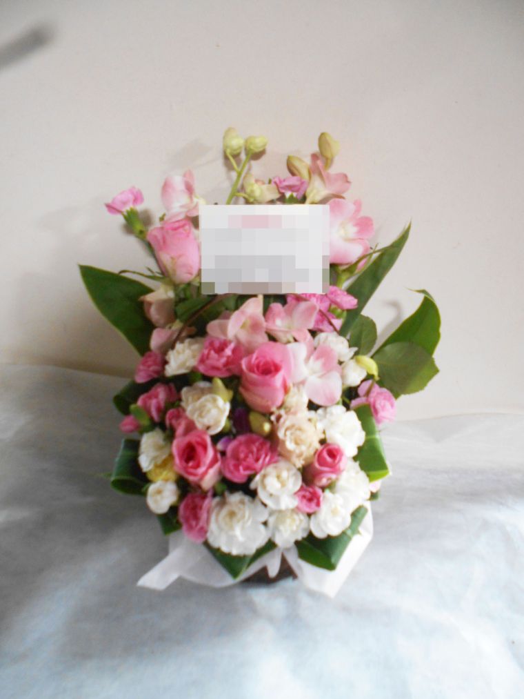 アレンジメントの実際にお届けした写真です。花秘書では発送前に写真をメールで送信致しますので安心して大切な顧客や取引様へのギフトにご利用頂けます。