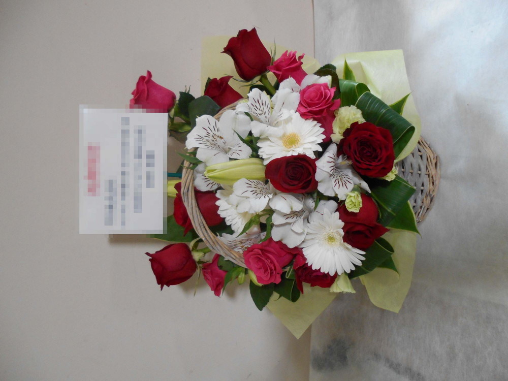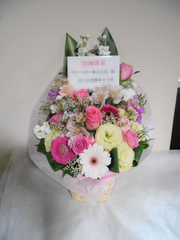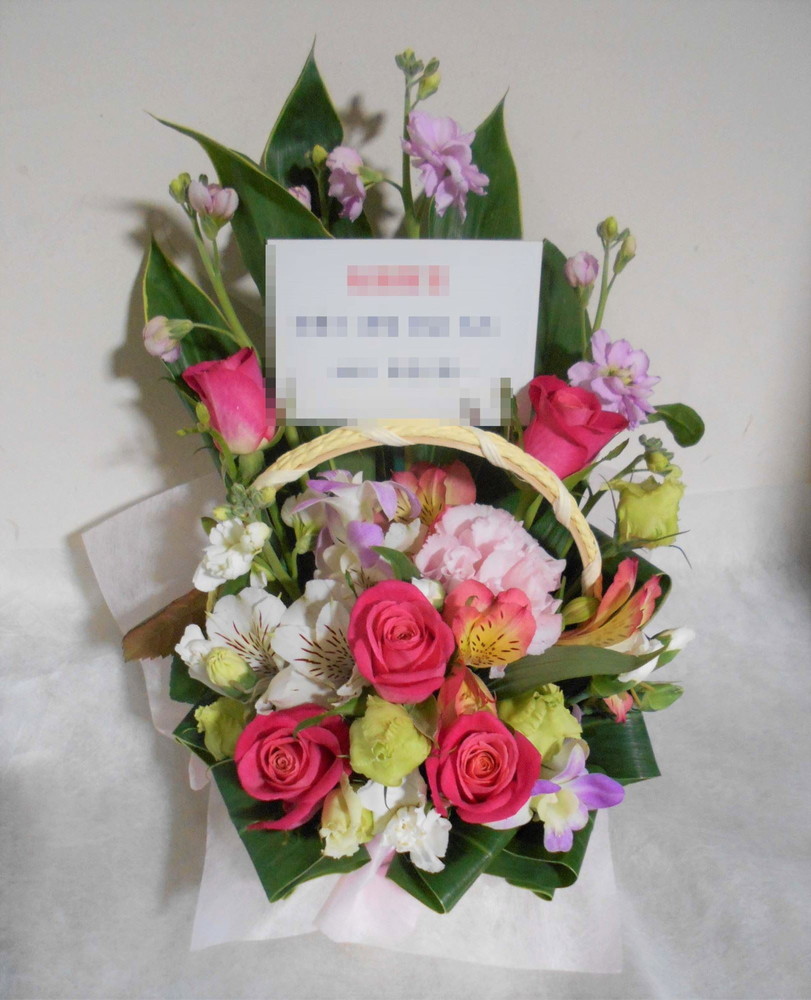 アレンジメントの実際にお届けした写真です。花秘書では発送前に写真をメールで送信致しますので安心して大切な顧客や取引様へのギフトにご利用頂けます。