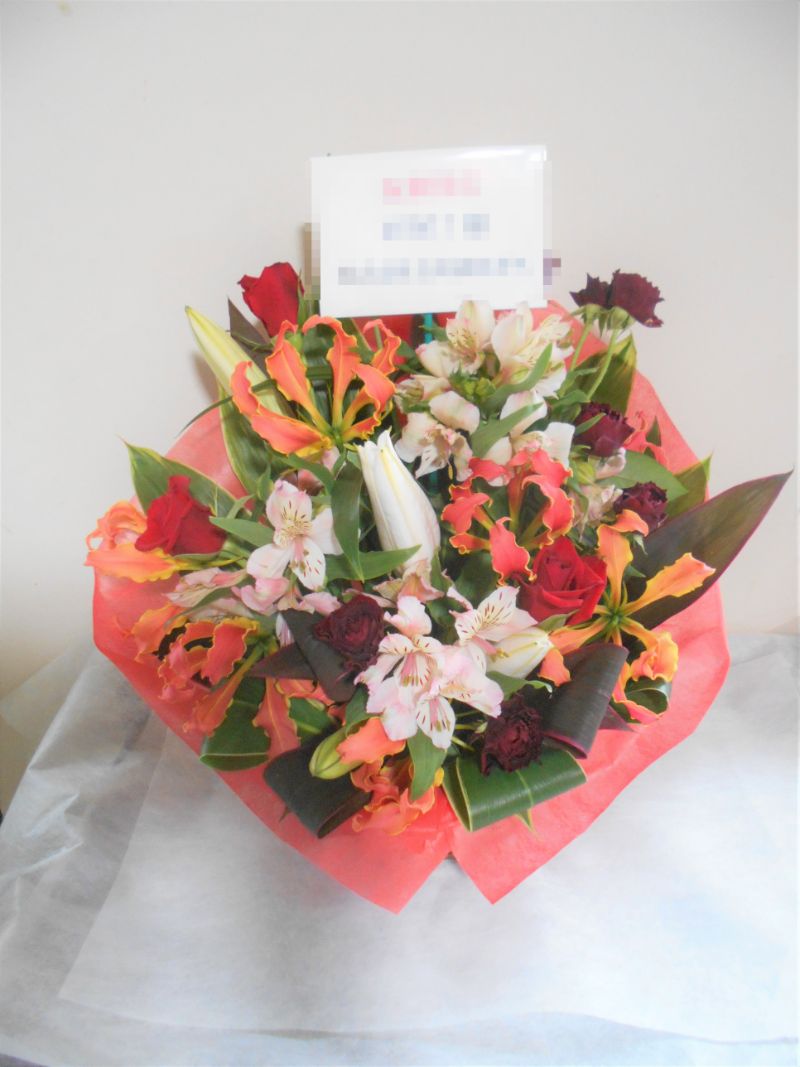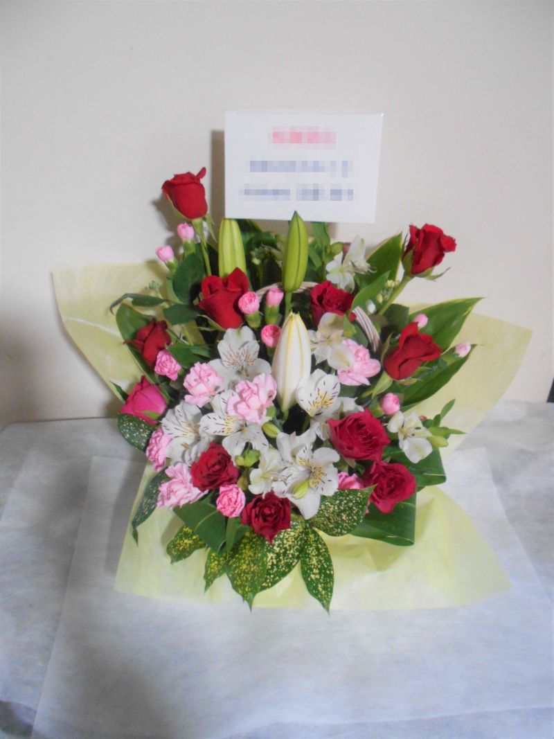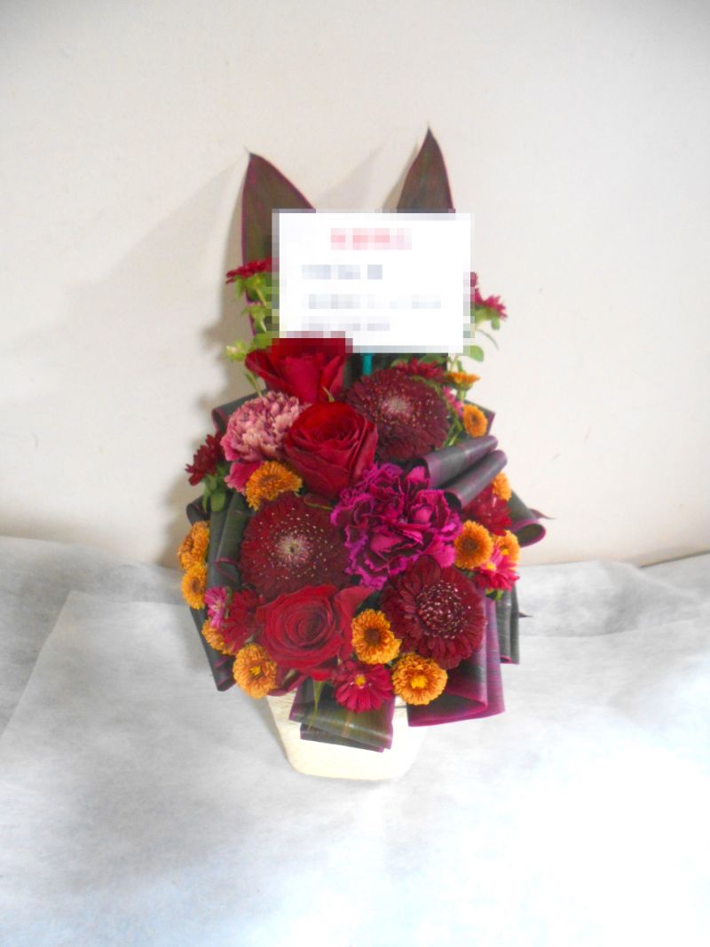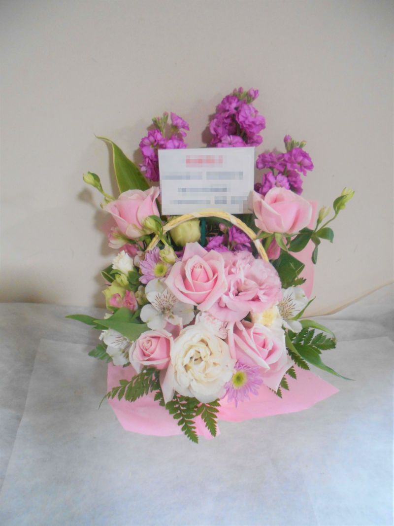 アレンジメントの実際にお届けした写真です。花秘書では発送前に写真をメールで送信致しますので安心して大切な顧客や取引様へのギフトにご利用頂けます。