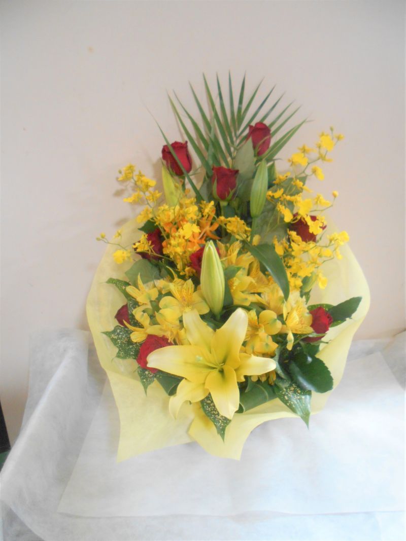 この写真は、実際にお届けさせていただいたアレンジメントです