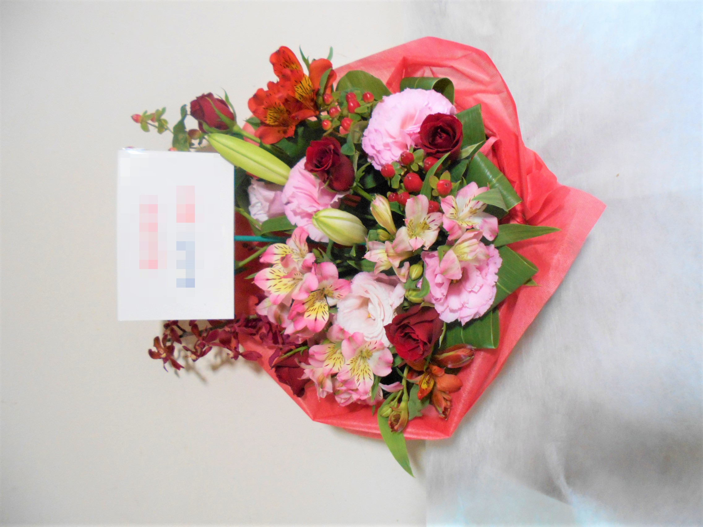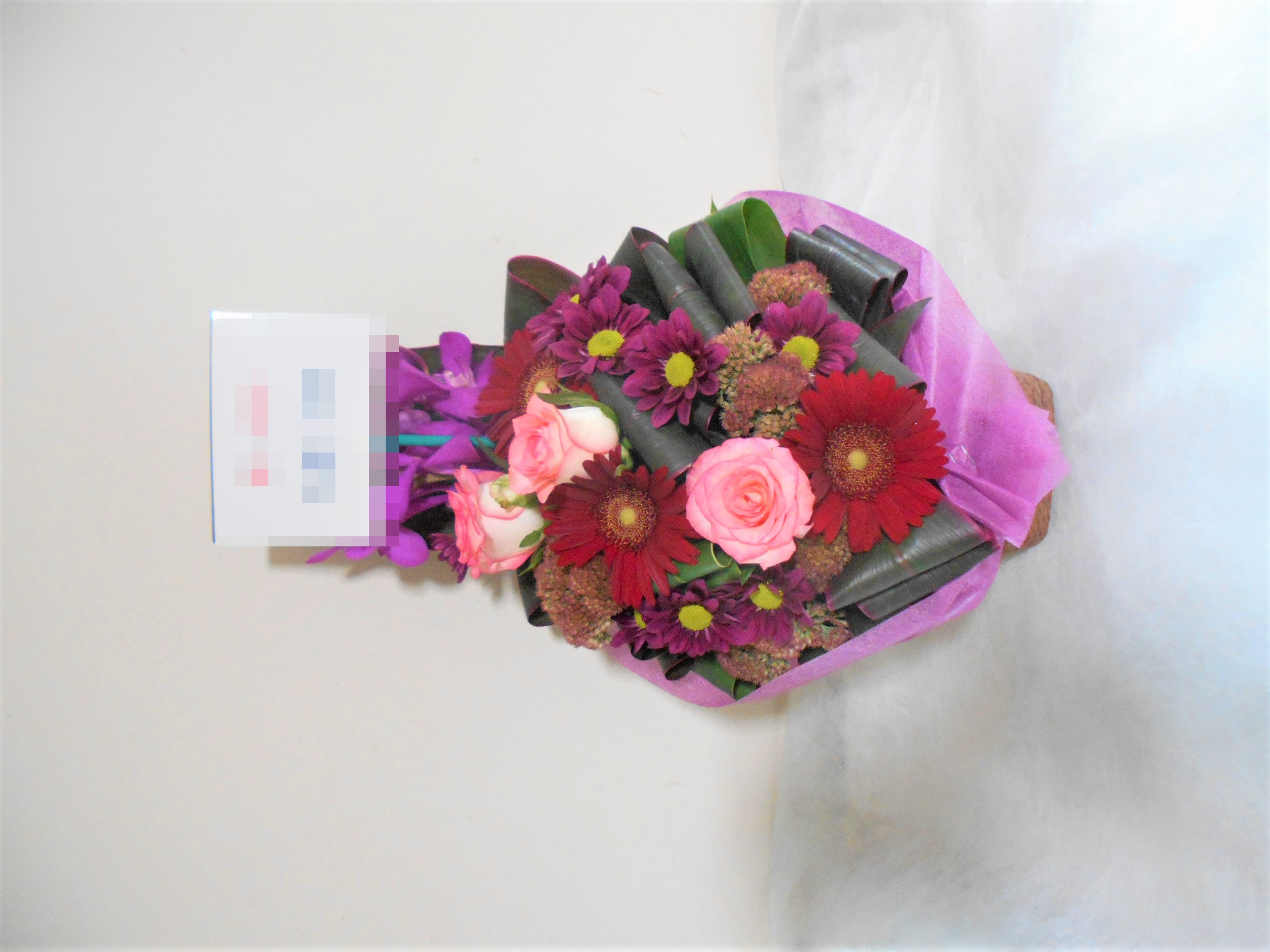 この写真は、実際にお届けさせていただいたアレンジメントです