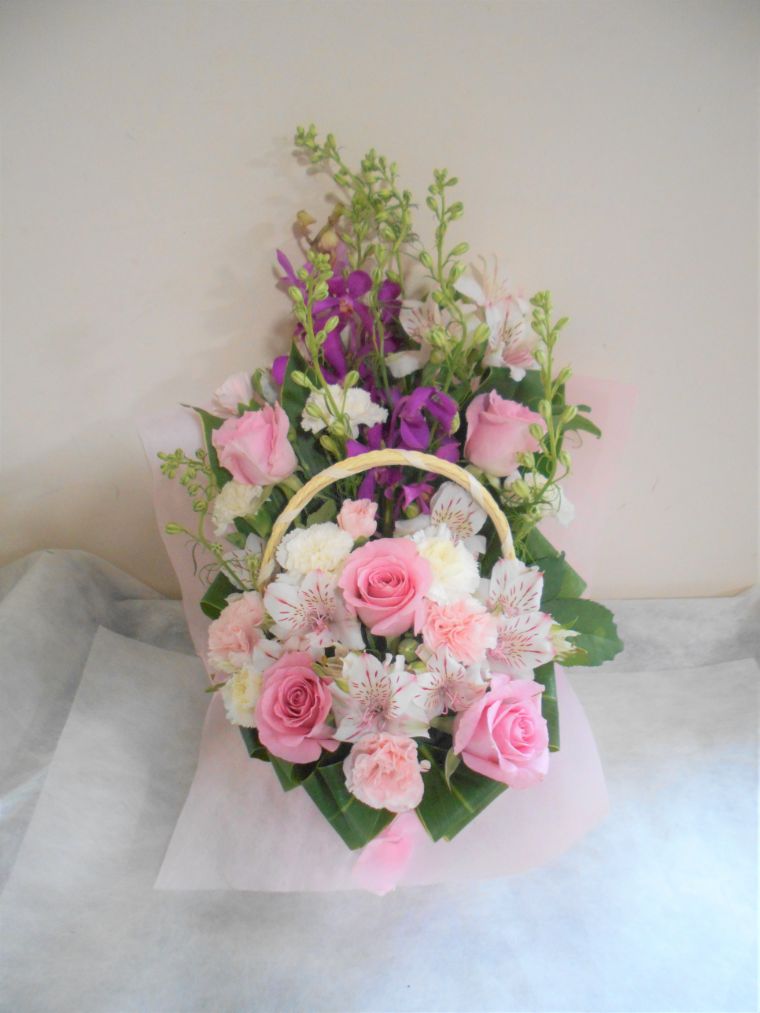 生花(バスケット)サイズ 約[H:25(取手H約27)×W:20(cm)]