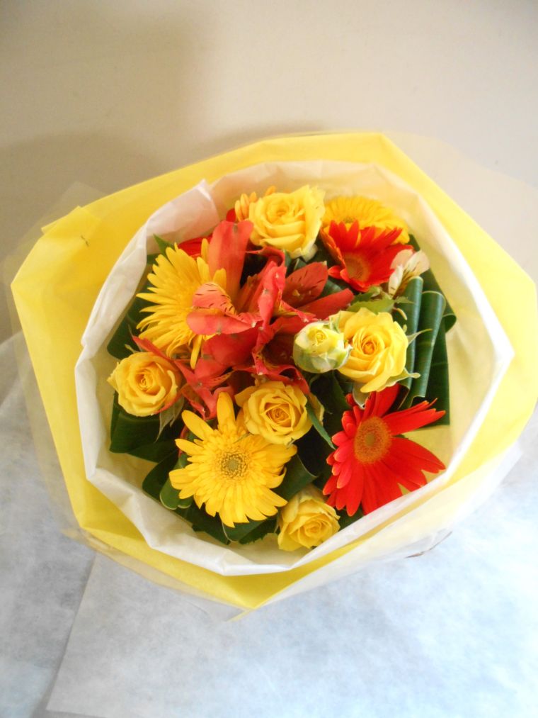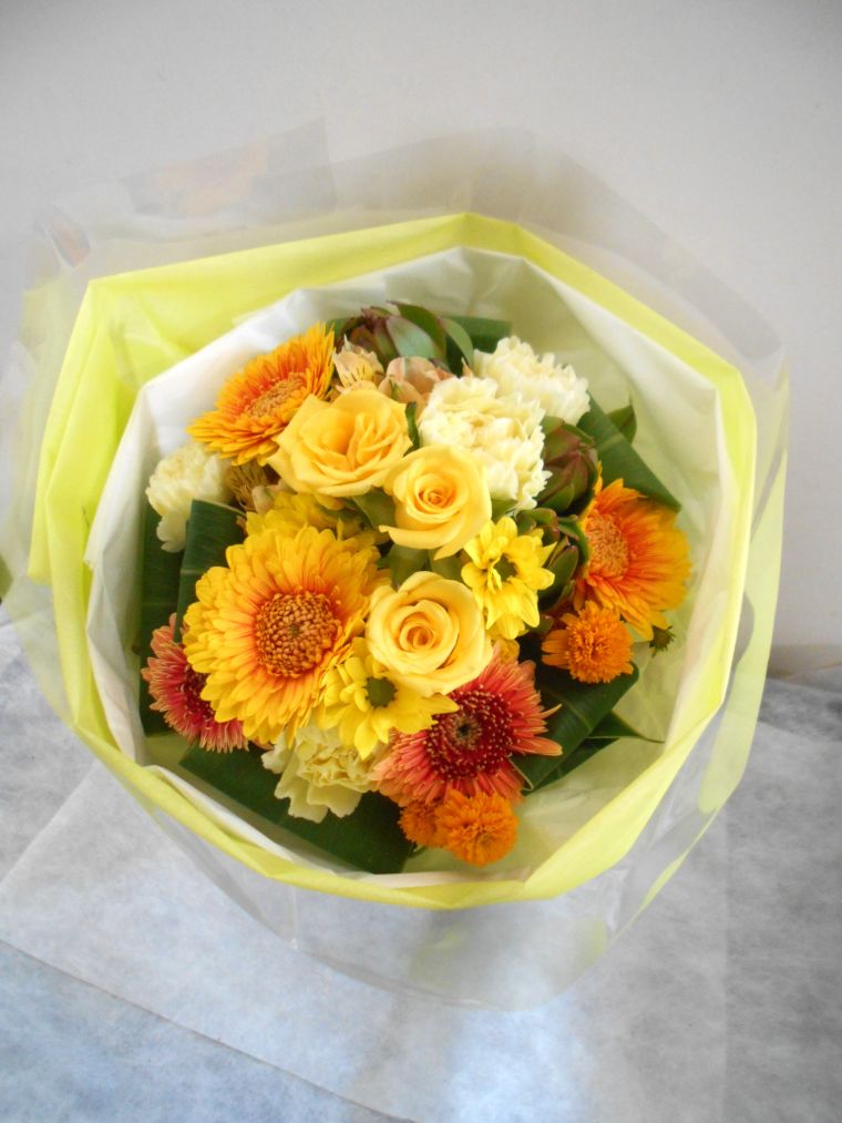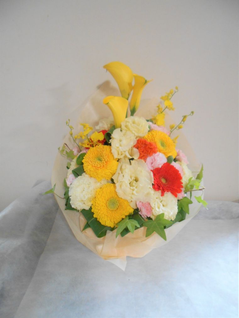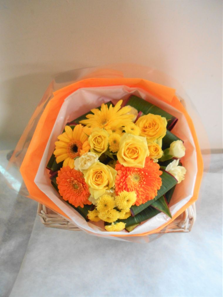 鮮やかな黄色オレンジ系のブーケ(花束)