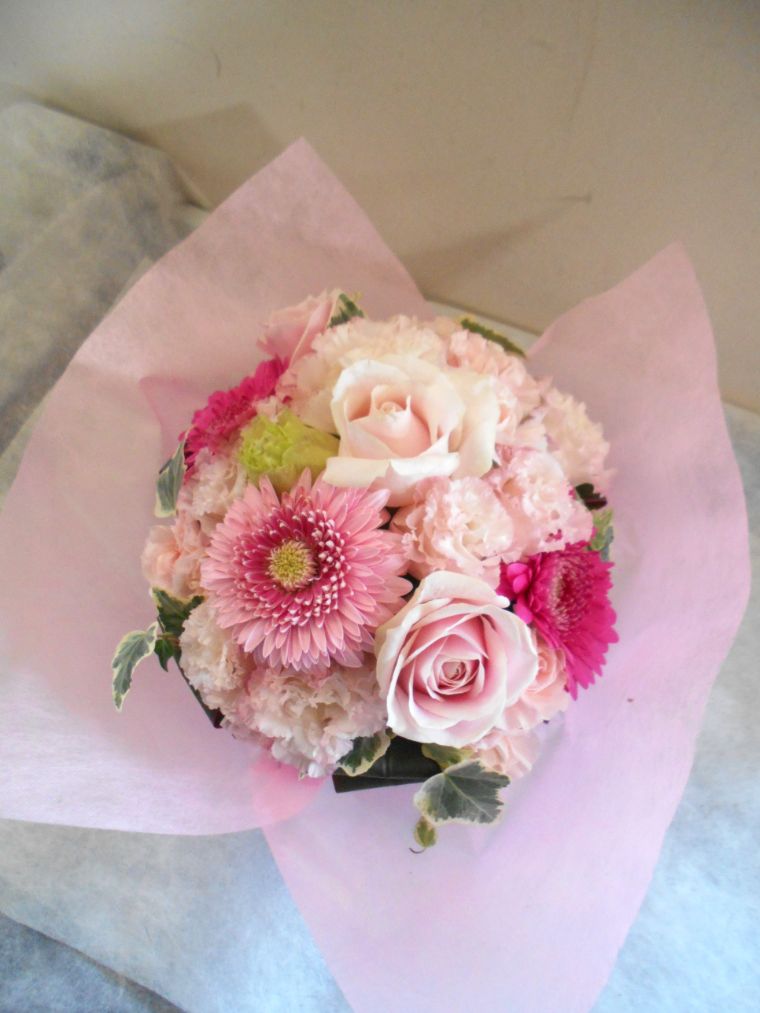 この写真は、実際にお届けさせていただいたアレンジメントです