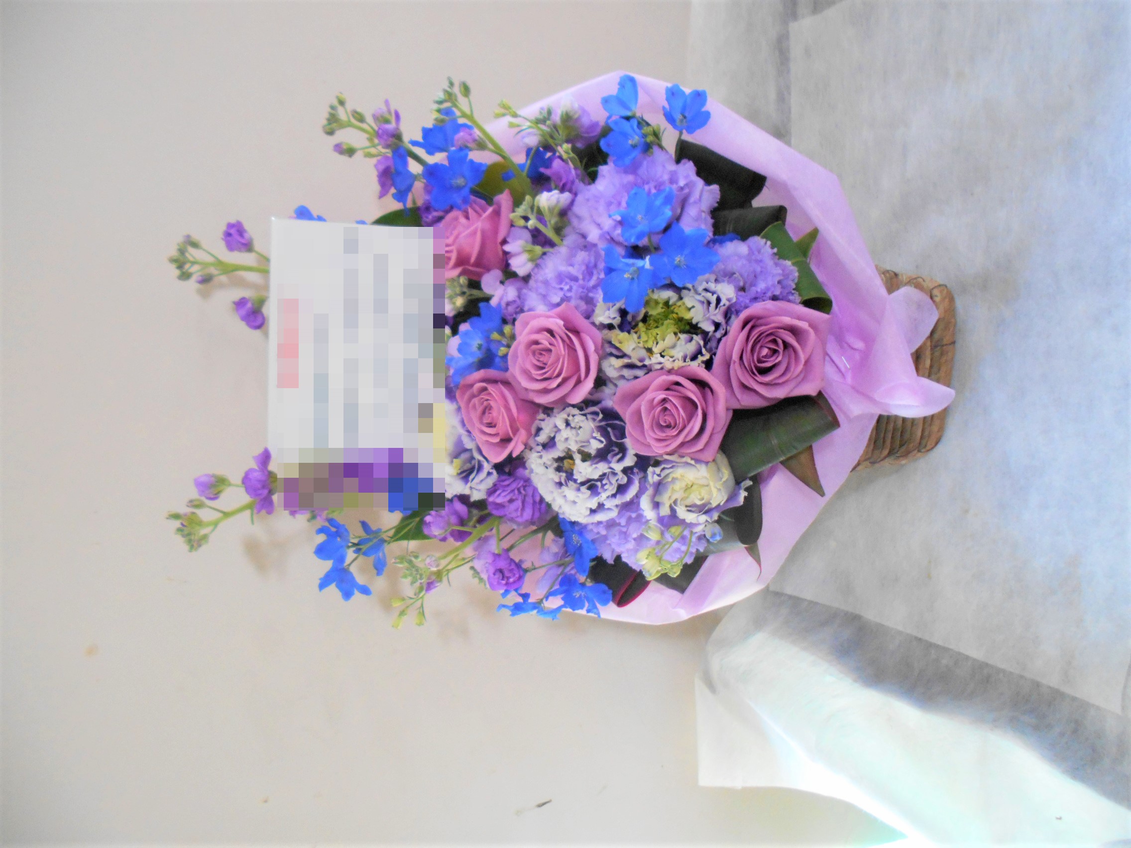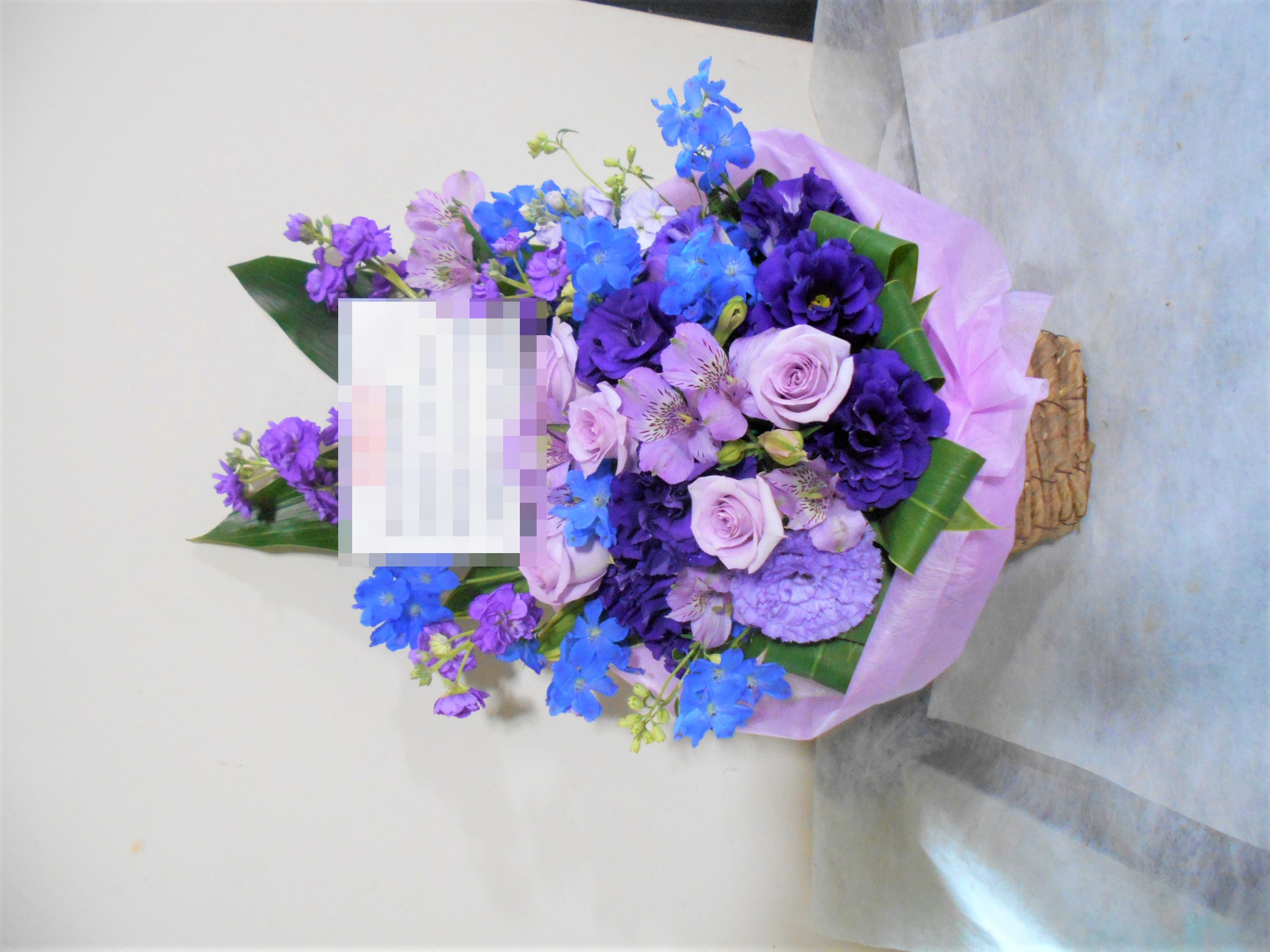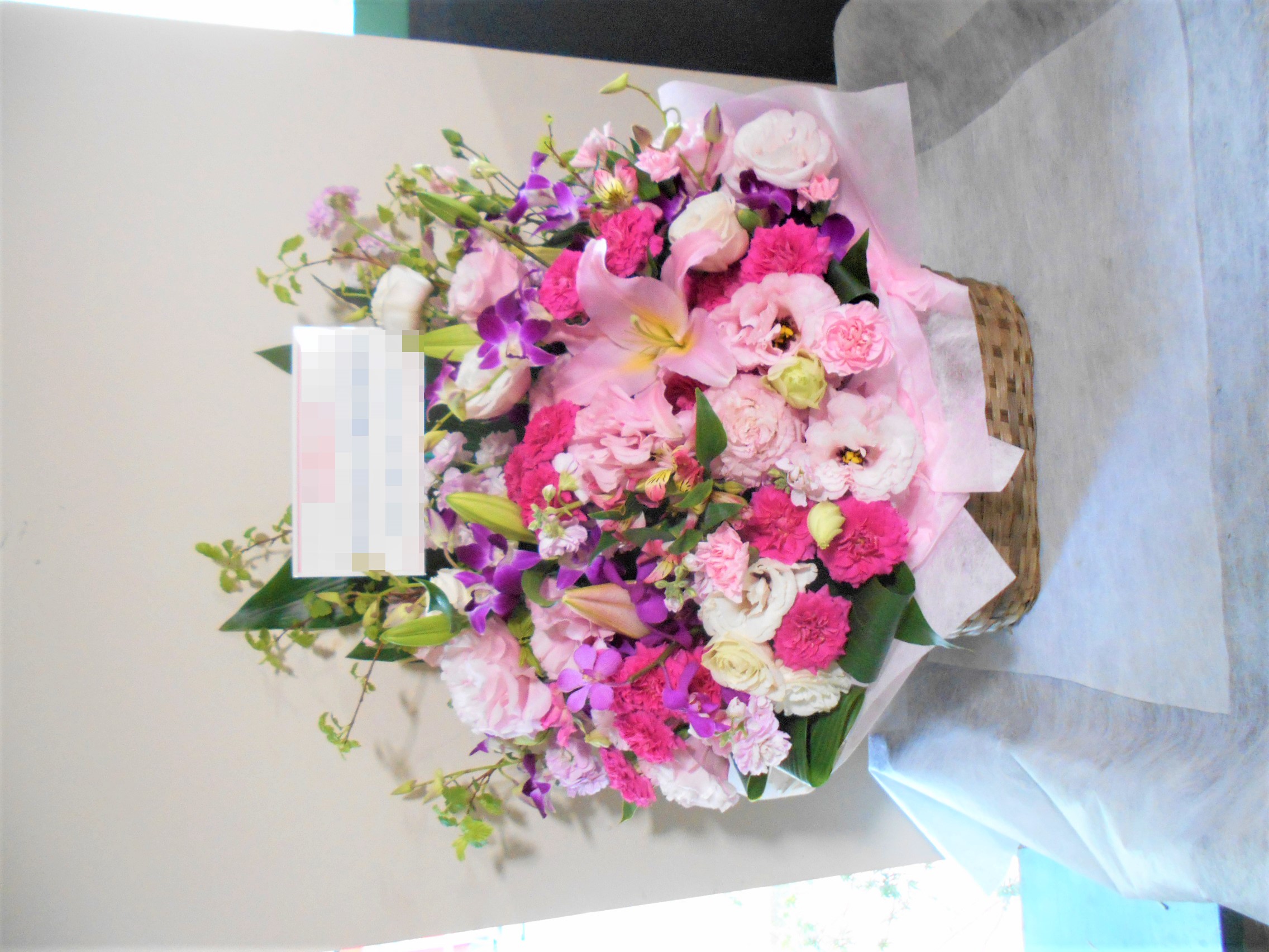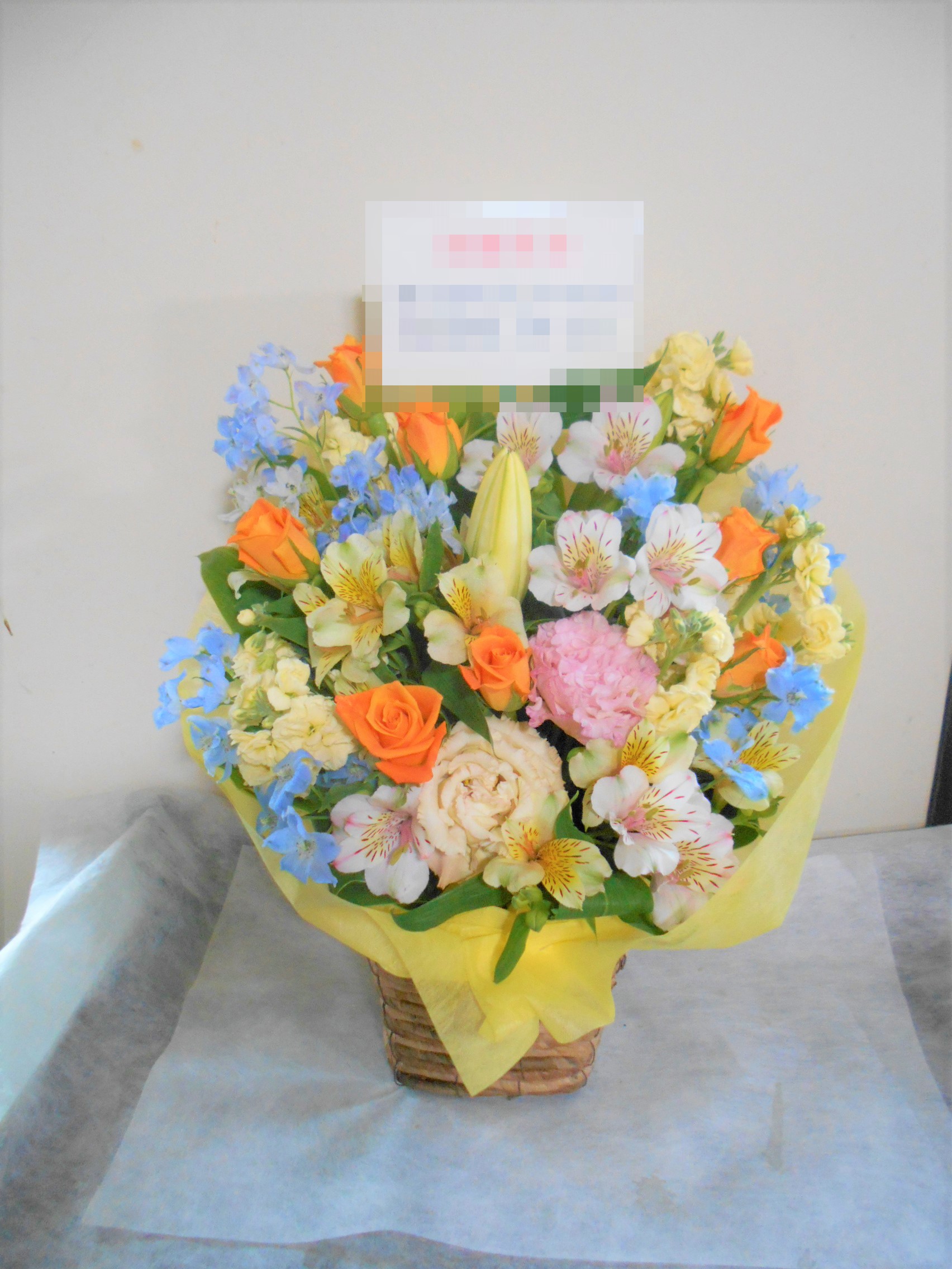 この写真は、実際にお届けさせていただいたアレンジメントです