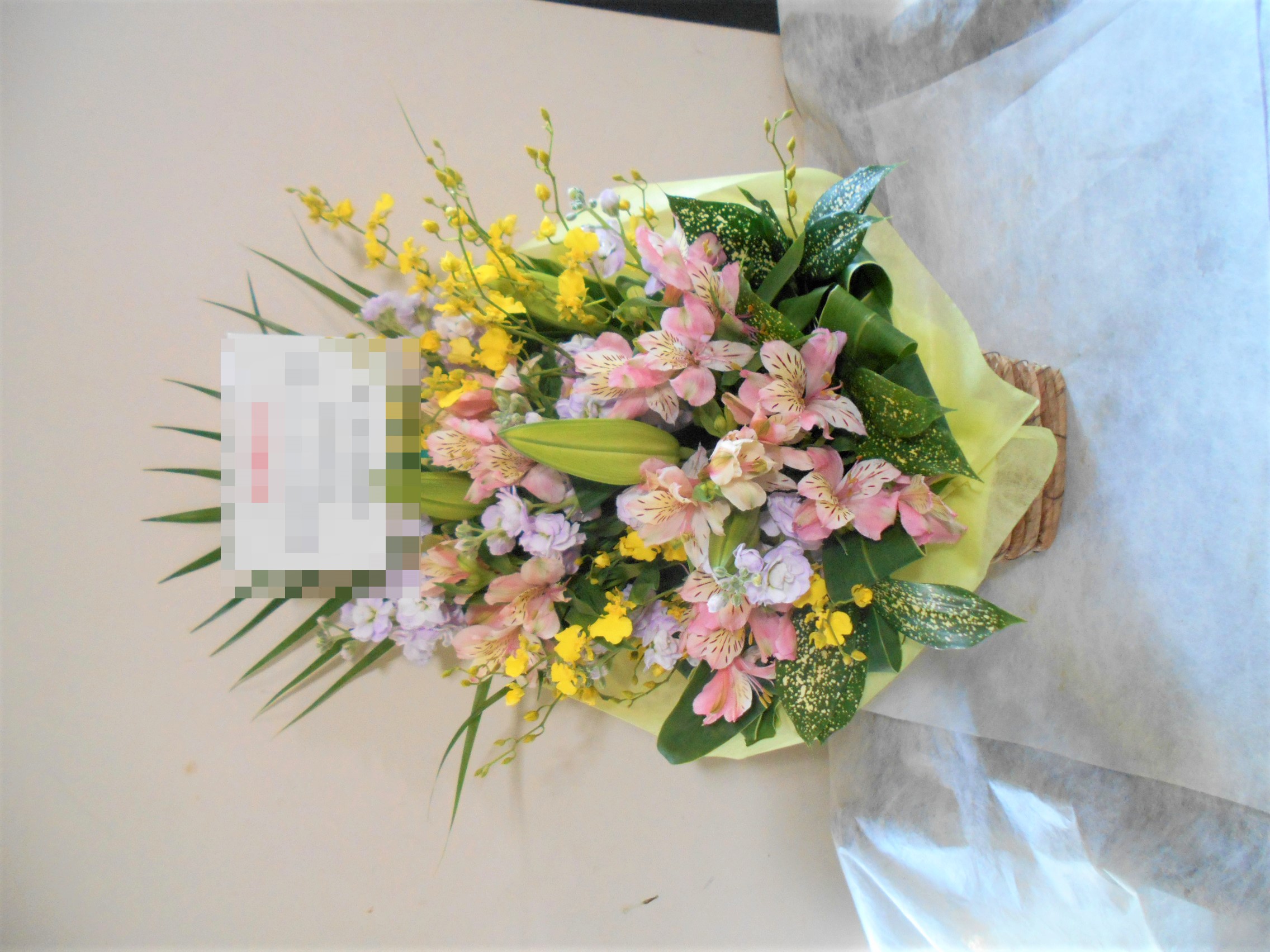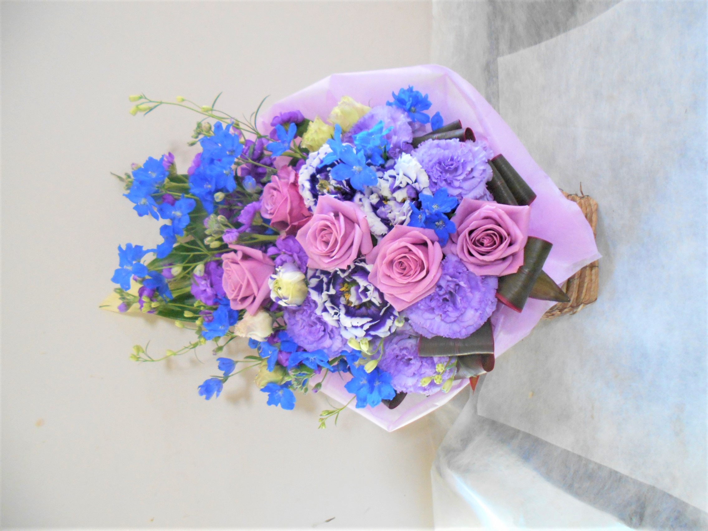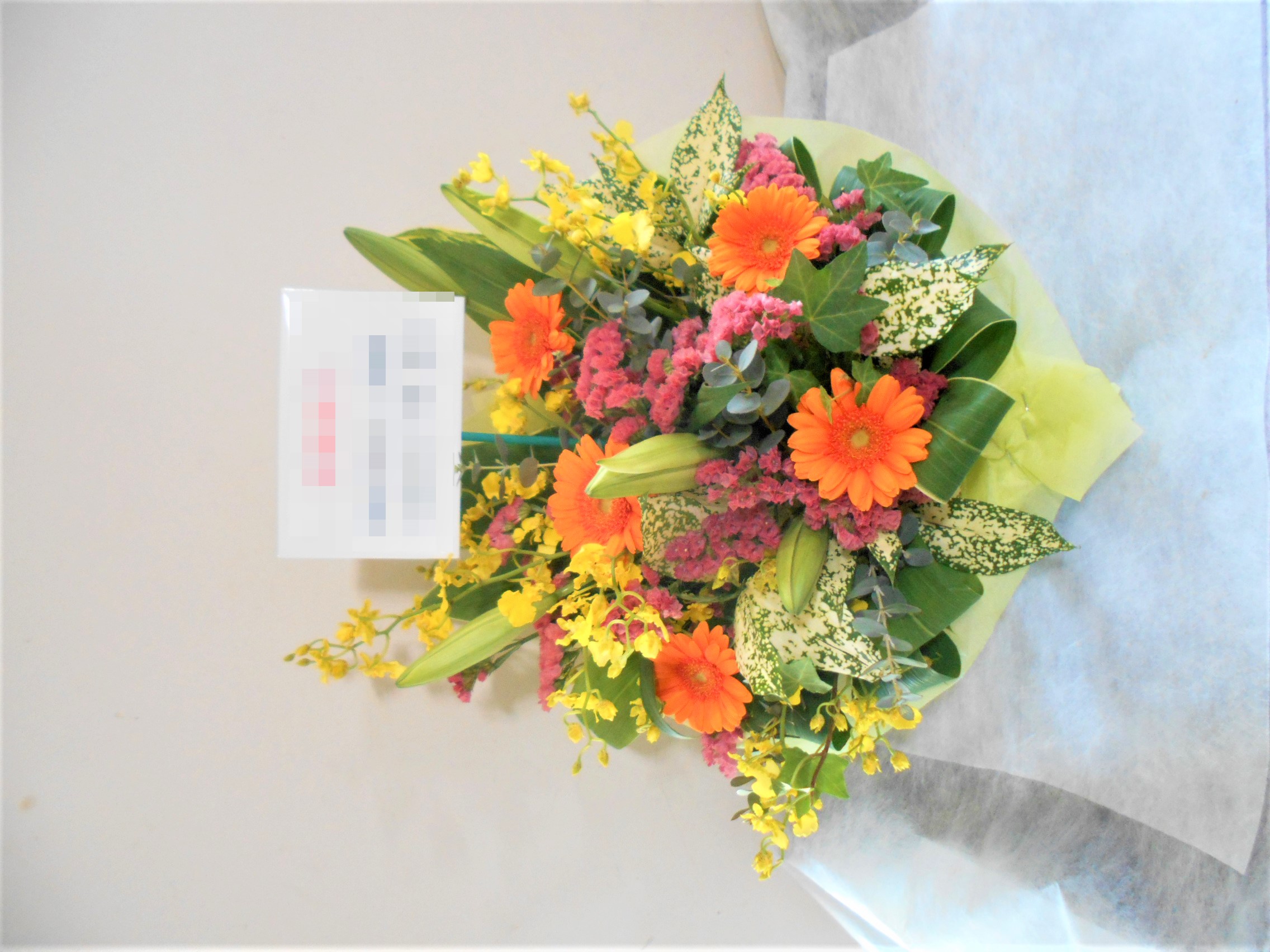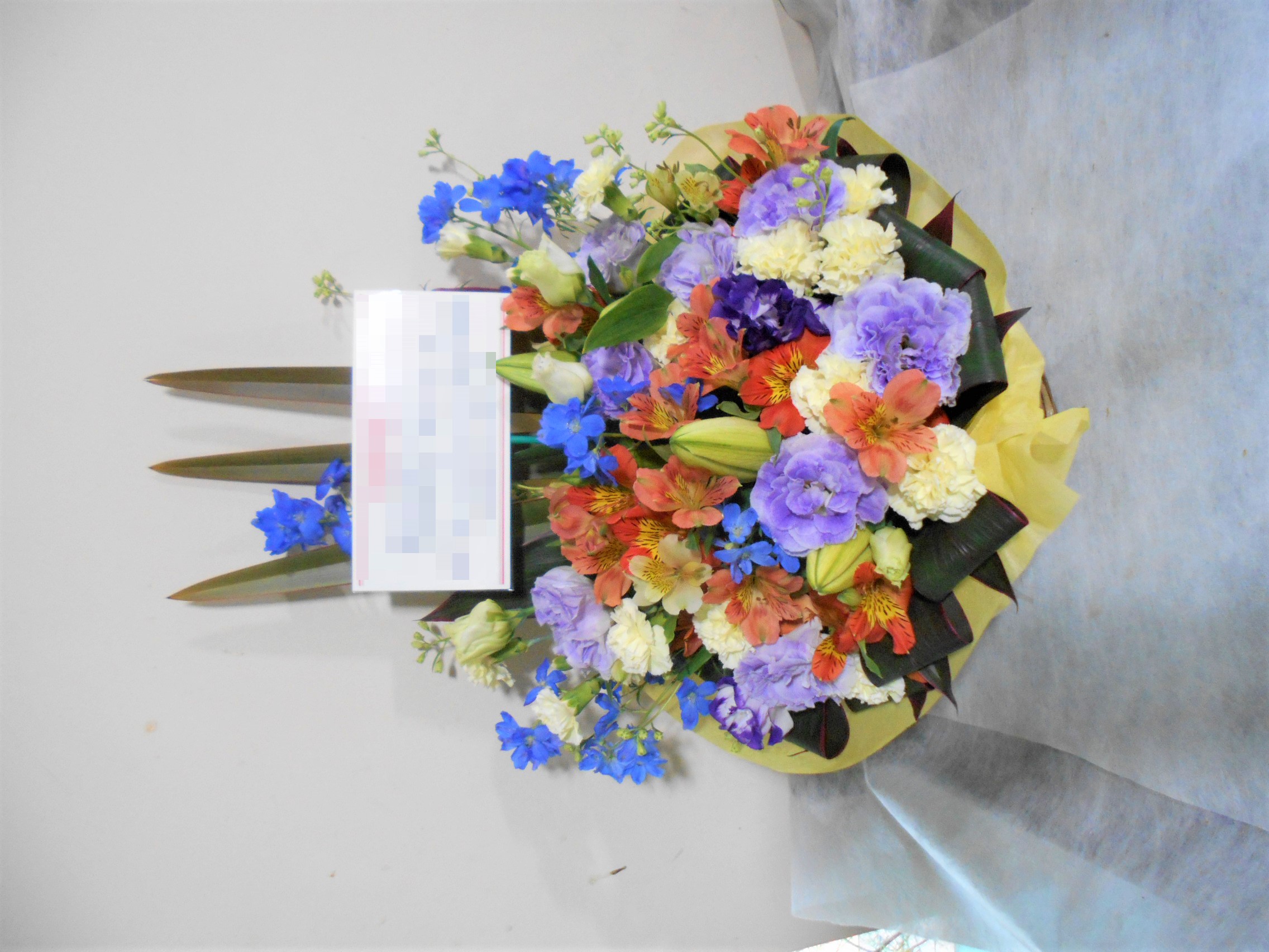 この写真は、実際にお届けさせていただいたアレンジメントです