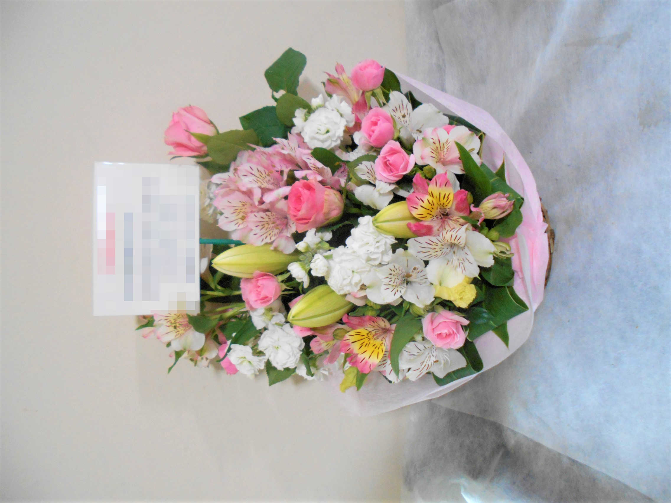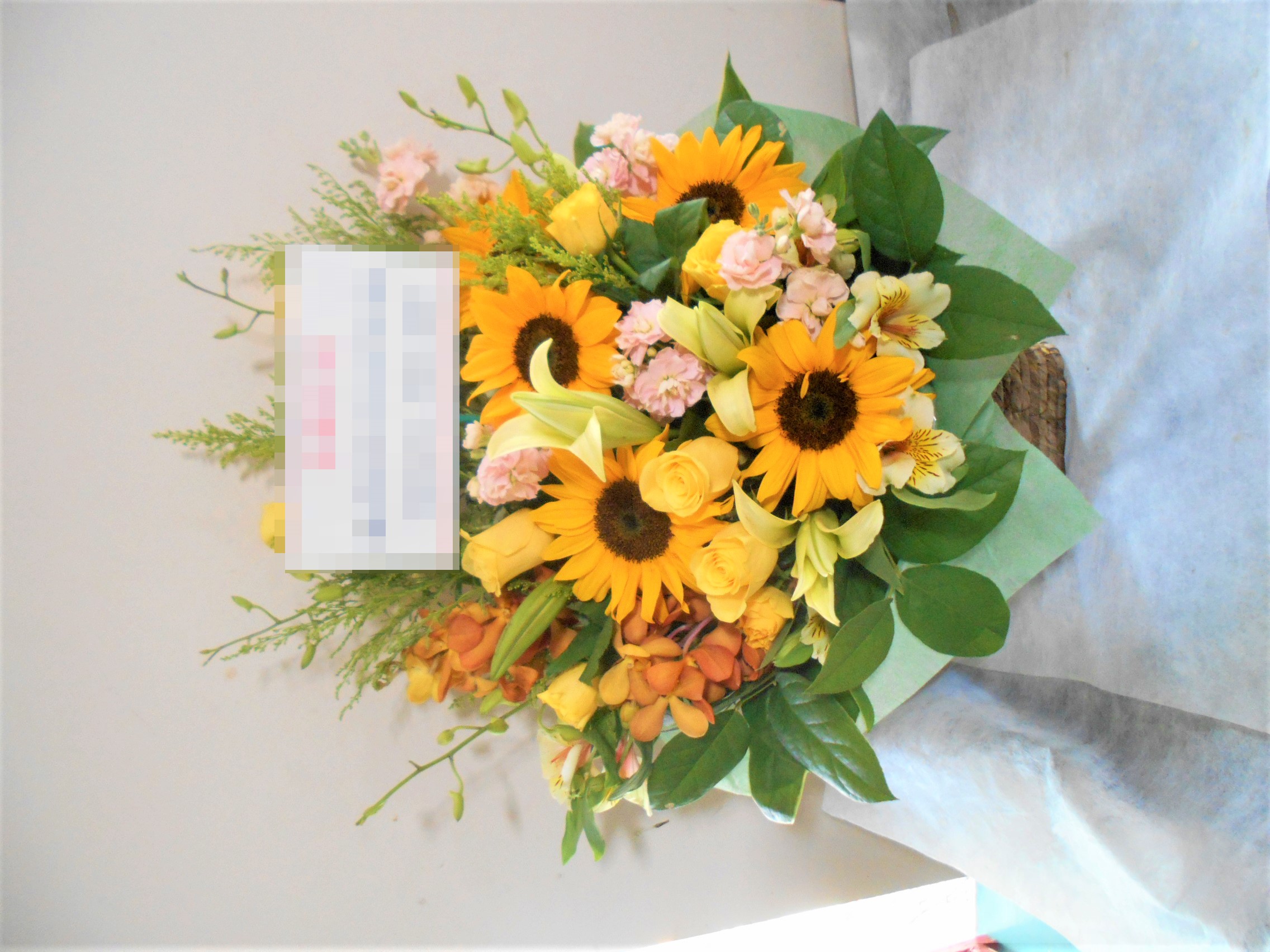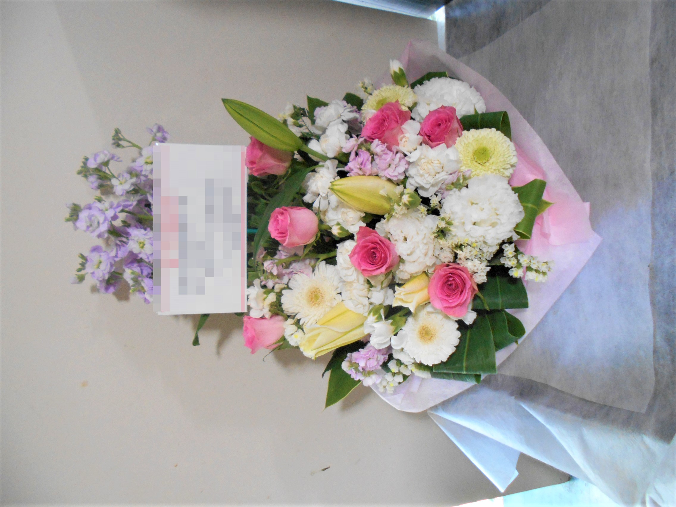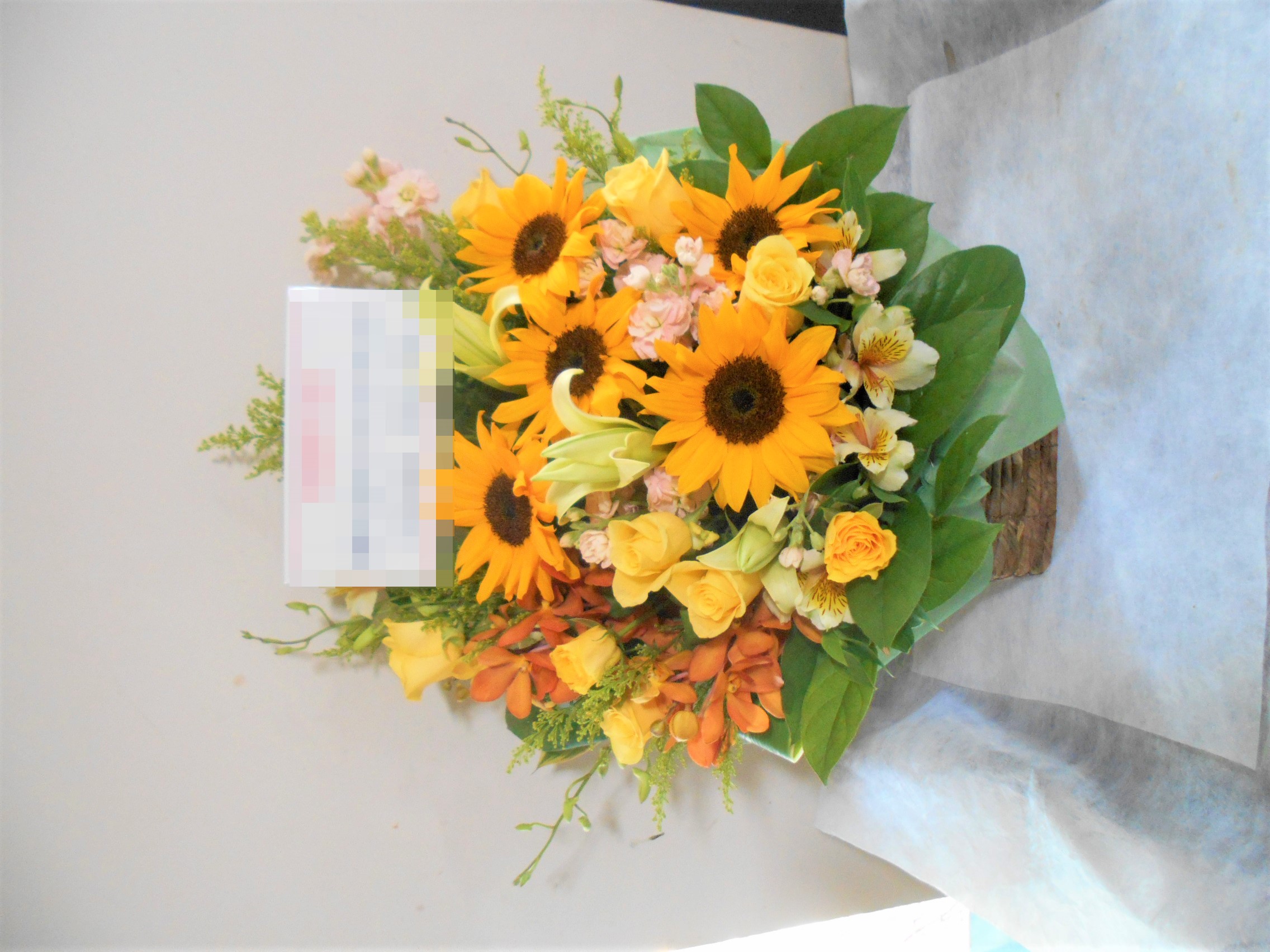 この写真は、実際にお届けさせていただいたアレンジメントです