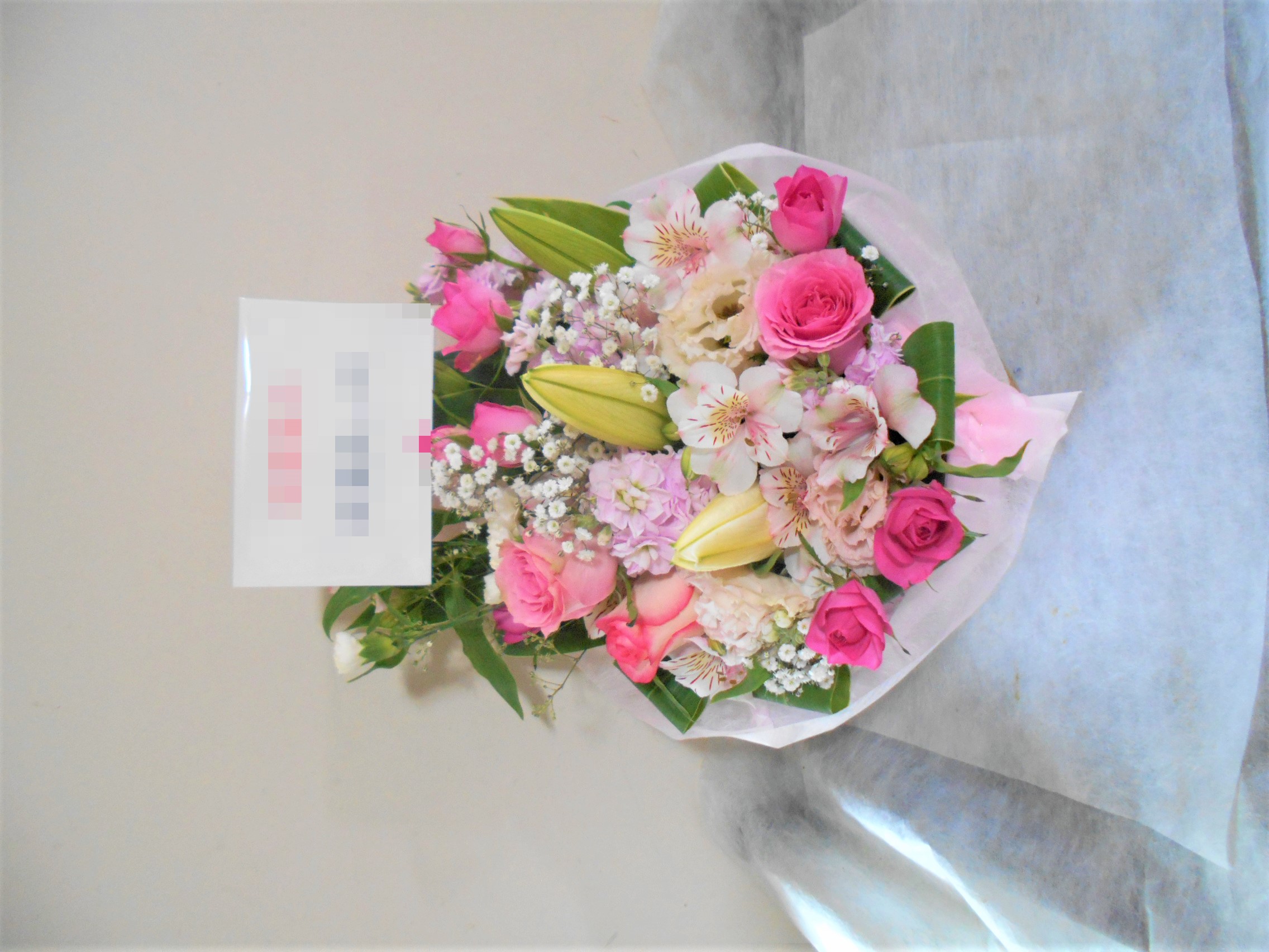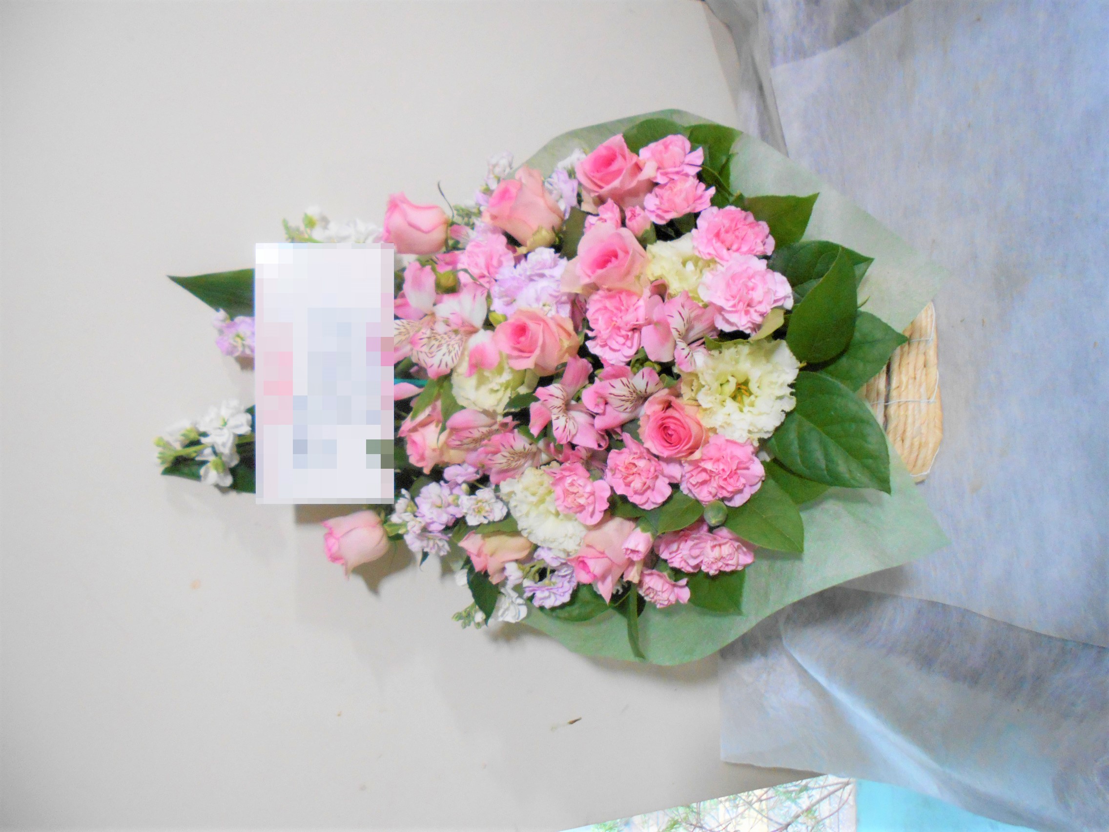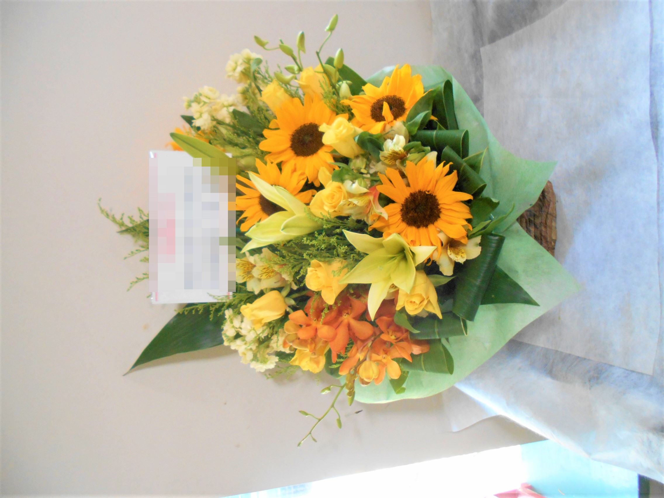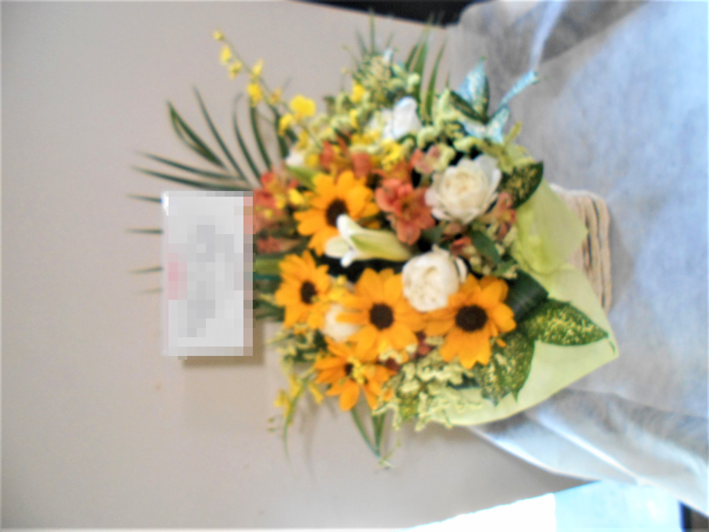 この写真は、実際にお届けさせていただいたアレンジメントです