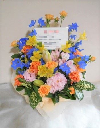 この写真は、実際にお届けさせていただいたアレンジメントです