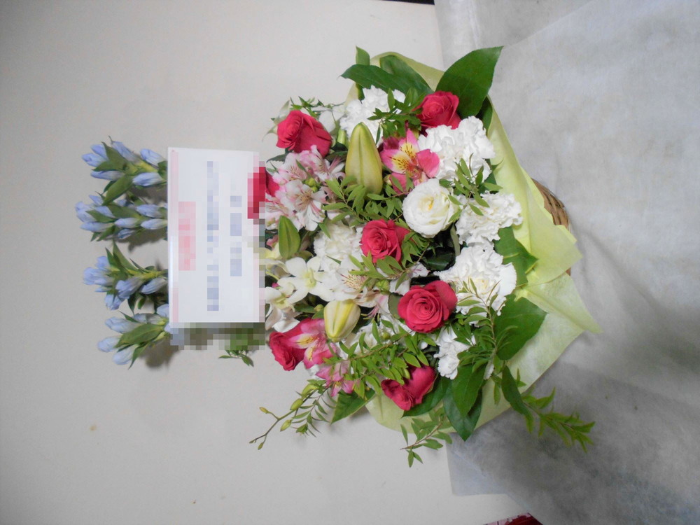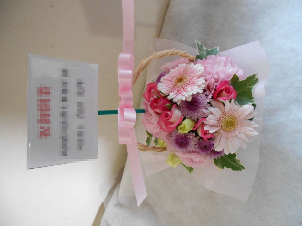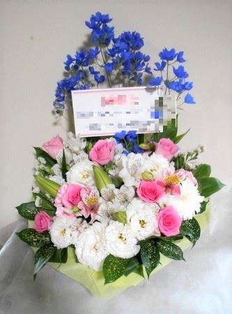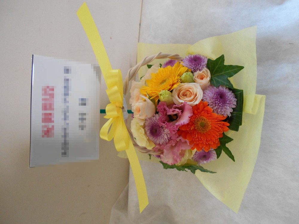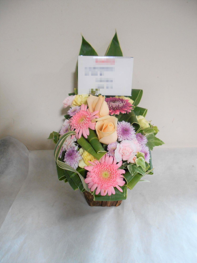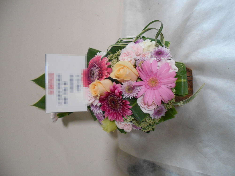 アレンジメントの実際にお届けした写真です。花秘書では発送前に写真をメールで送信致しますので安心して大切な顧客や取引様へのギフトにご利用頂けます。