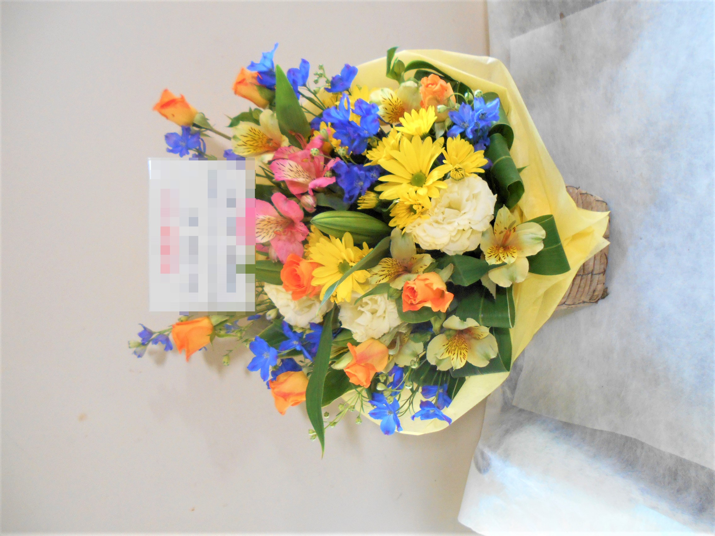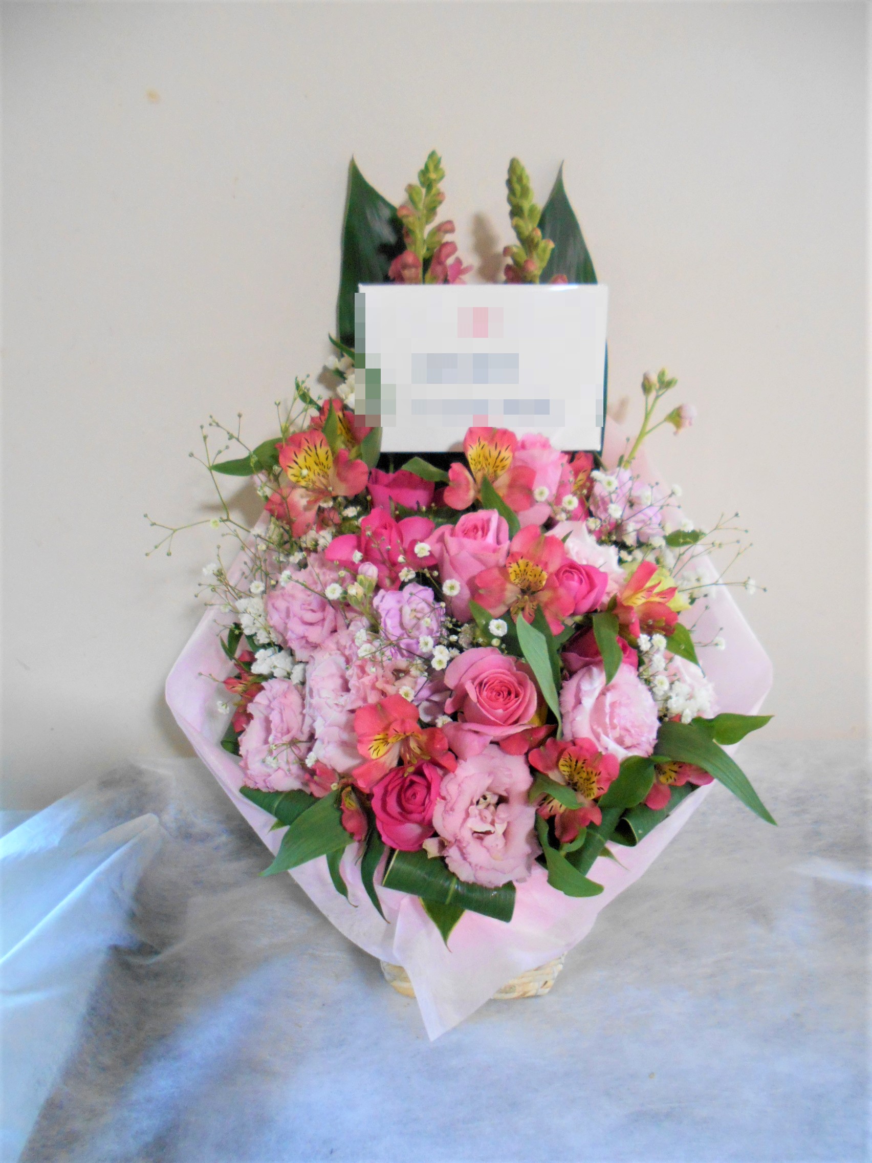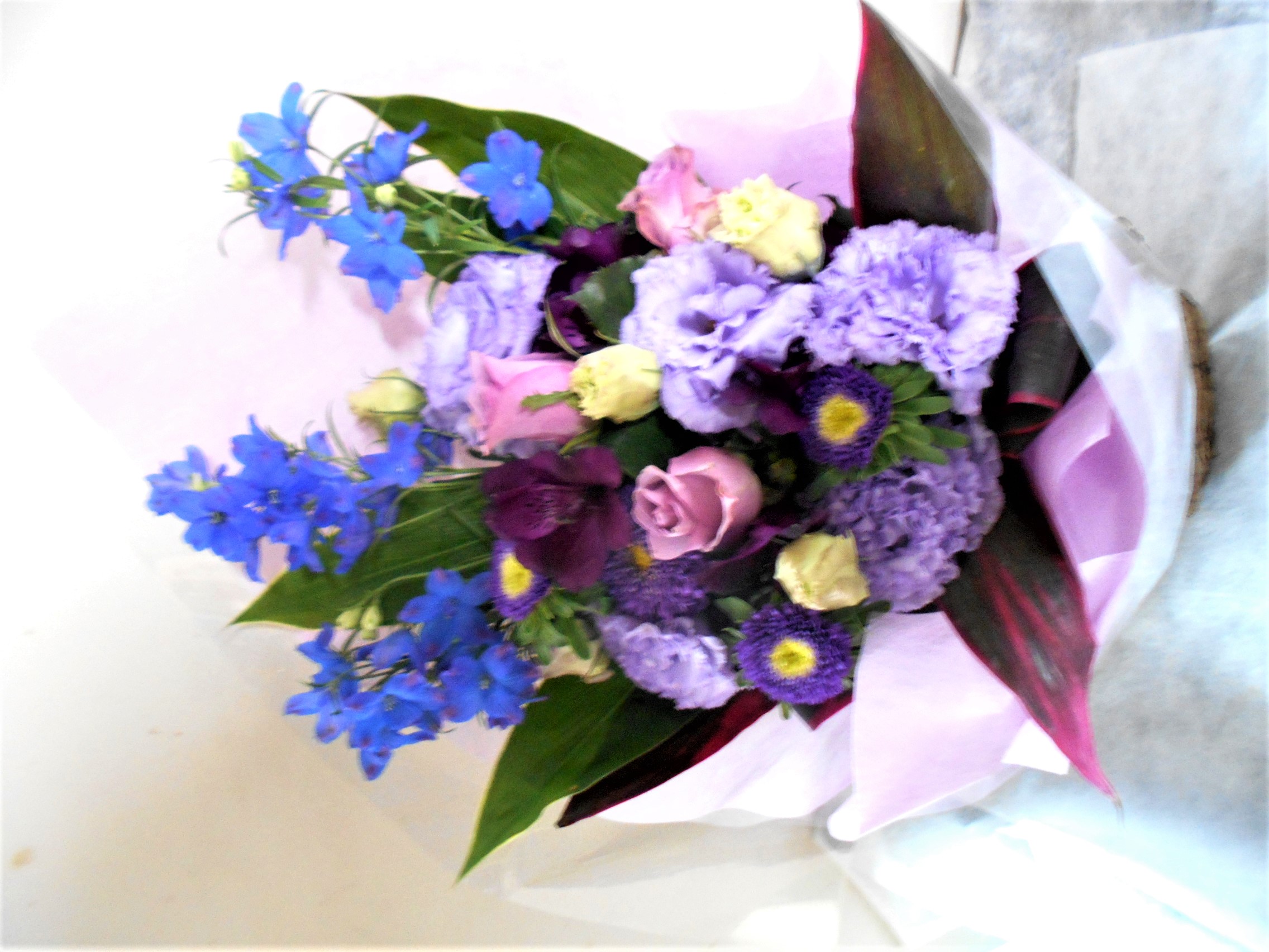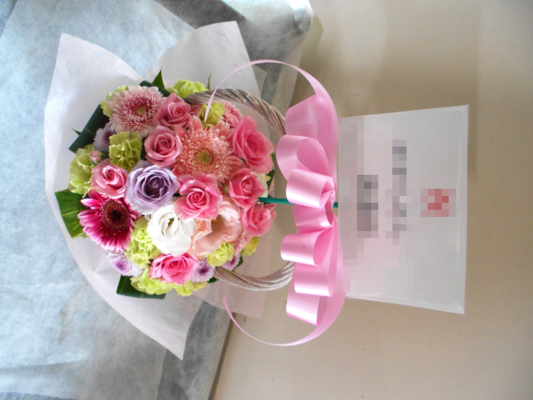 この写真は、実際にお届けさせていただいたアレンジメントです