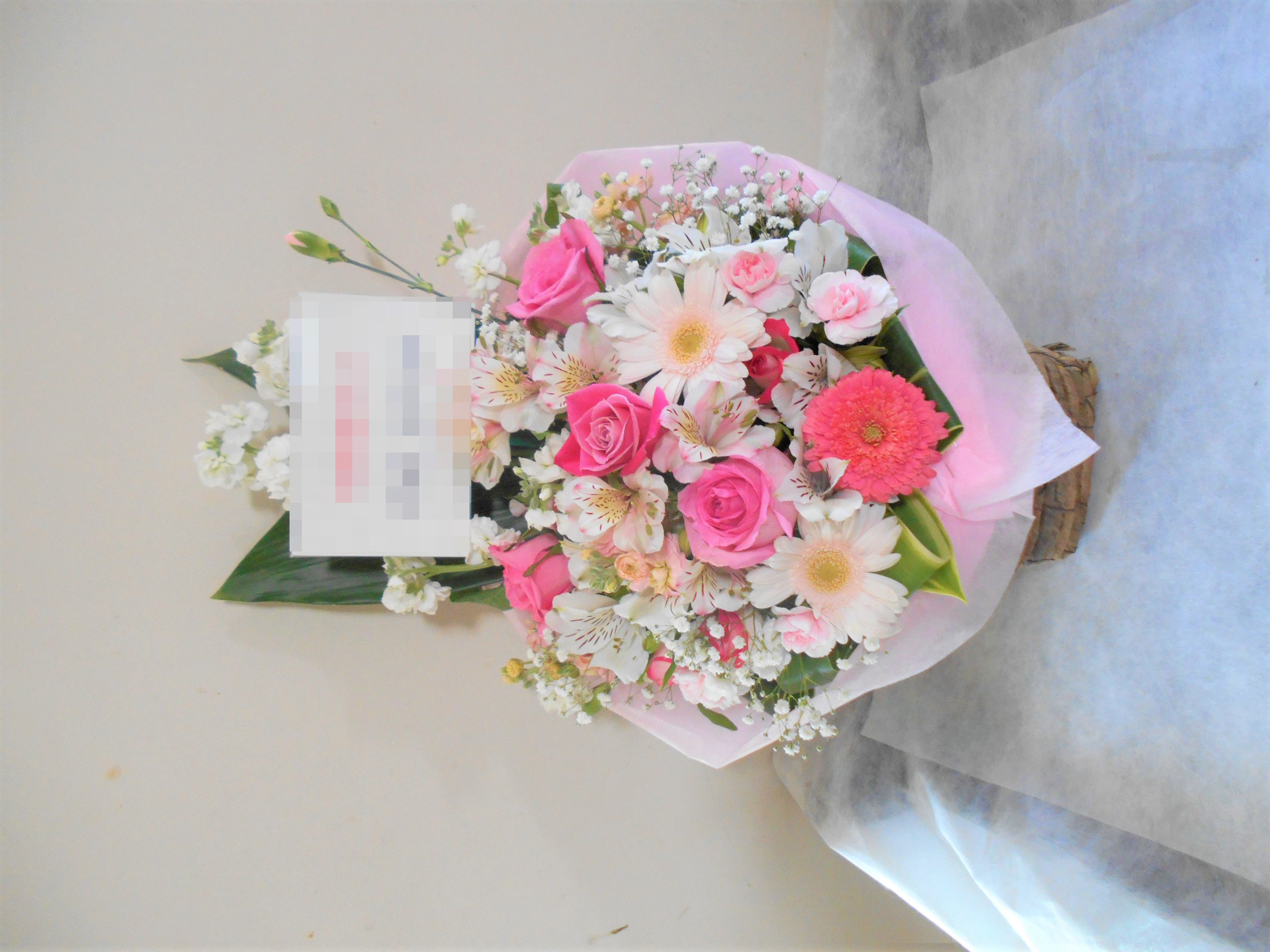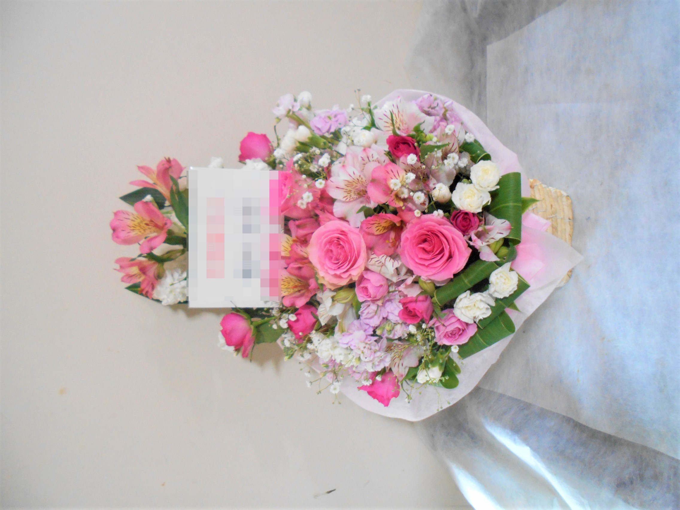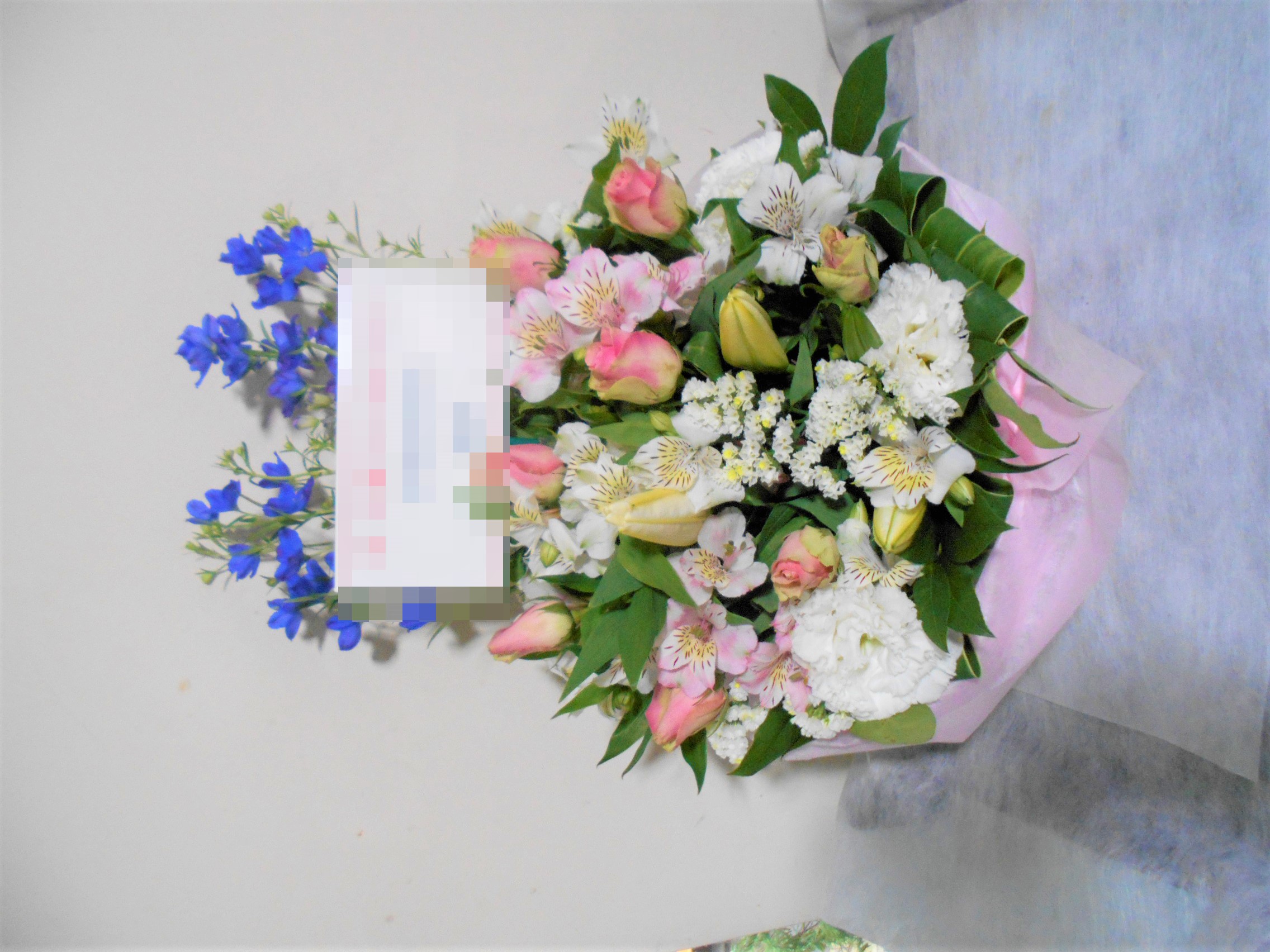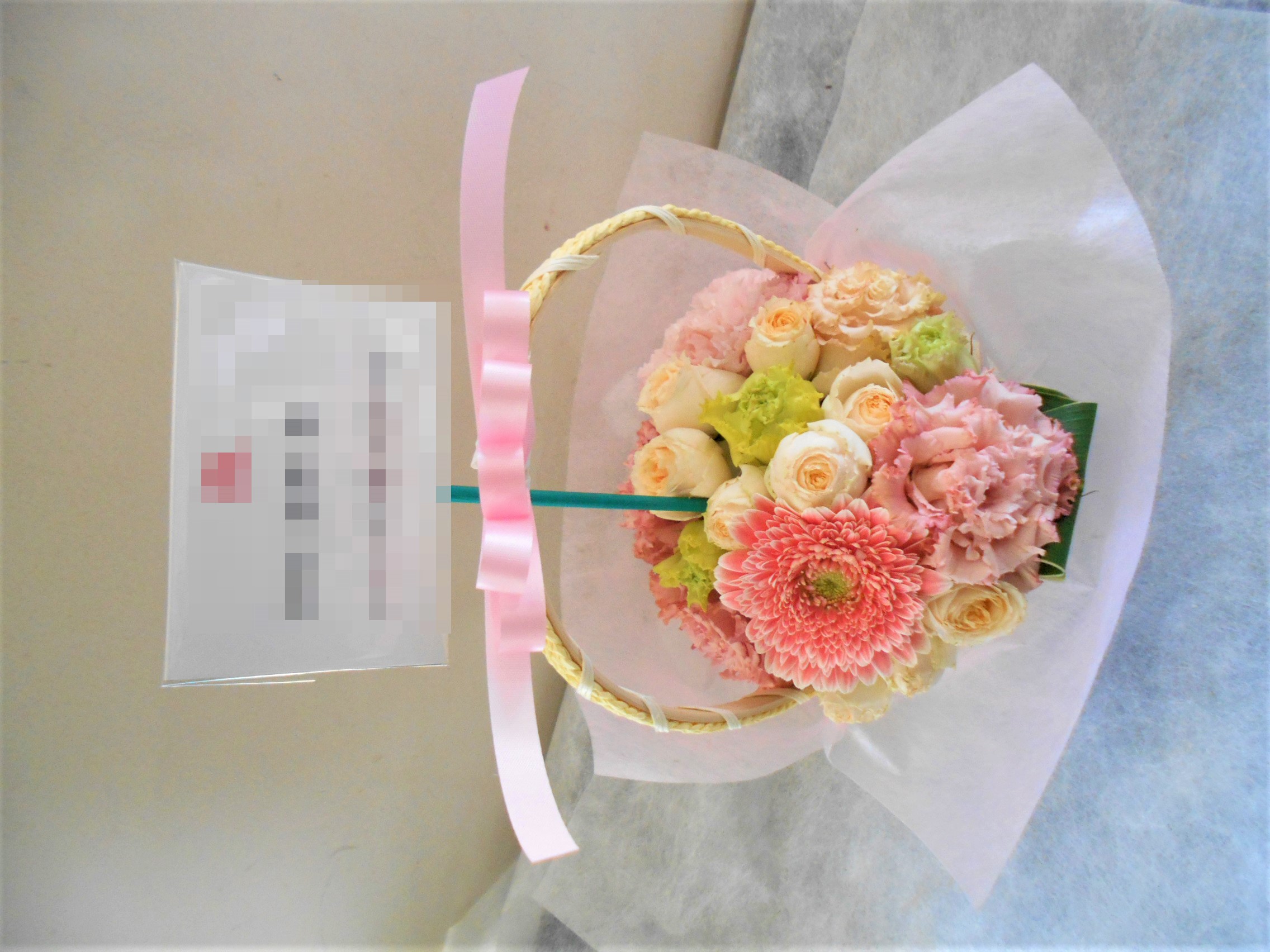 この写真は、実際にお届けさせていただいたアレンジメントです