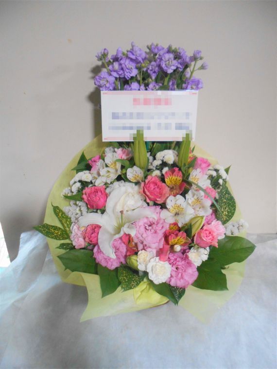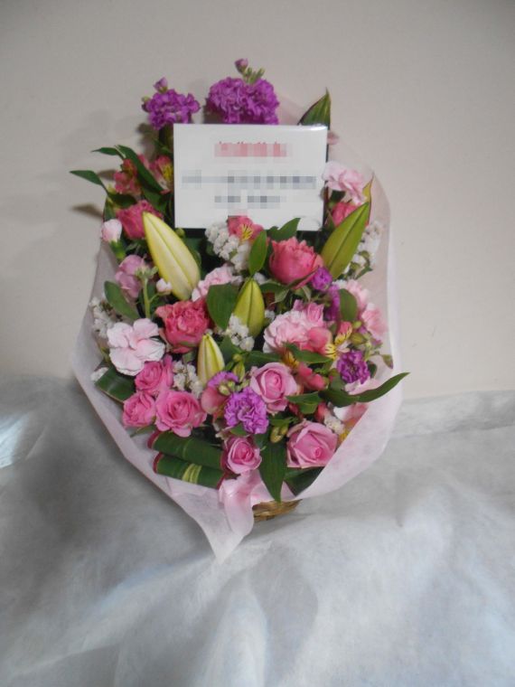 この写真は、実際にお届けさせていただいたアレンジメントです