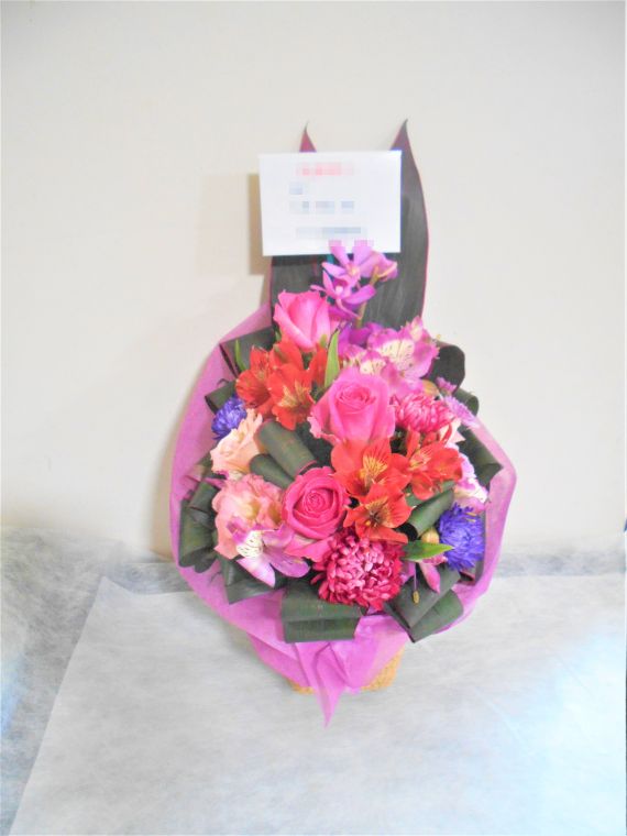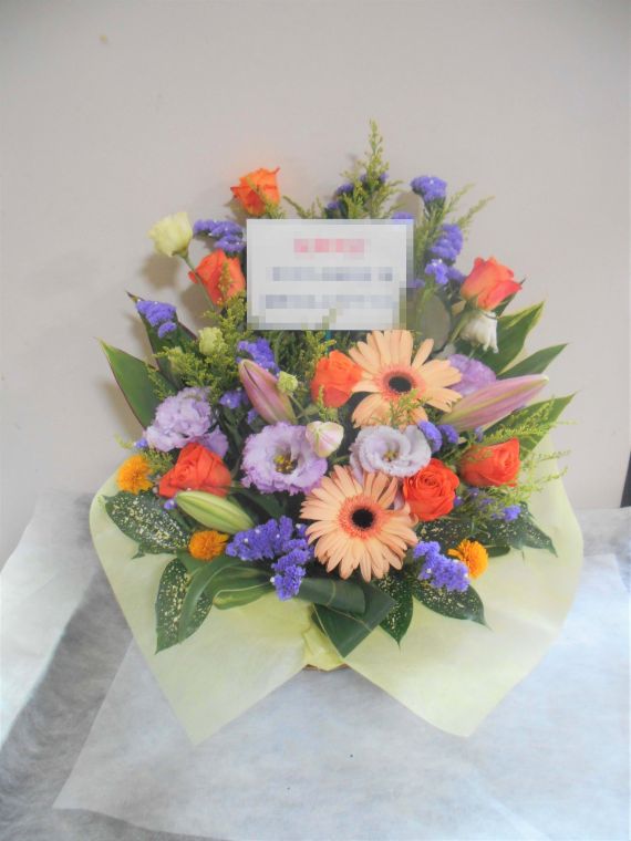 この写真は、実際にお届けさせていただいたアレンジメントです