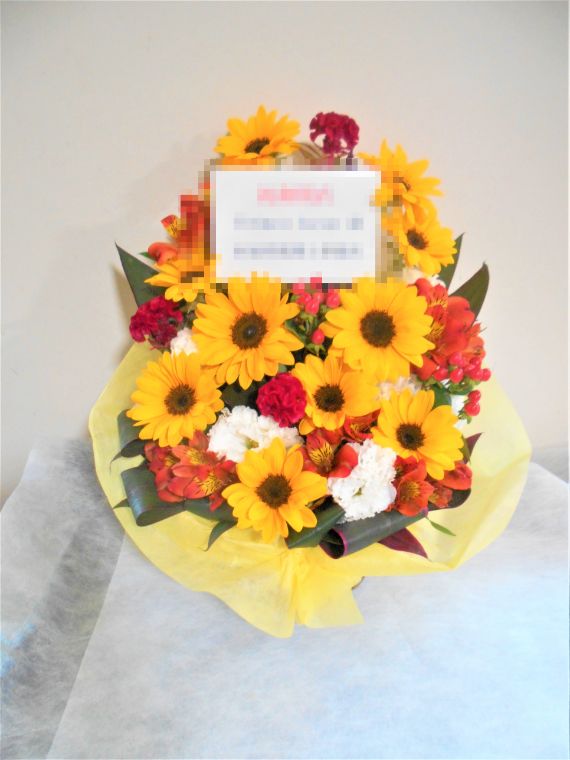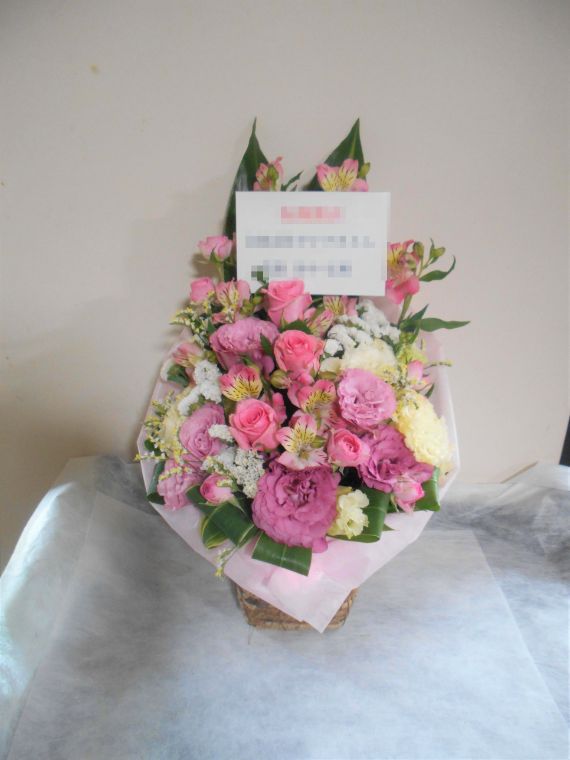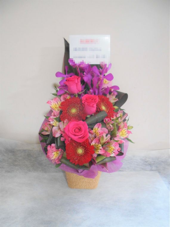 この写真は、実際にお届けさせていただいたアレンジメントです