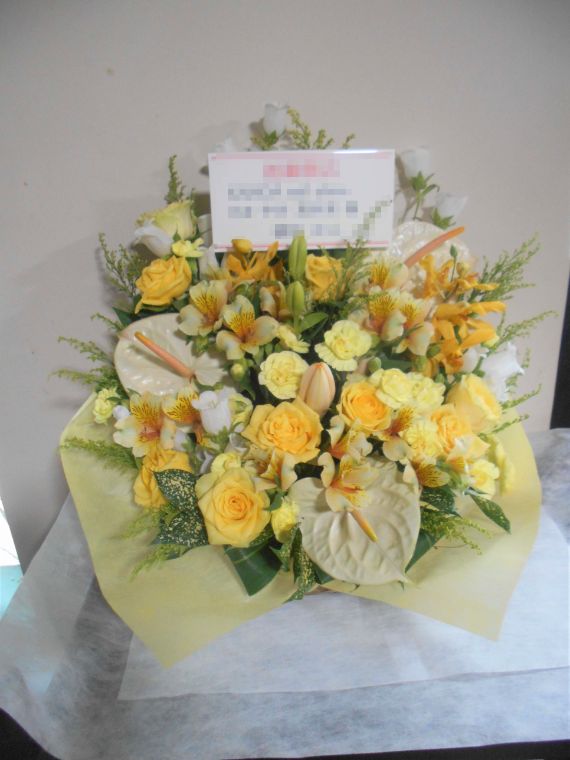 アレンジメントの実際にお届けした写真です。花秘書では発送前に写真をメールで送信致しますので安心して大切な顧客や取引様へのギフトにご利用頂けます。