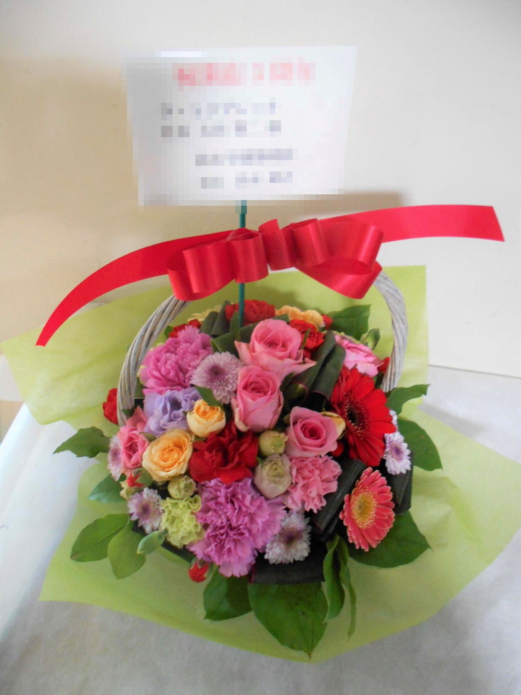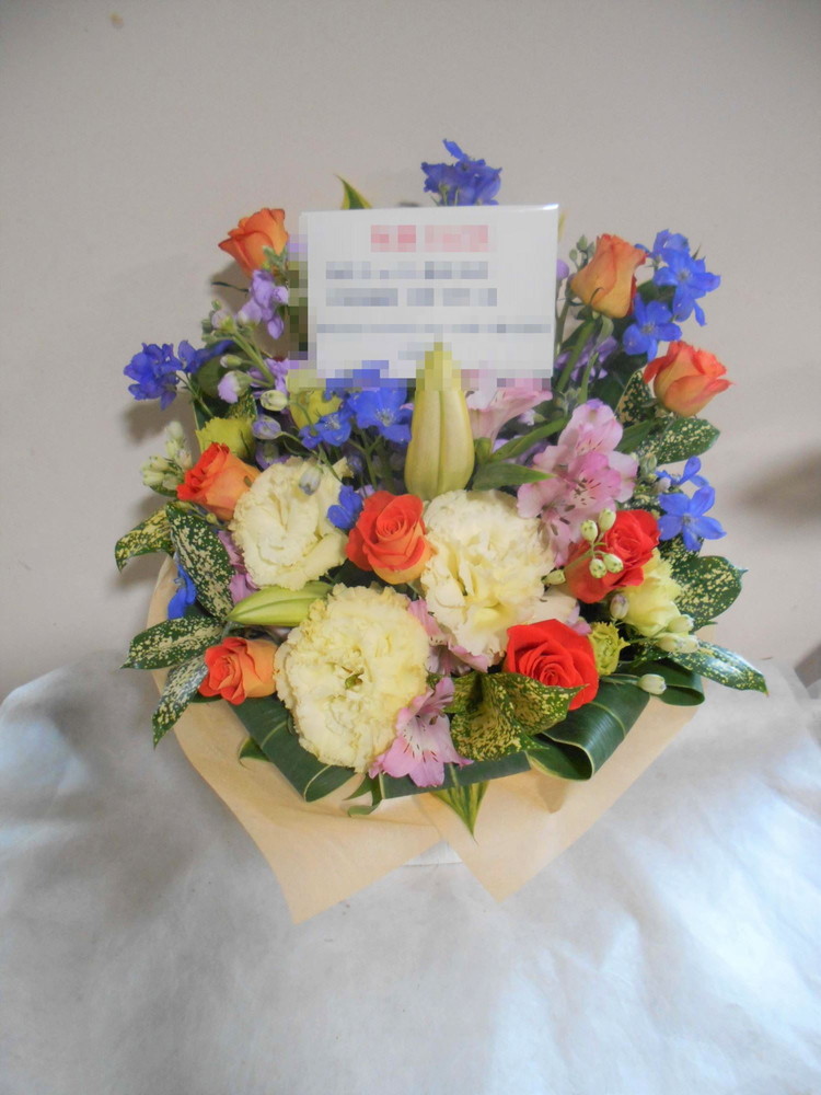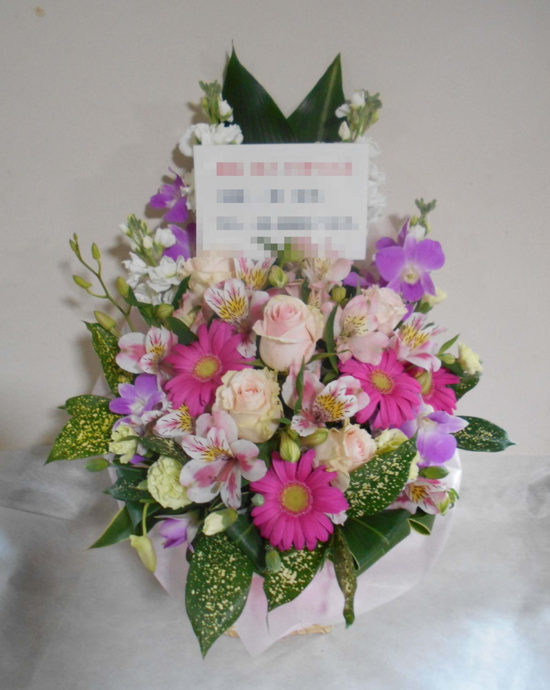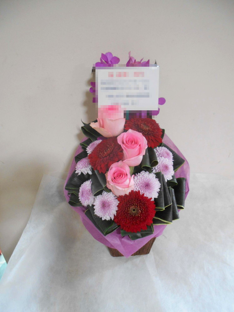 アレンジメントの実際にお届けした写真です。花秘書では発送前に写真をメールで送信致しますので安心して大切な顧客や取引様へのギフトにご利用頂けます。