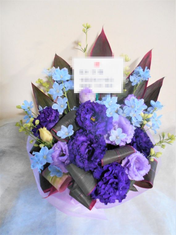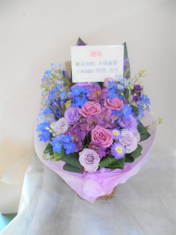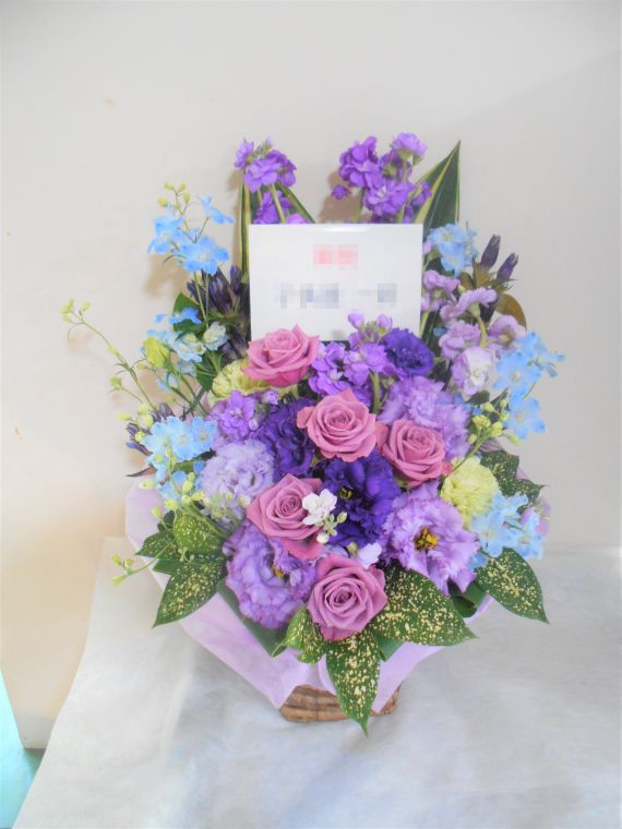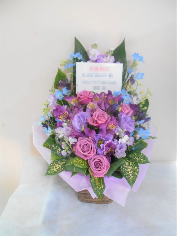 喜寿(77歳)のお祝い紫色のお花メインのアレンジメント5000