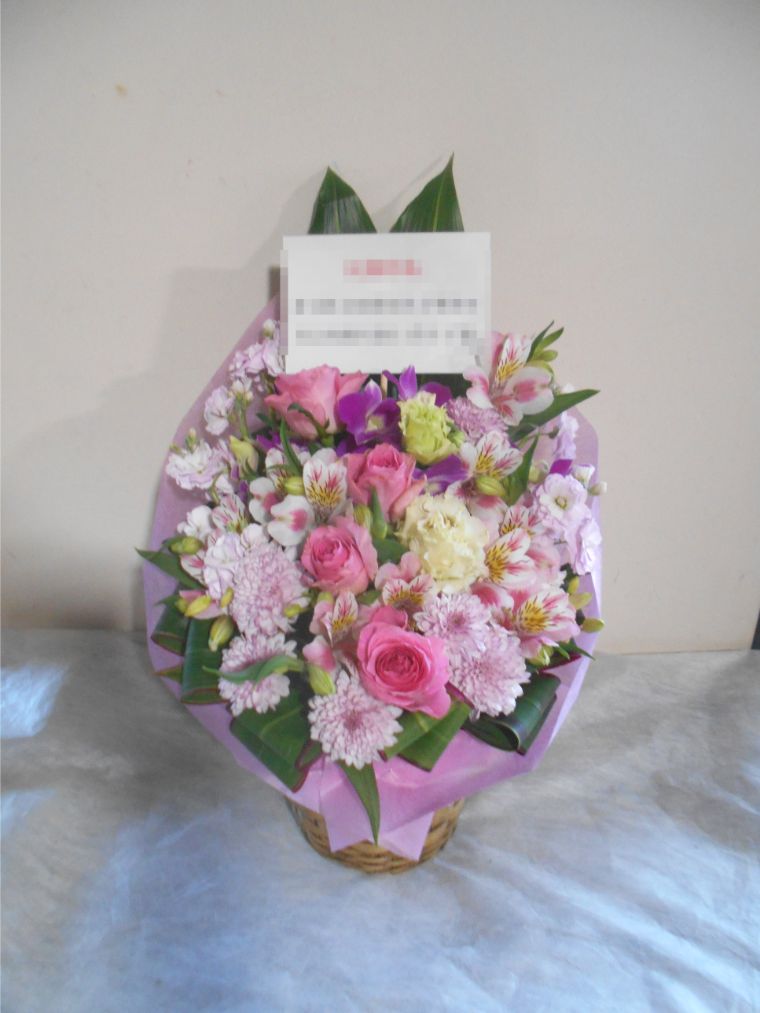 アレンジメントの実際にお届けした写真です。花秘書では発送前に写真をメールで送信致しますので安心して大切な顧客や取引様へのギフトにご利用頂けます。