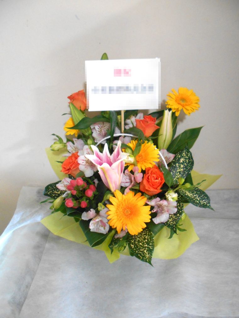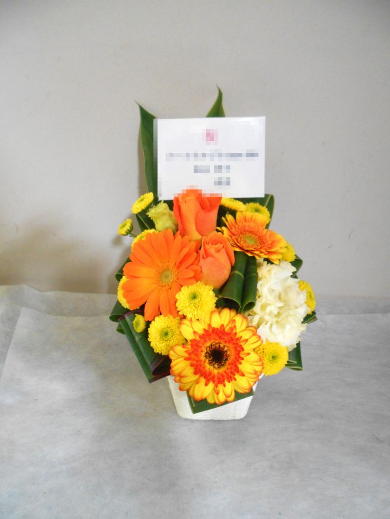 アレンジメントの実際にお届けした写真です。花秘書では発送前に写真をメールで送信致しますので安心して大切な顧客や取引様へのギフトにご利用頂けます。
