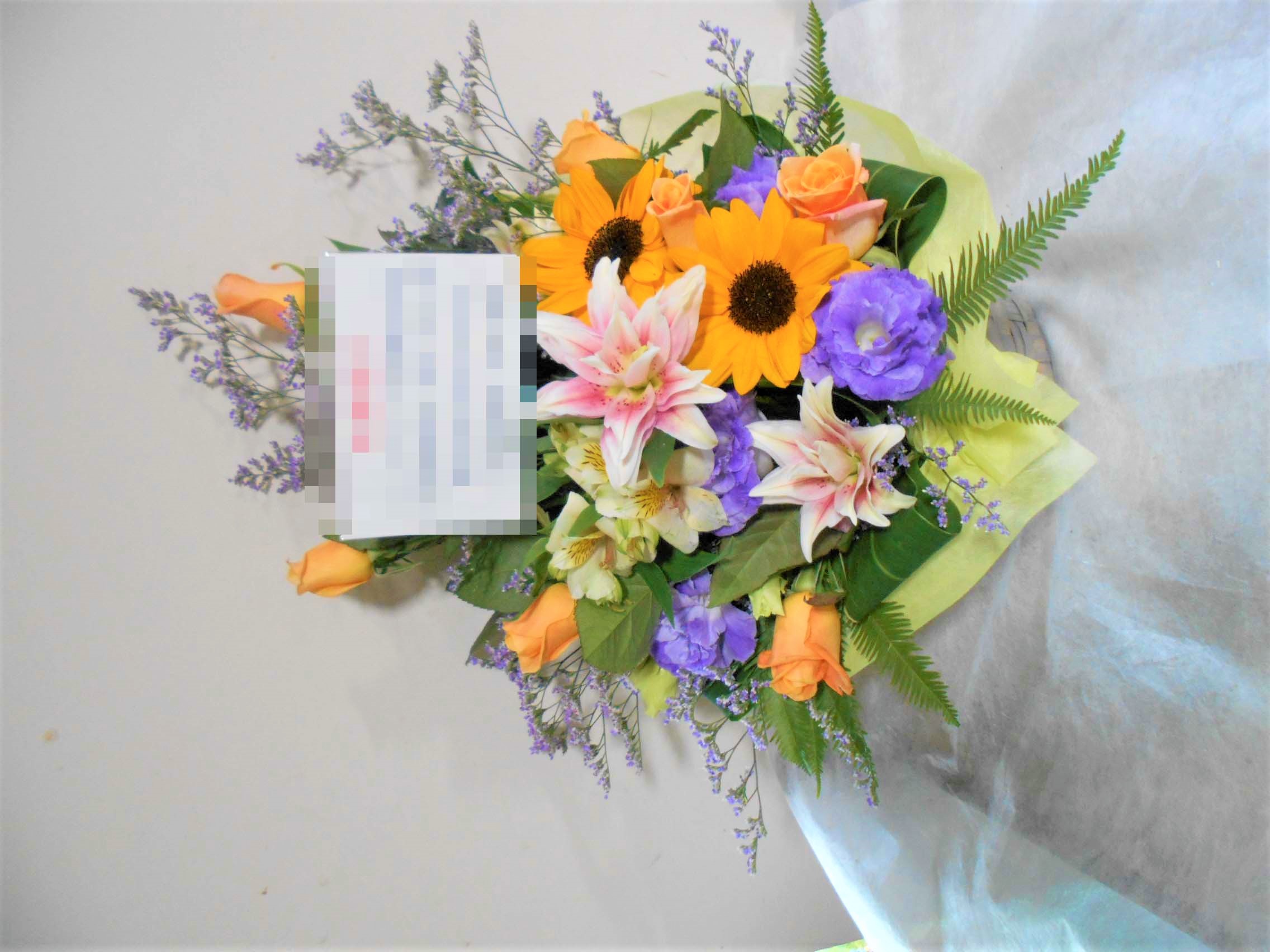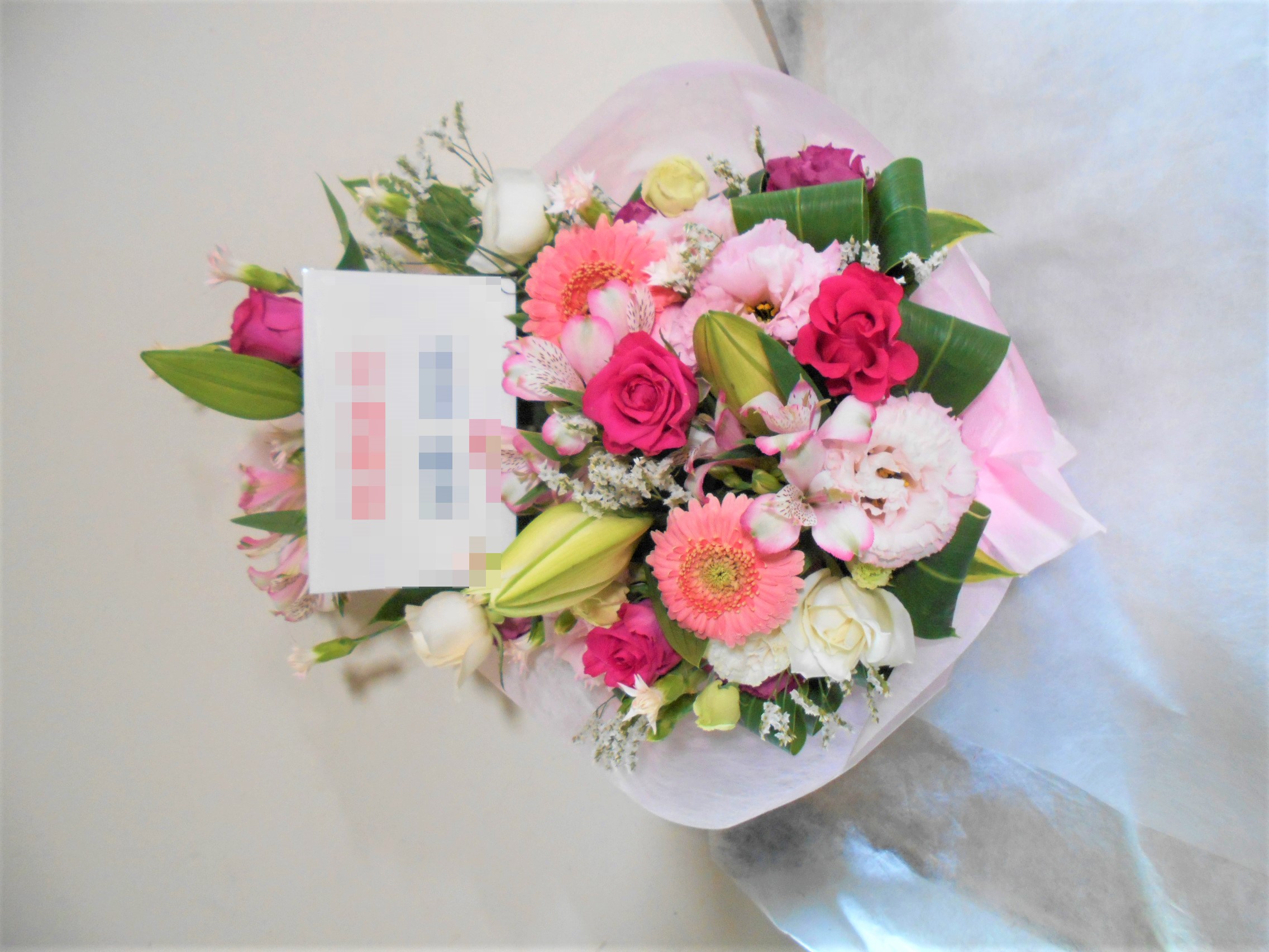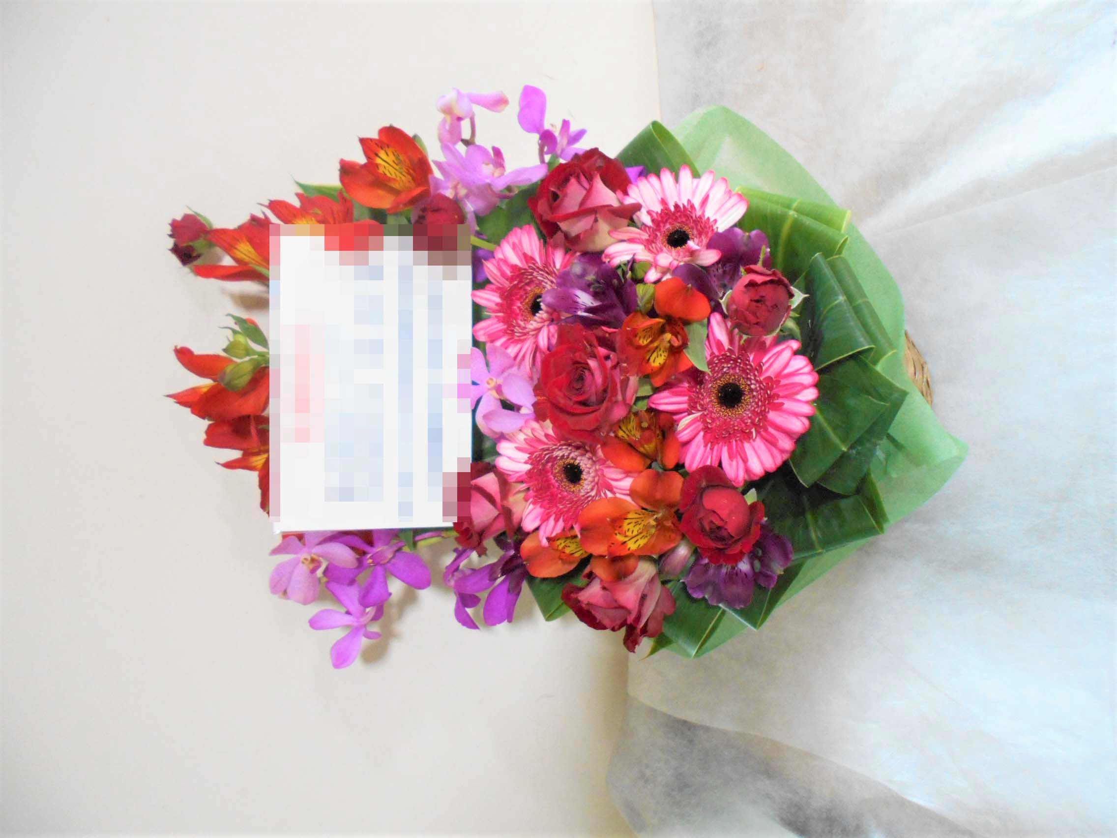 この写真は、実際にお届けさせていただいたアレンジメントです