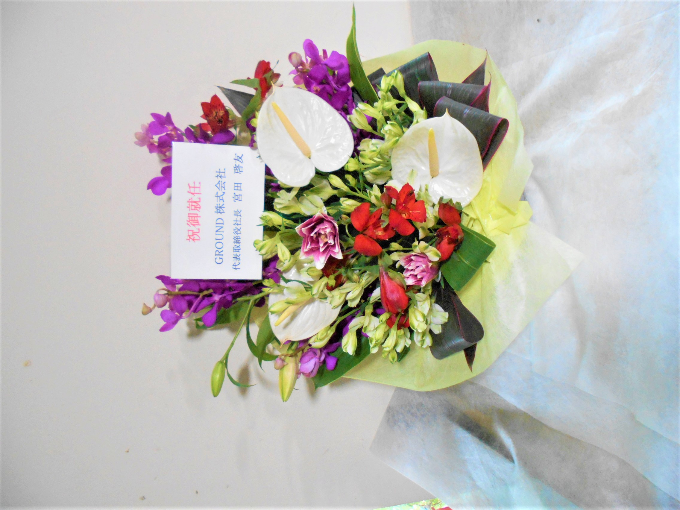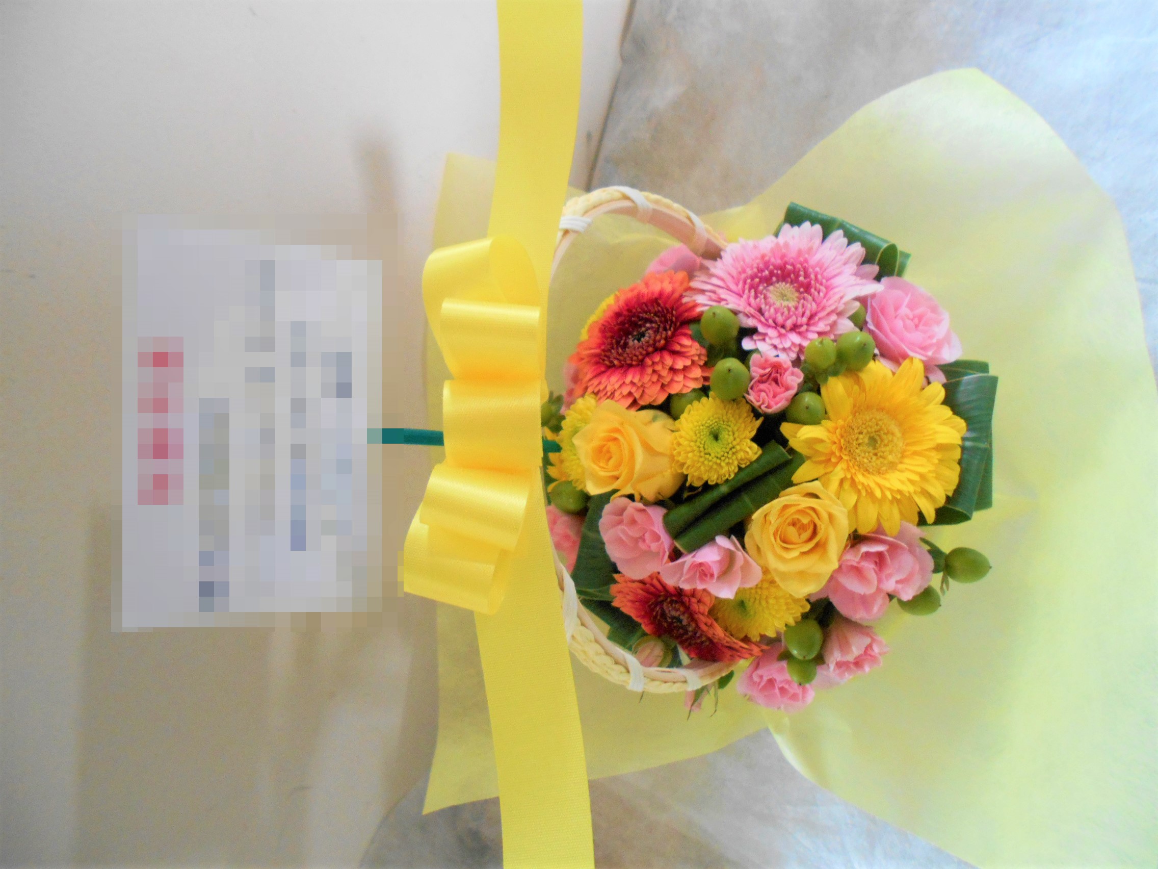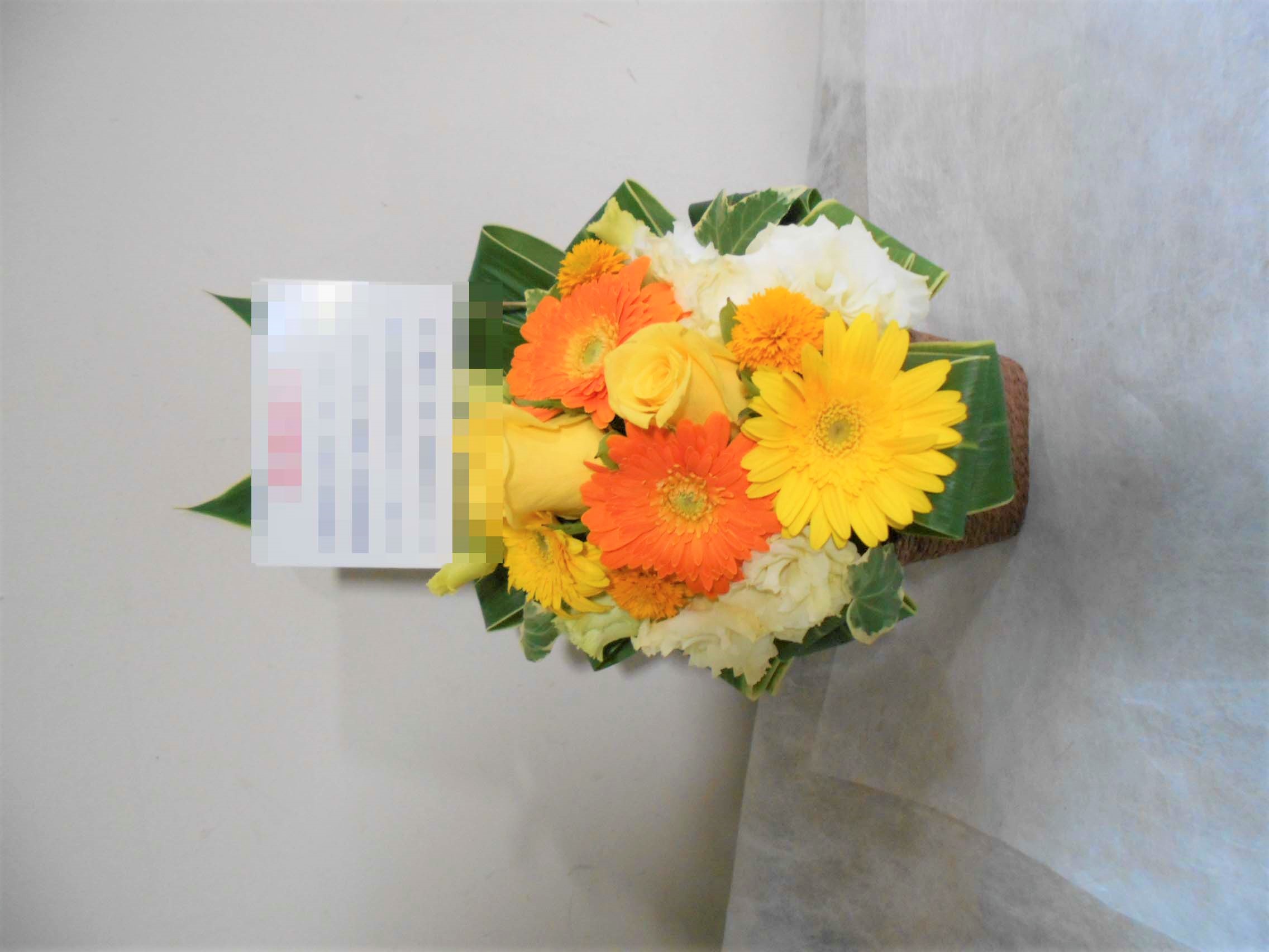 アレンジメントの実際にお届けした写真です。花秘書では発送前に写真をメールで送信致しますので安心して大切な顧客や取引様へのギフトにご利用頂けます。