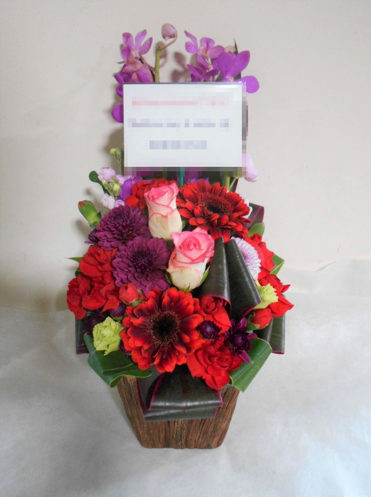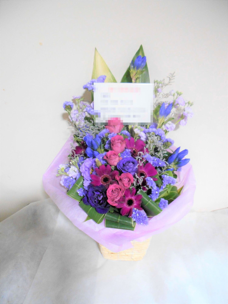 この写真は、実際にお届けさせていただいたアレンジメントです