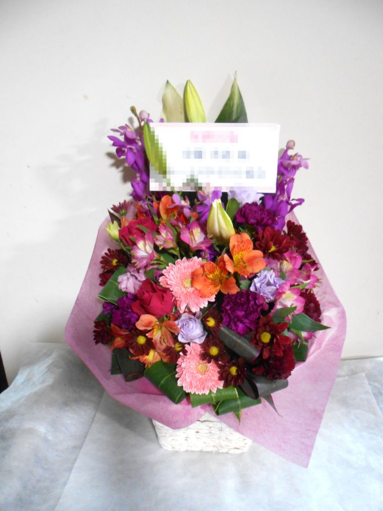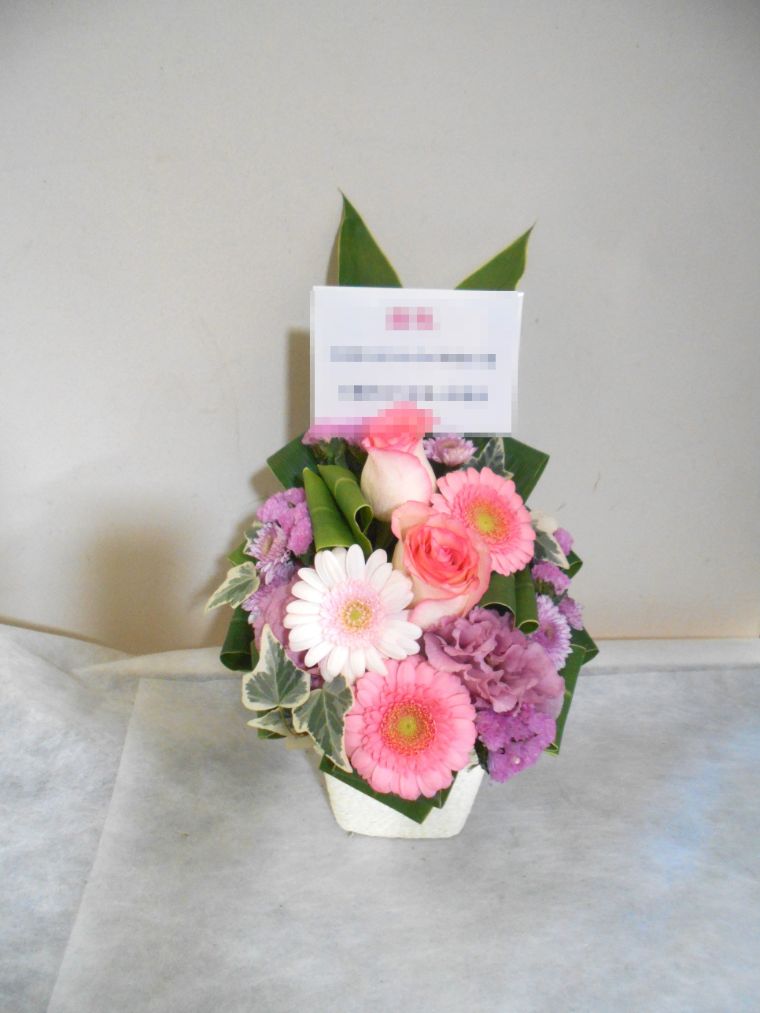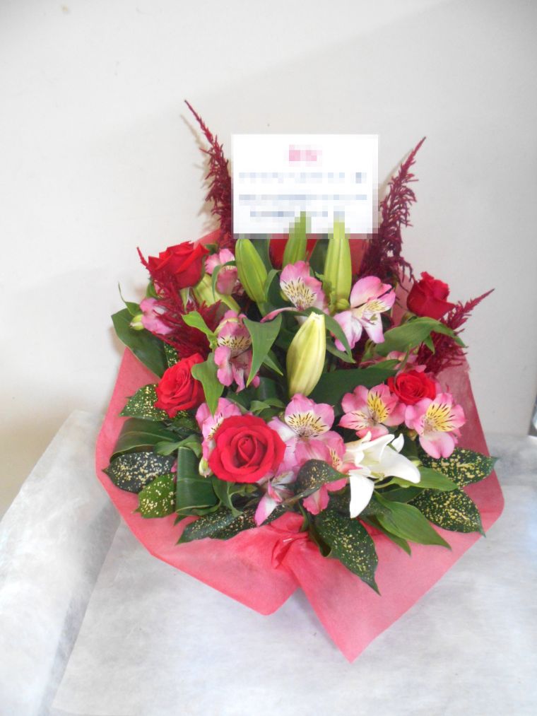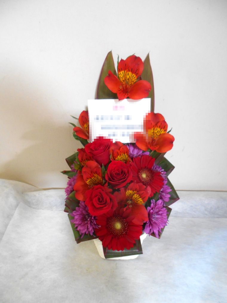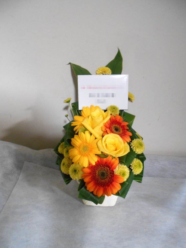 アレンジメントの実際にお届けした写真です。花秘書では発送前に写真をメールで送信致しますので安心して大切な顧客や取引様へのギフトにご利用頂けます。