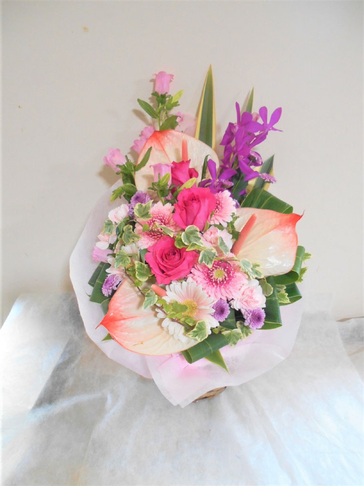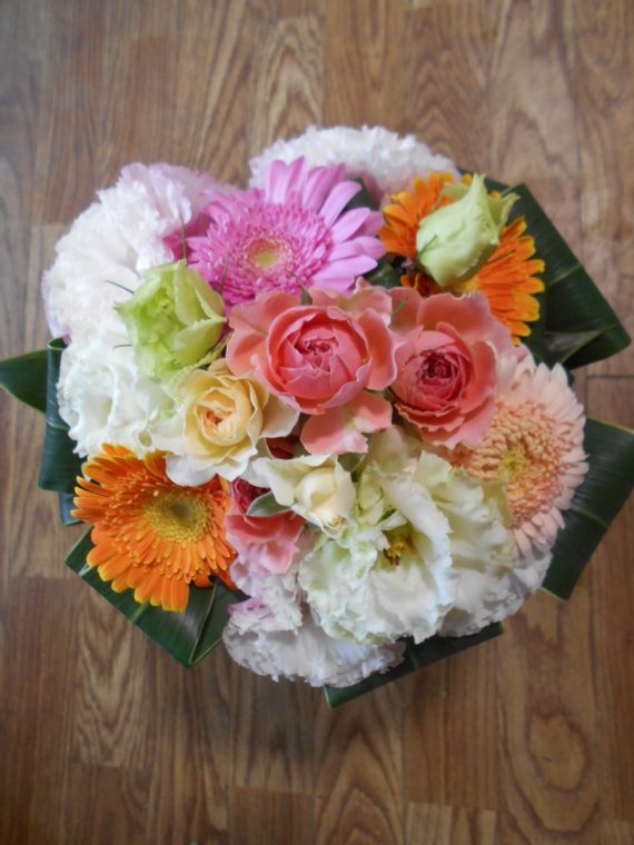 この写真は、実際にお届けさせていただいたアレンジメントです