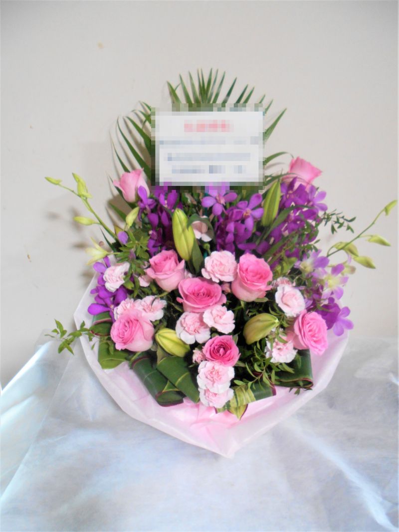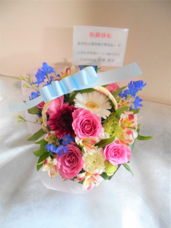 この写真は、実際にお届けさせていただいたアレンジメントです