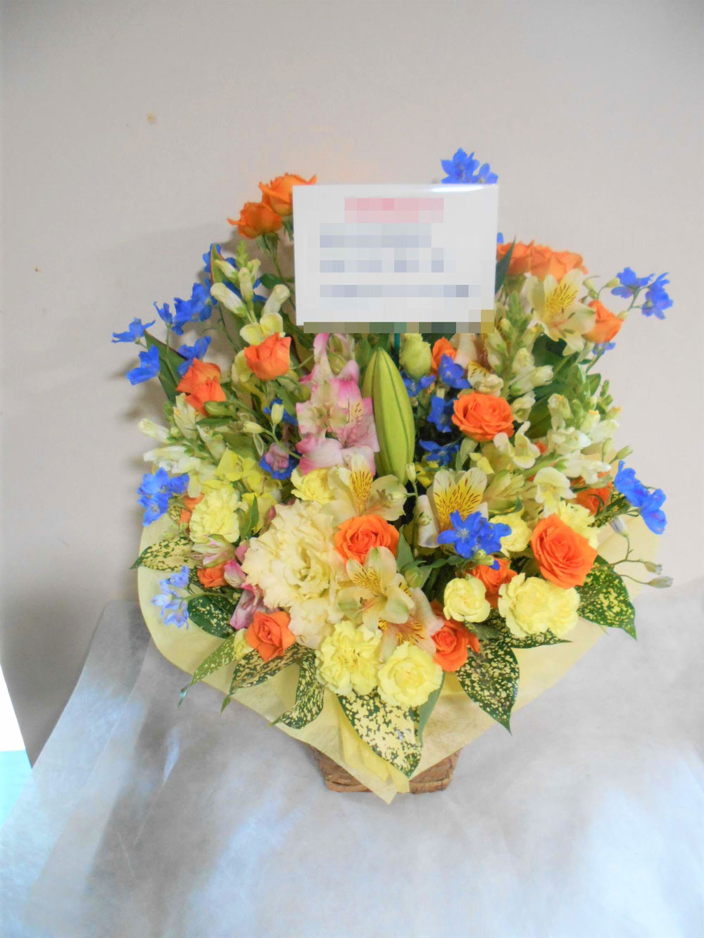 この写真は、実際にお届けさせていただいたアレンジメントです
