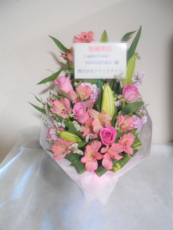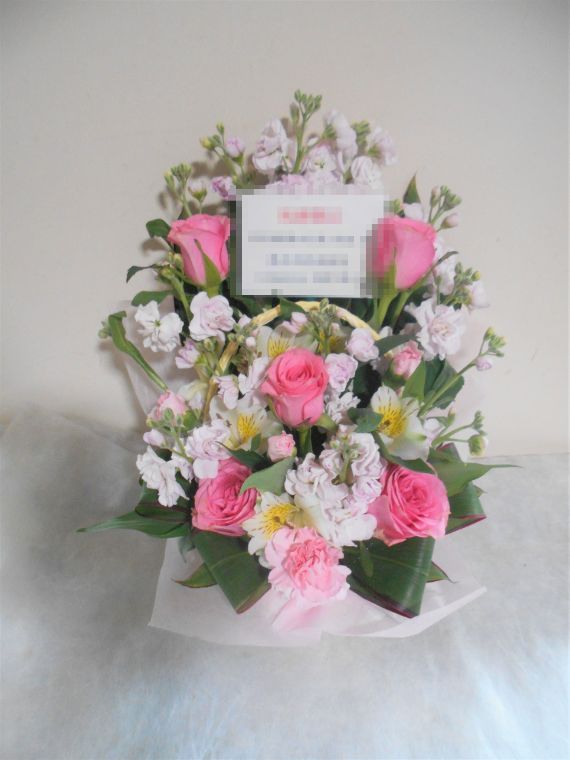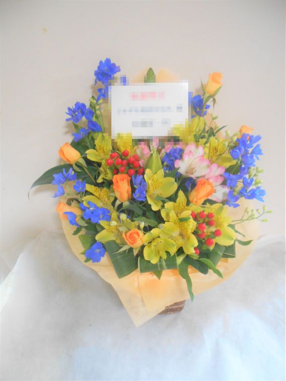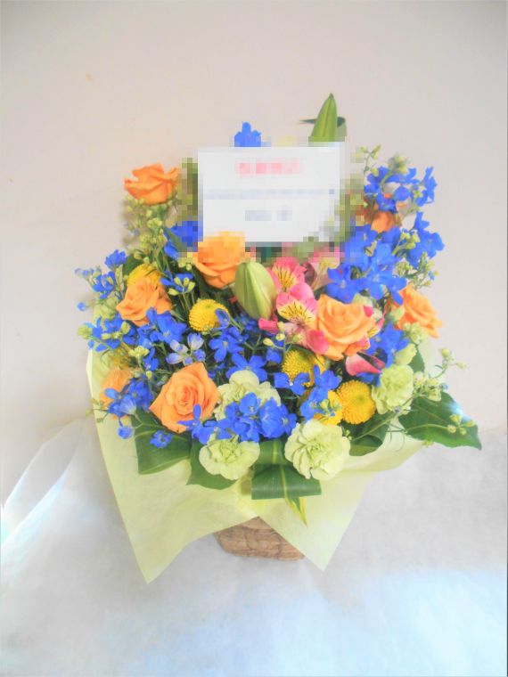この写真は、実際にお届けさせていただいたアレンジメントです