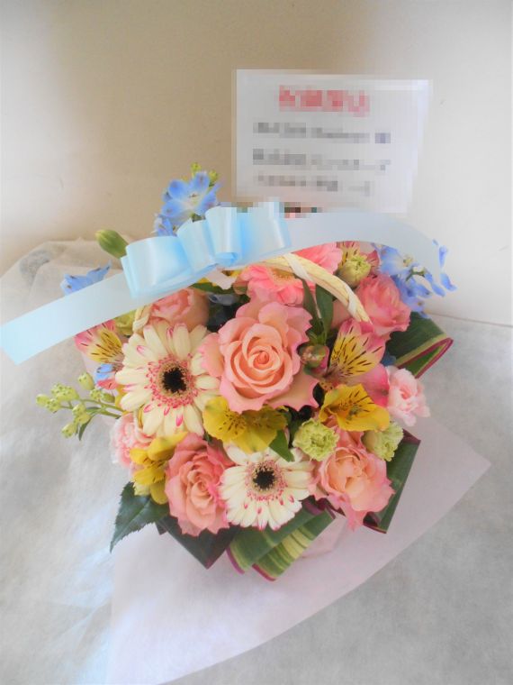 生花(バスケット)サイズ 約[H:25(取手H約27)×W:20(cm)]