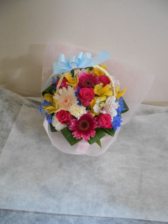 生花(バスケット)サイズ 約[H:25(取手H約27)×W:20(cm)]