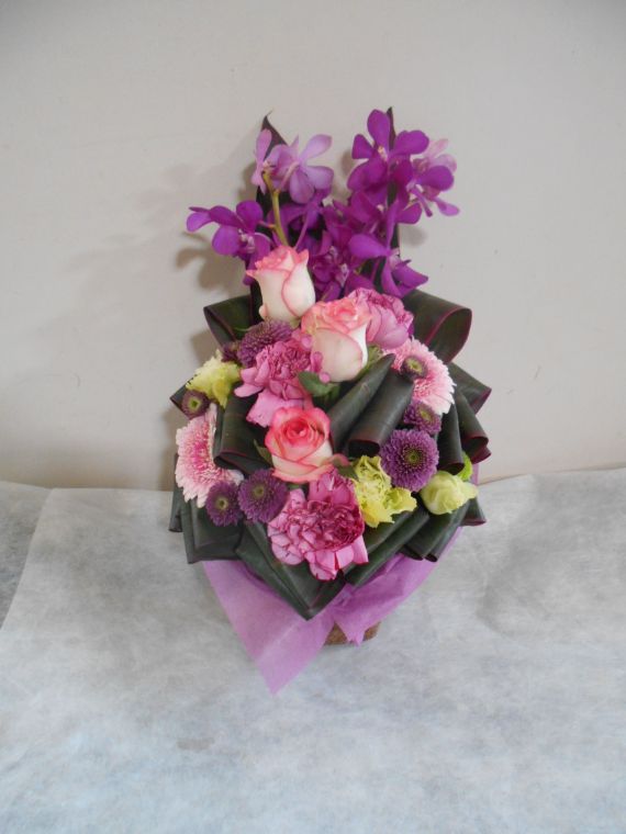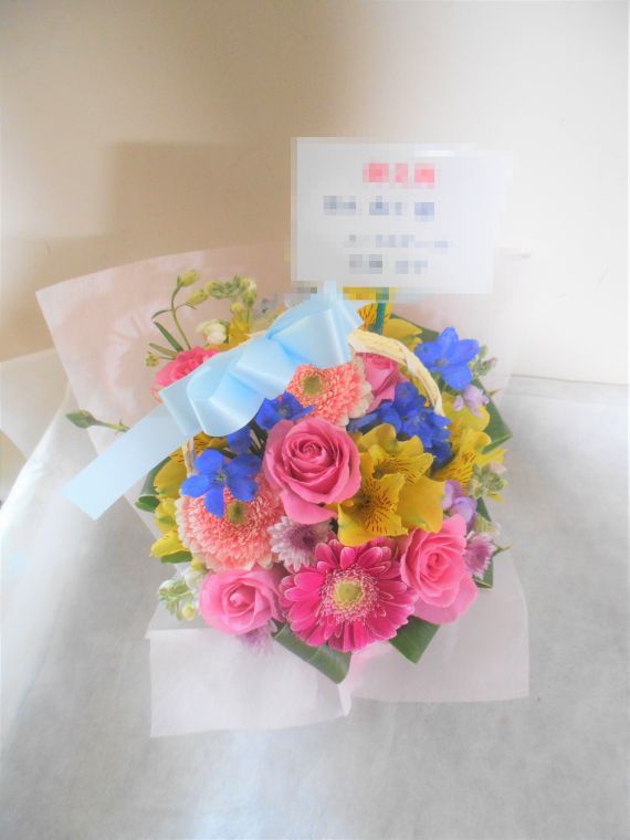 この写真は、実際にお届けさせていただいたアレンジメントです