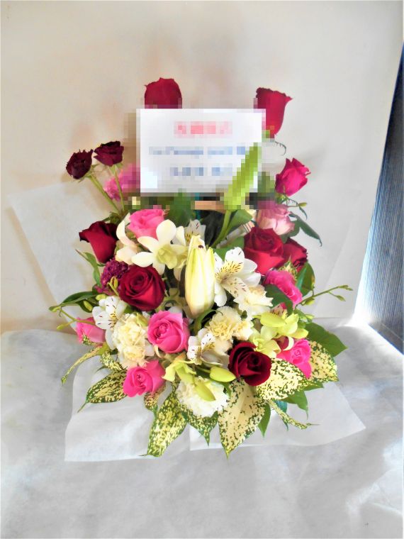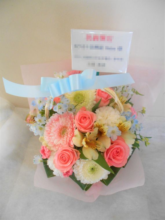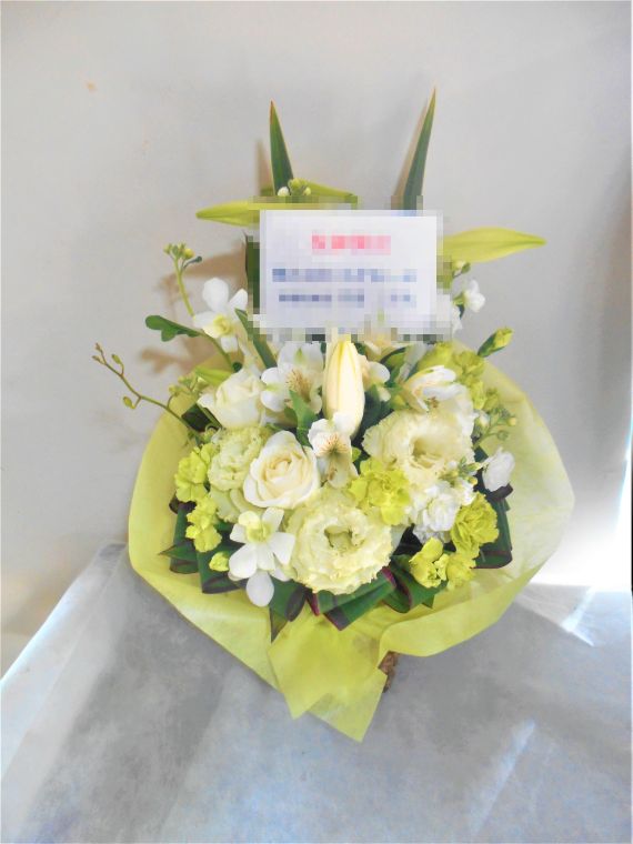 この写真は、実際にお届けさせていただいたアレンジメントです