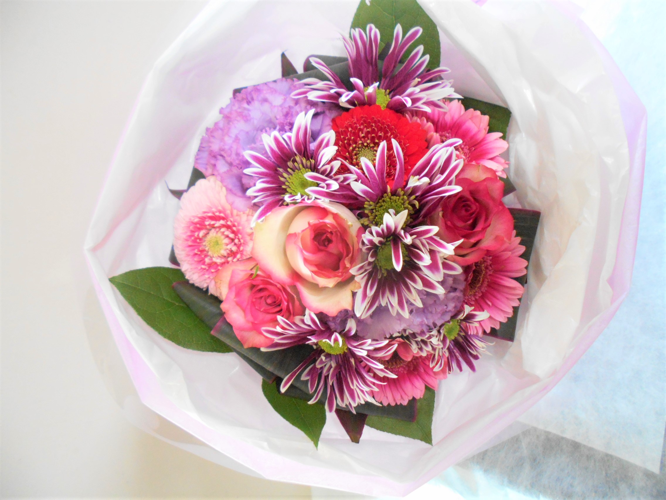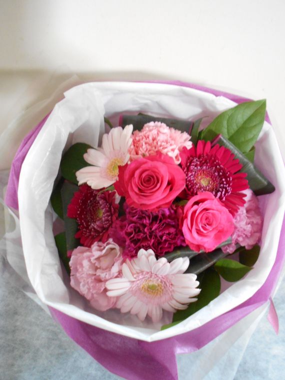 この写真は、実際にお届けさせていただいたアレンジメントです