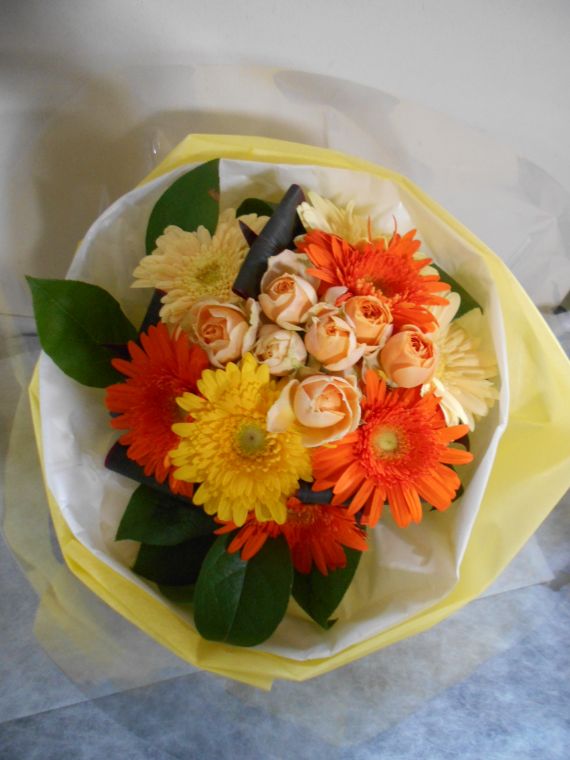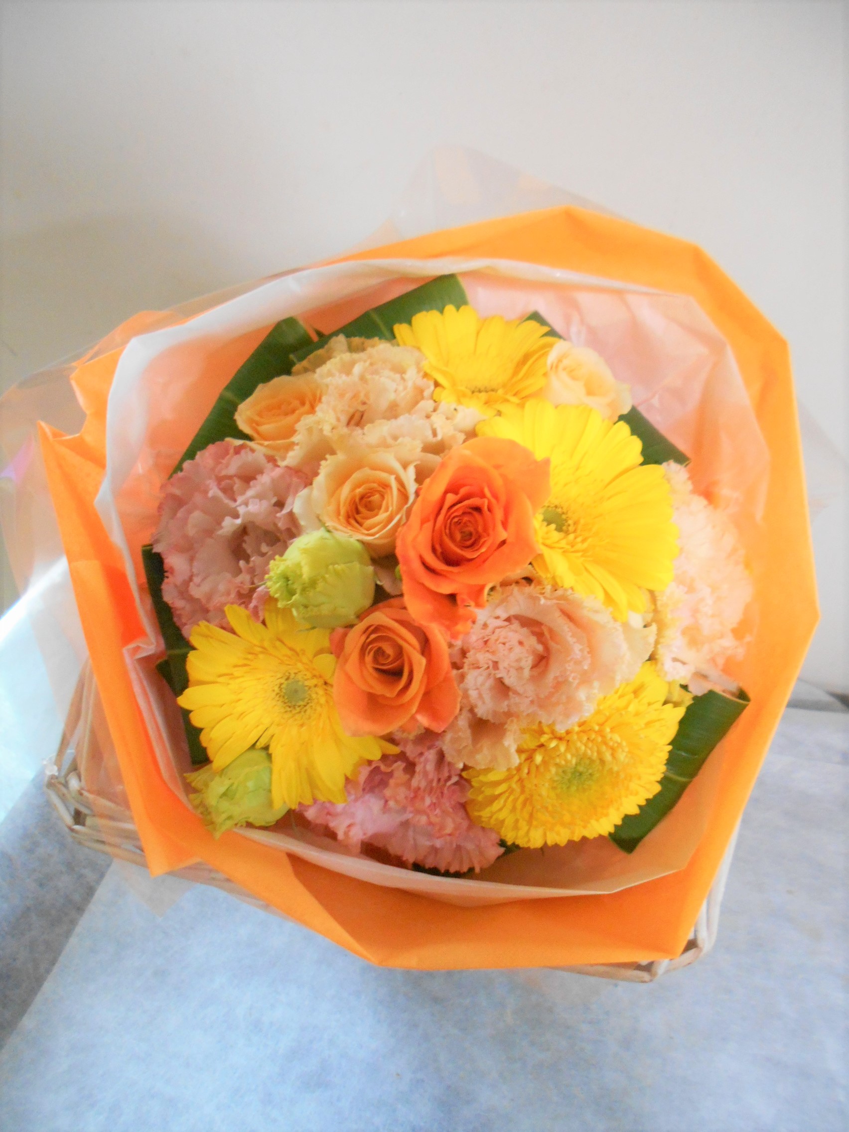 鮮やかな黄色オレンジ系のブーケ(花束)