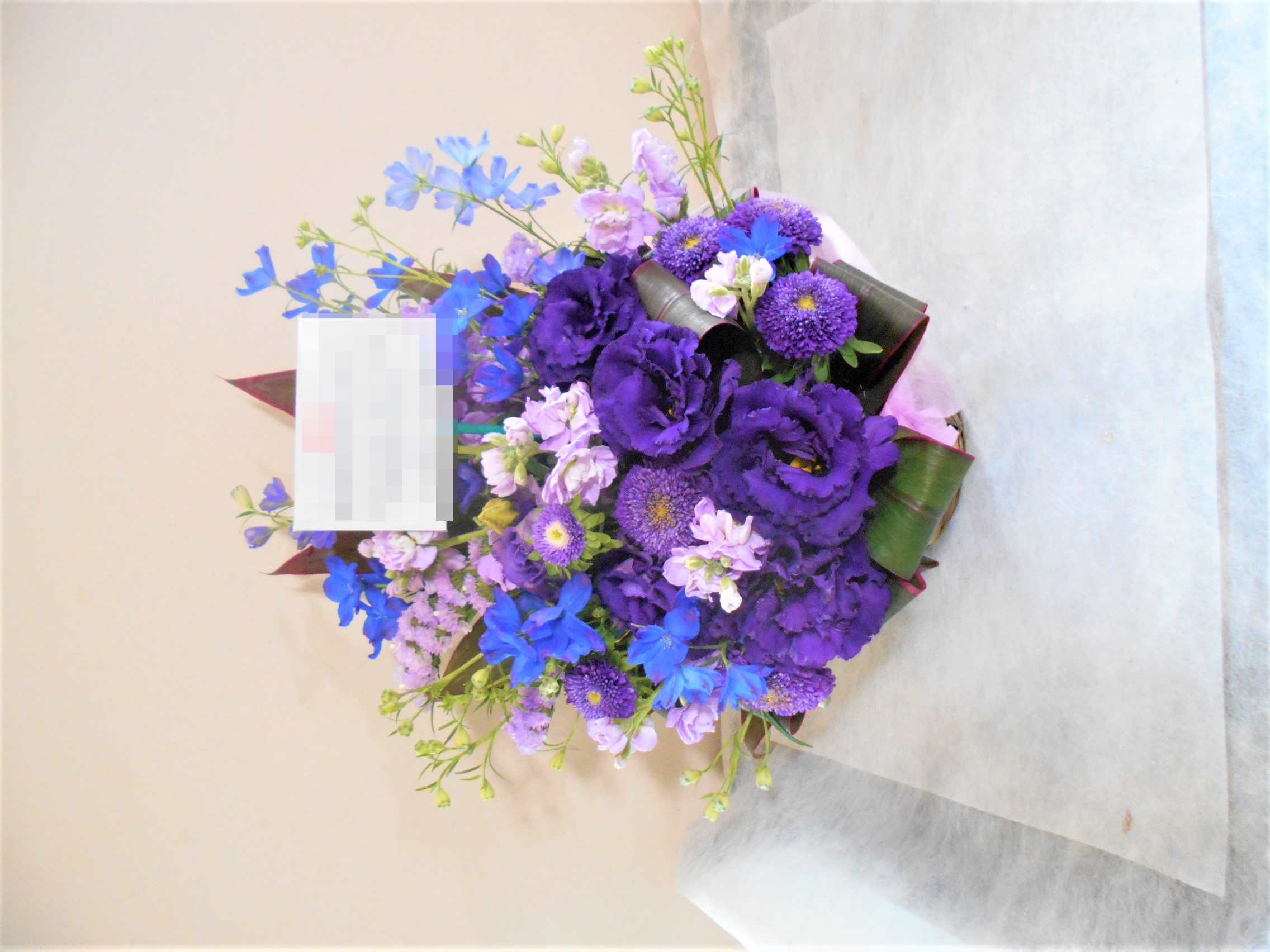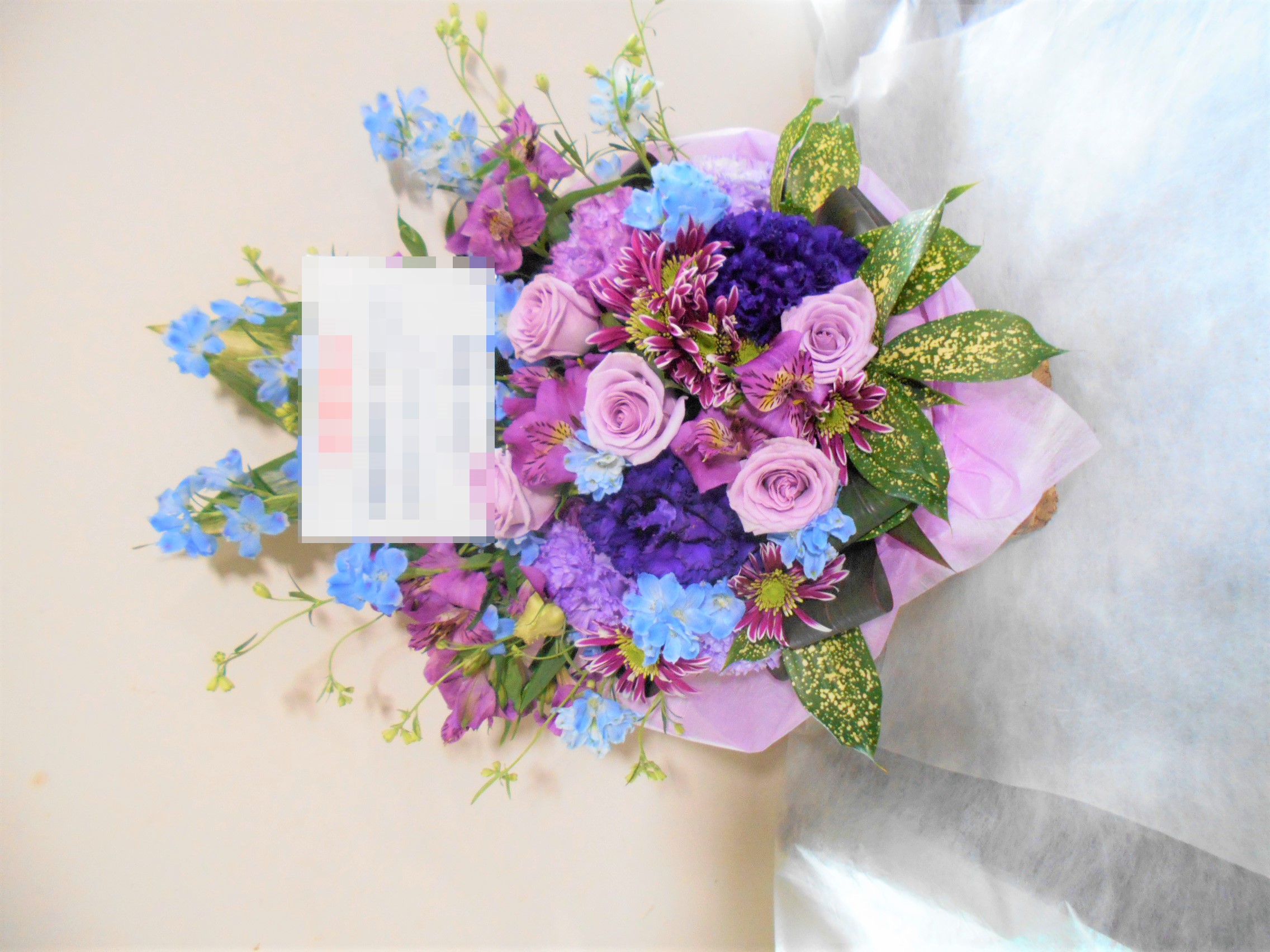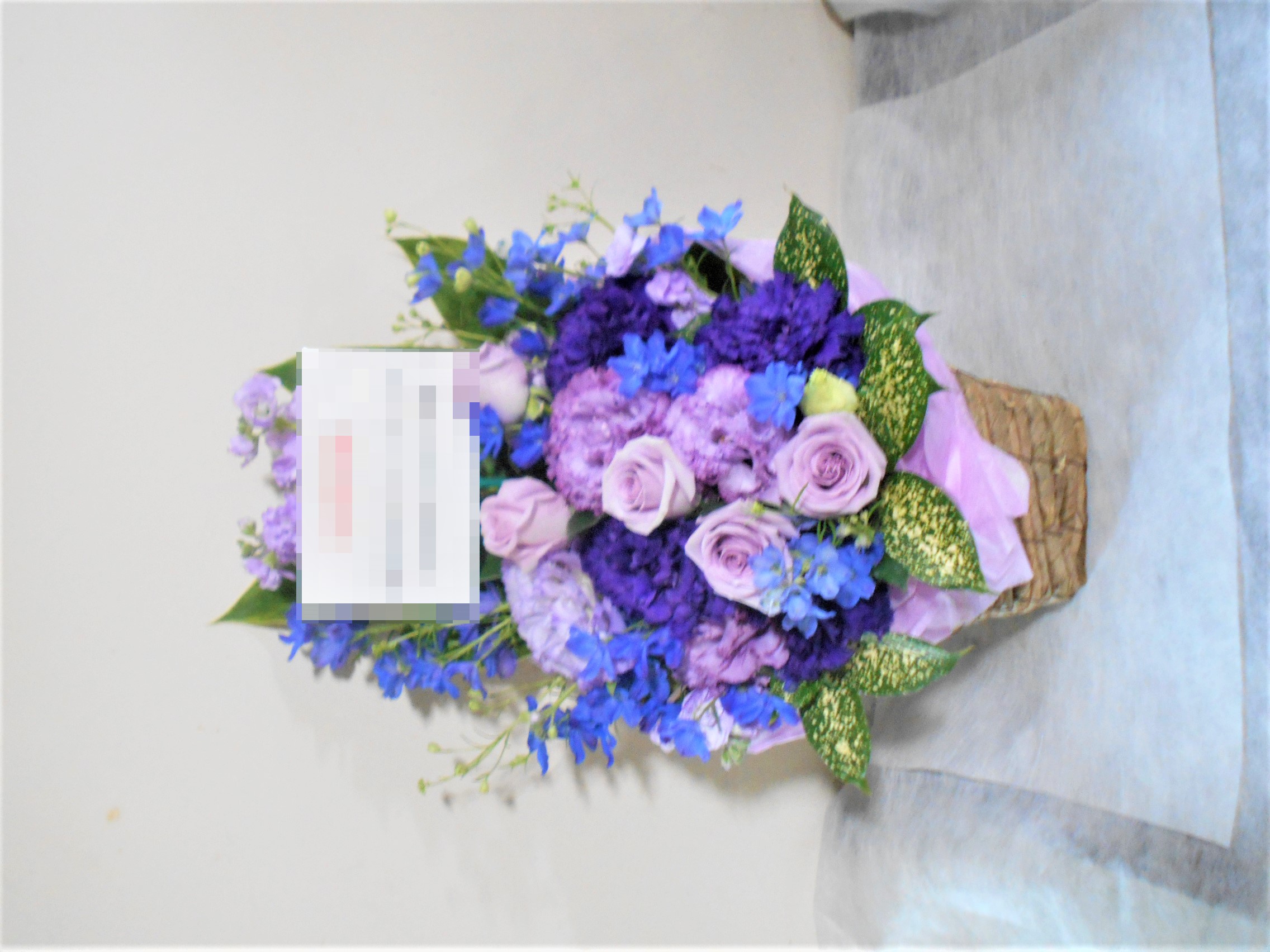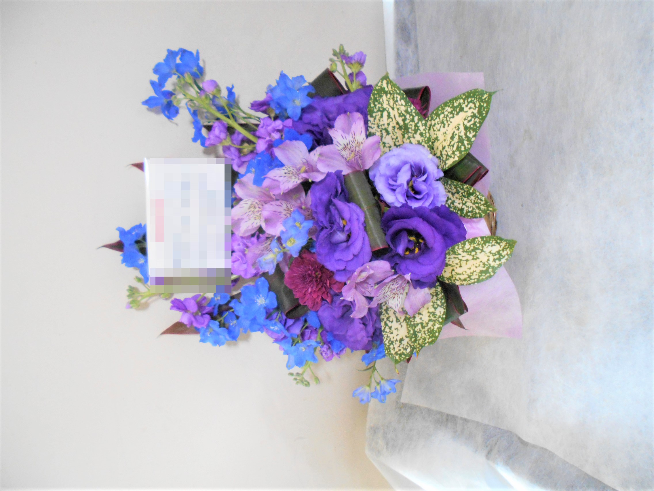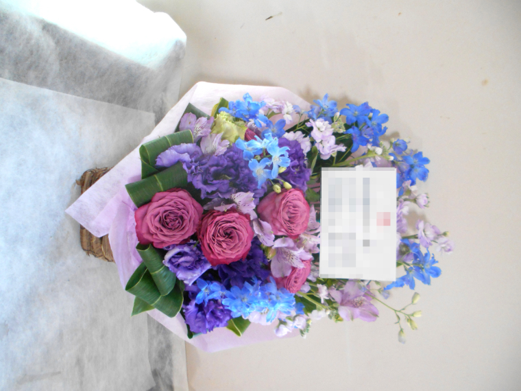 この写真は、実際にお届けさせていただいたアレンジメントです