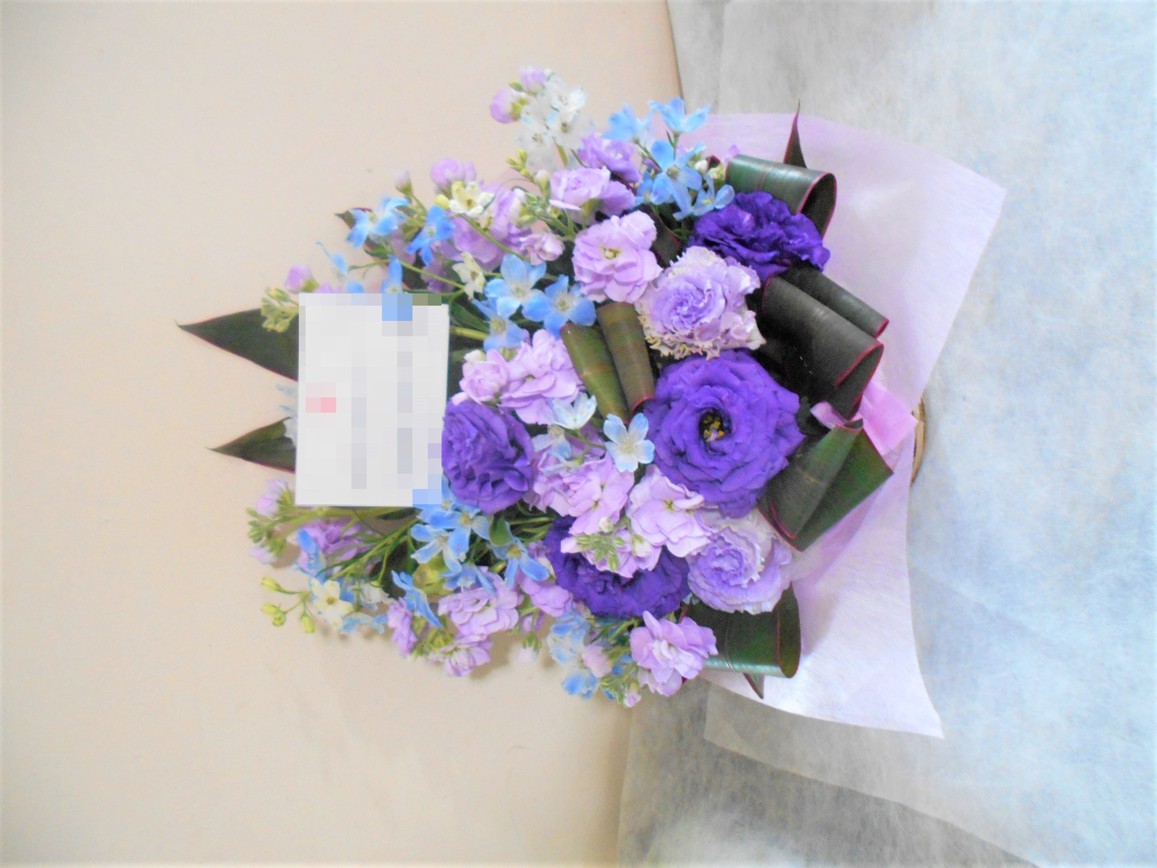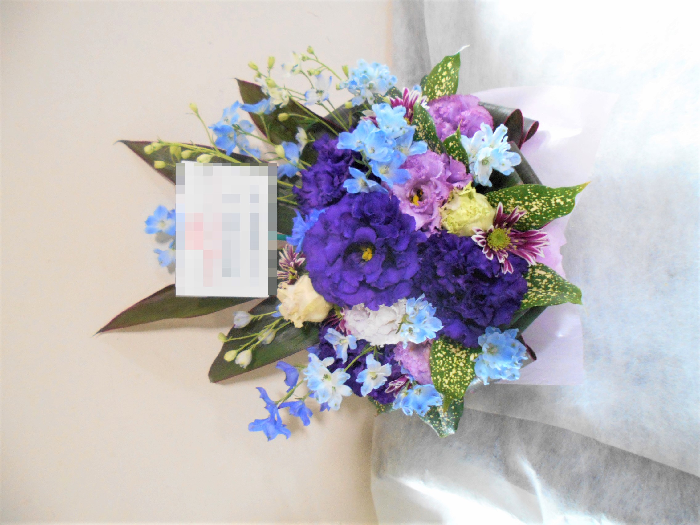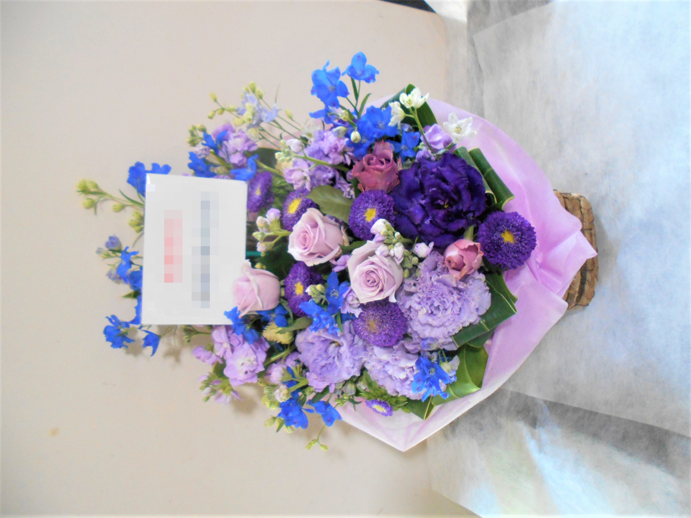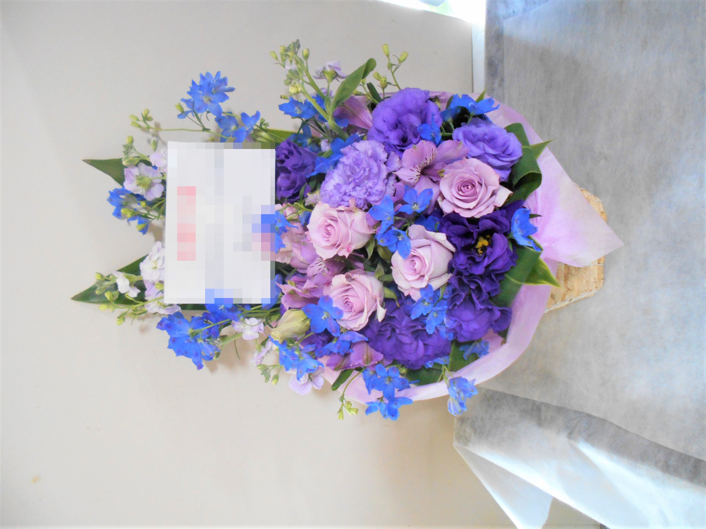 この写真は、実際にお届けさせていただいたアレンジメントです