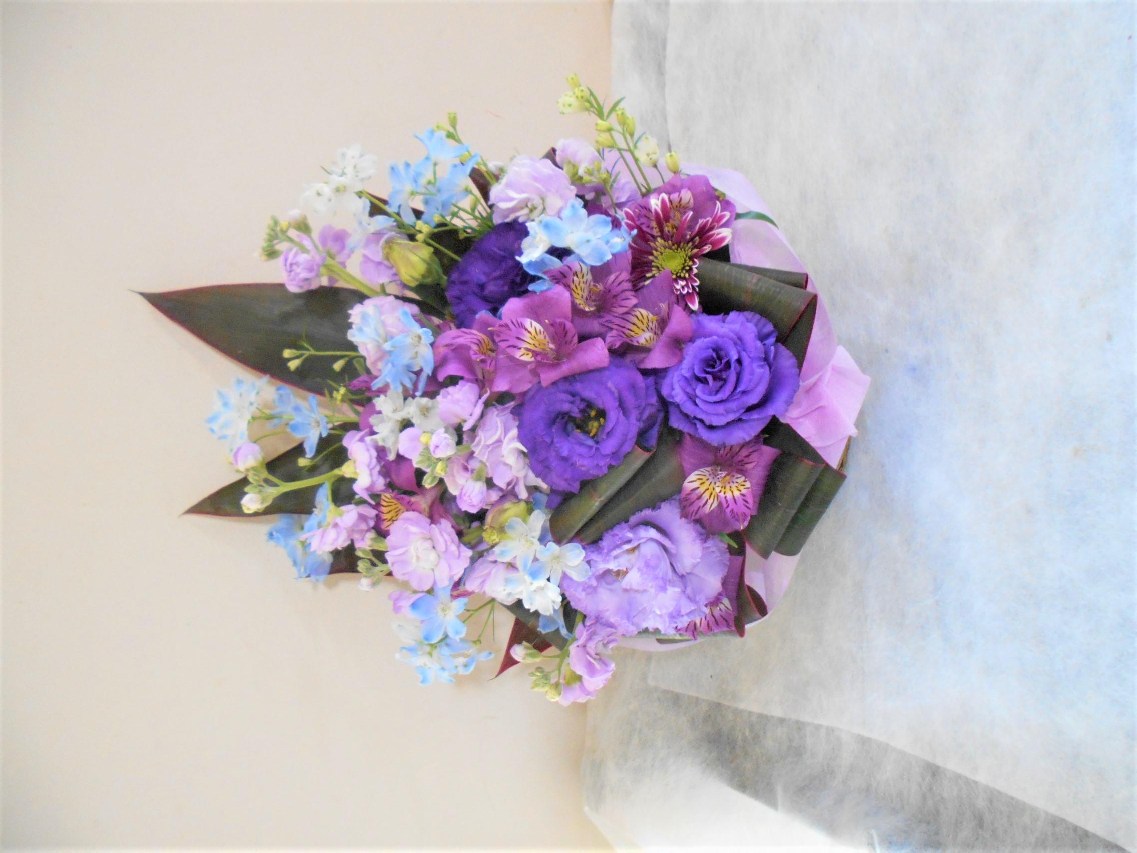 喜寿(77歳)のお祝い紫色のお花メインのアレンジメント10000