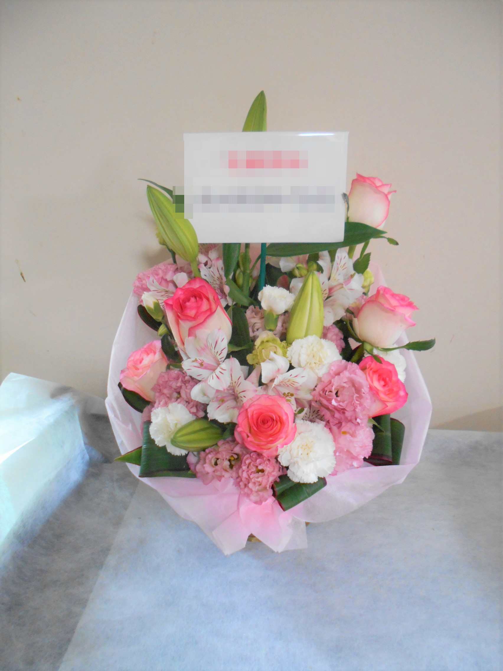 この写真は、実際にお届けさせていただいたアレンジメントです