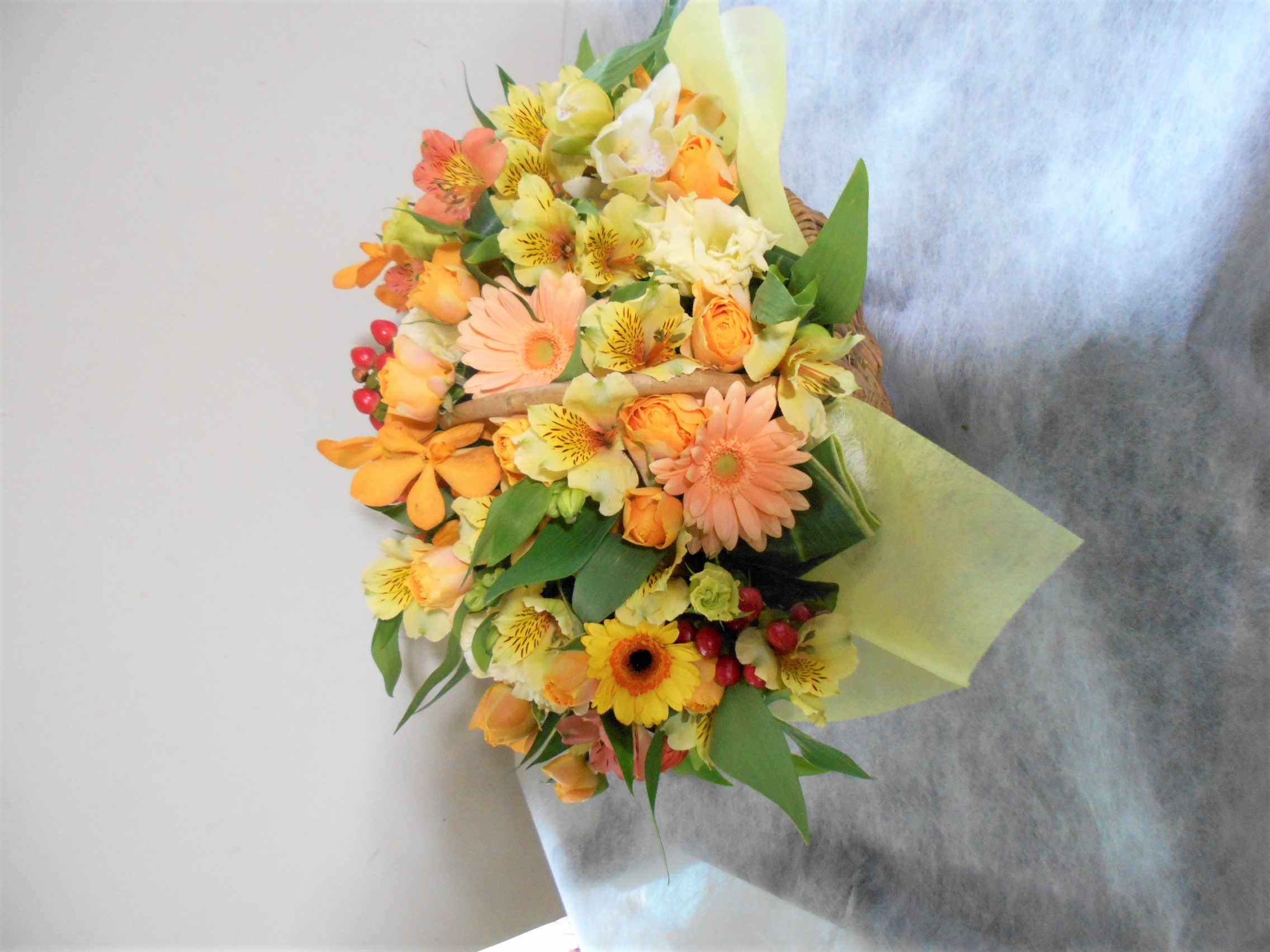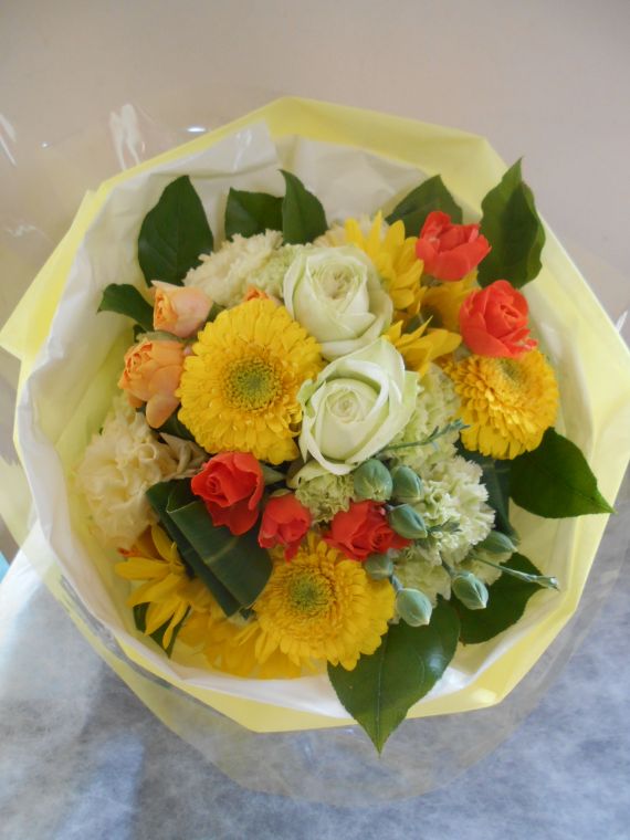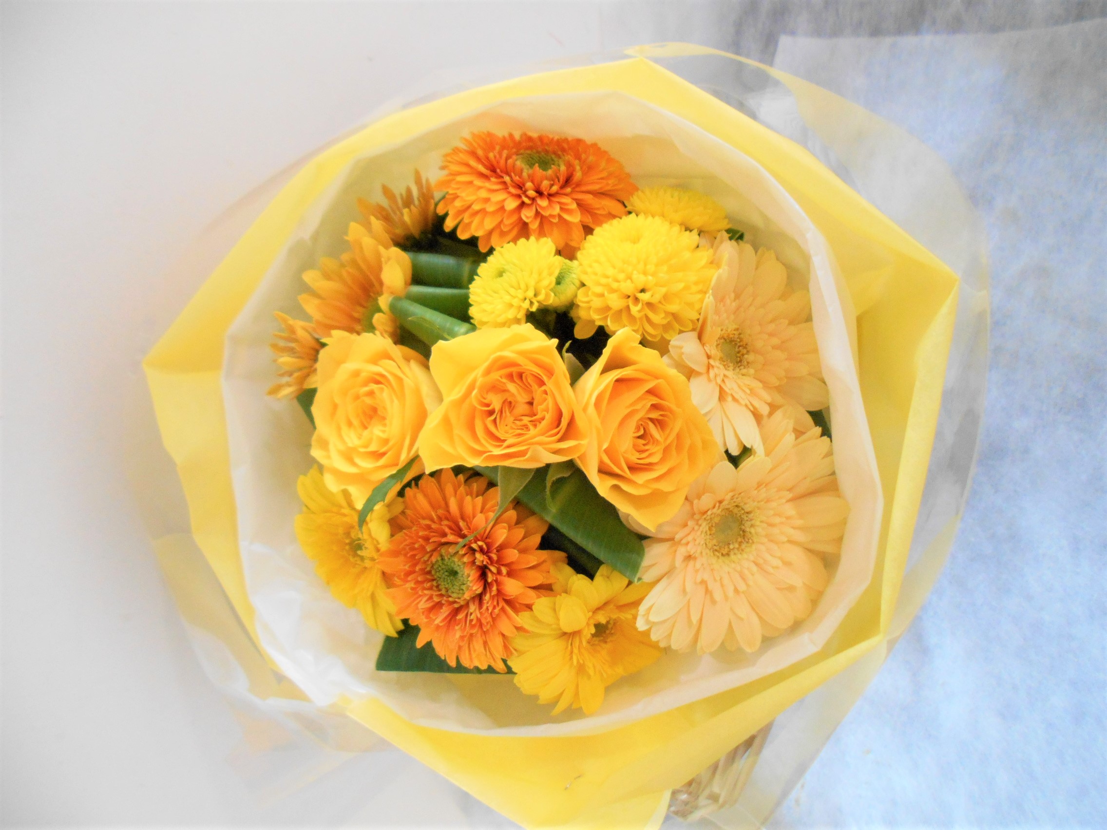 鮮やかな黄色オレンジ系のブーケ(花束)