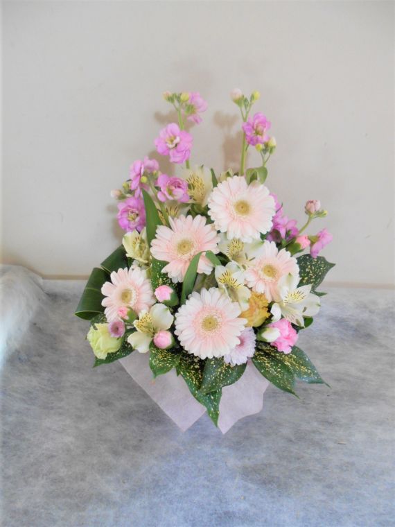 この写真は、実際にお届けさせていただいたアレンジメントです