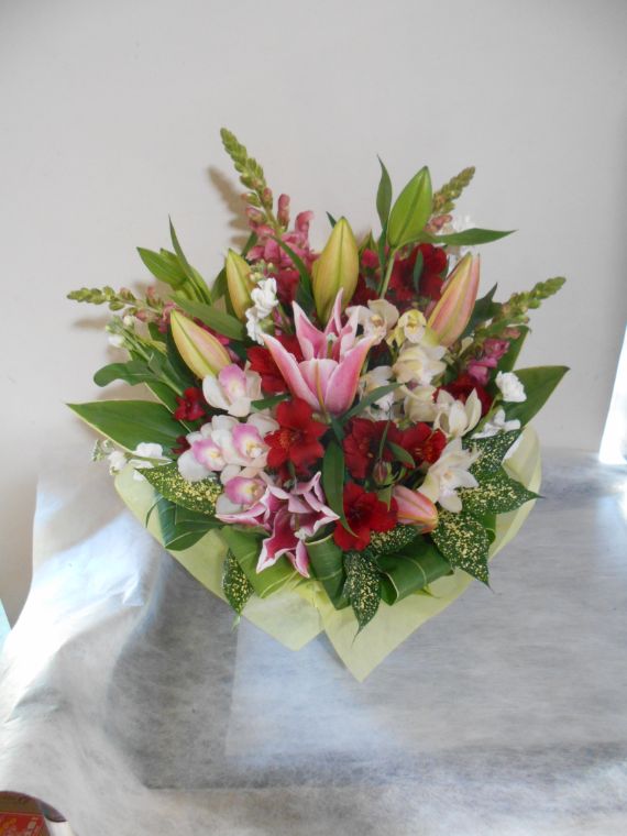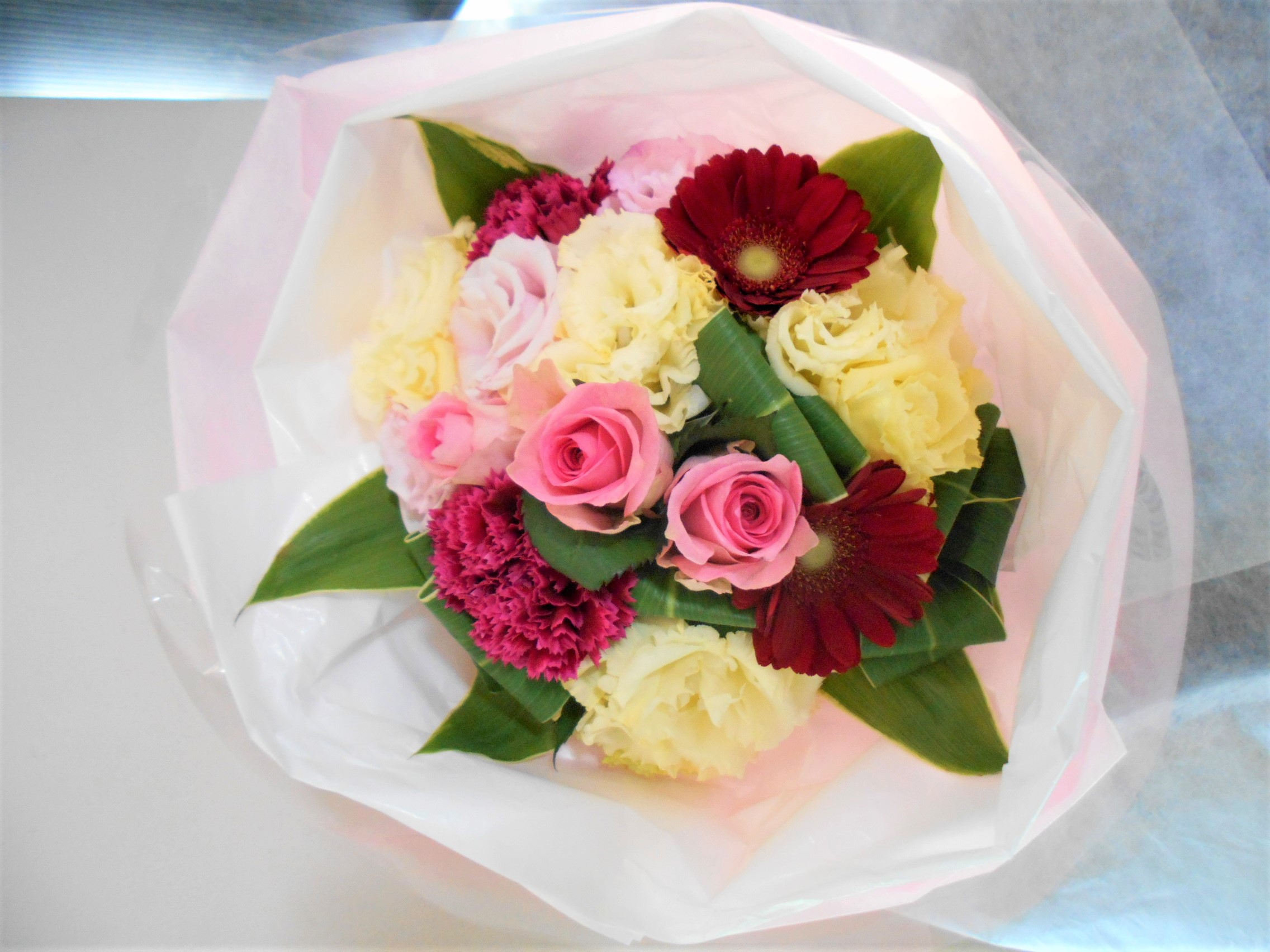ピンク・レッド・クリームイエロー系のブーケ(花束)