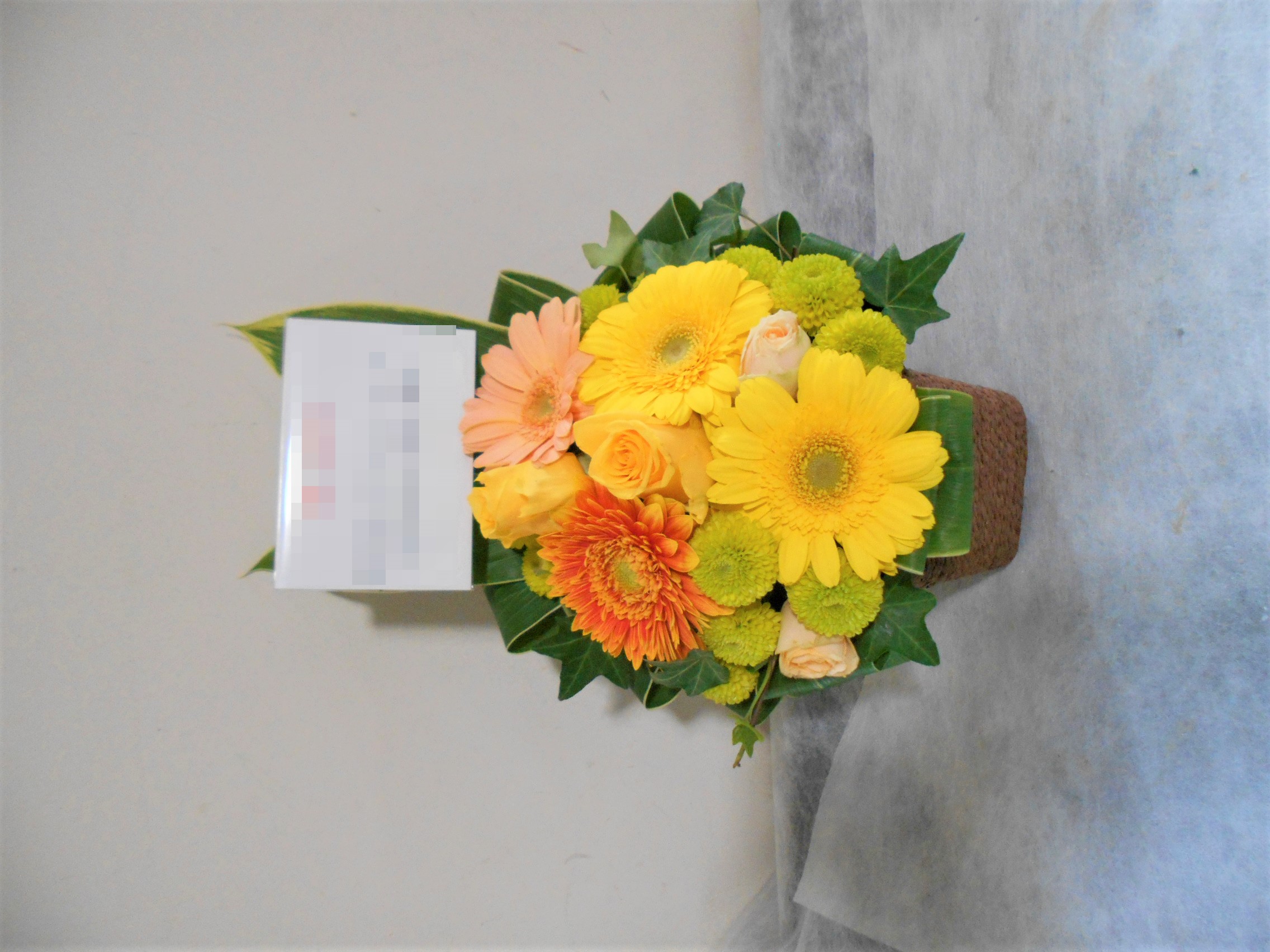 アレンジメントの実際にお届けした写真です。花秘書では発送前に写真をメールで送信致しますので安心して大切な顧客や取引様へのギフトにご利用頂けます。