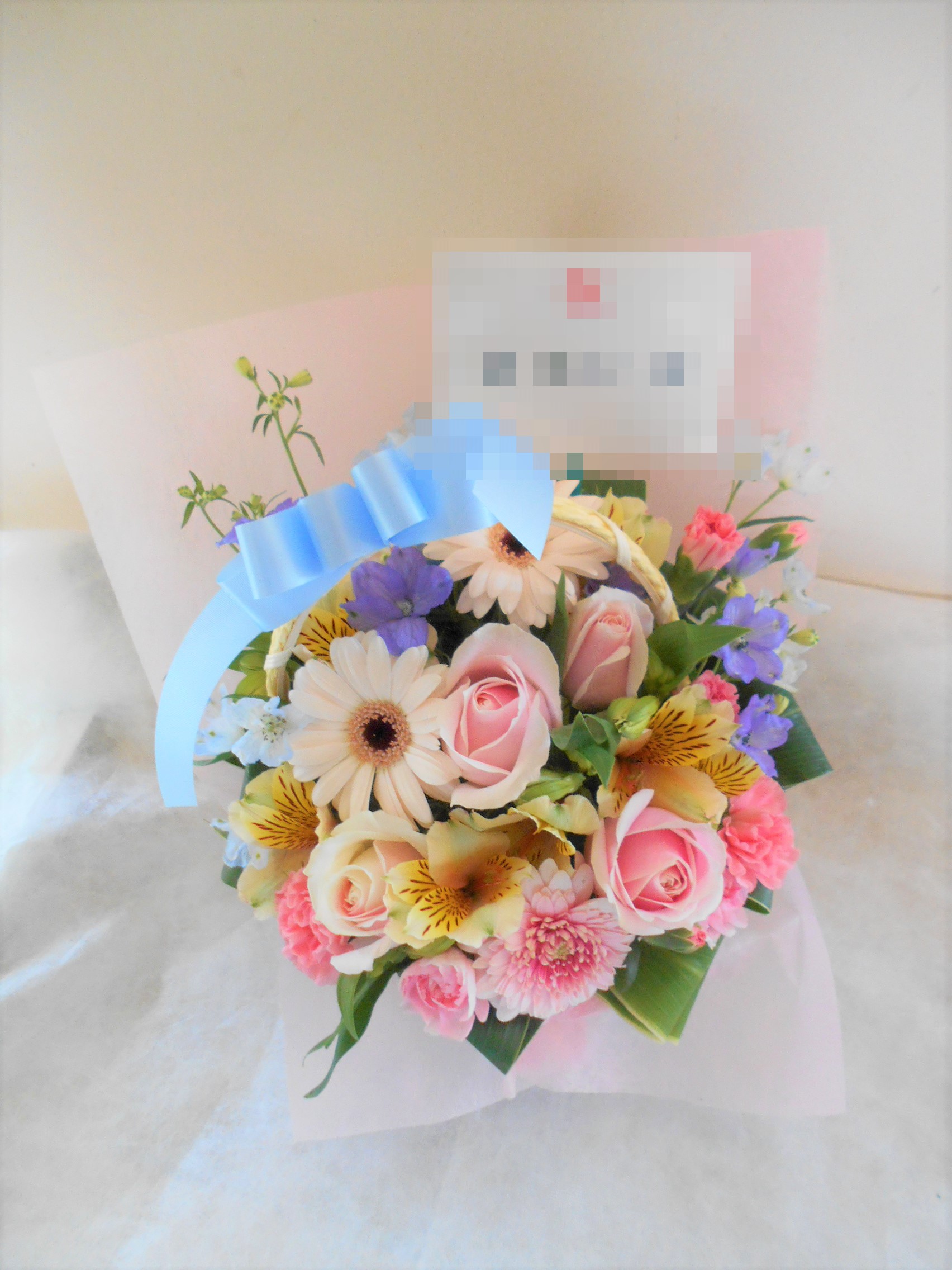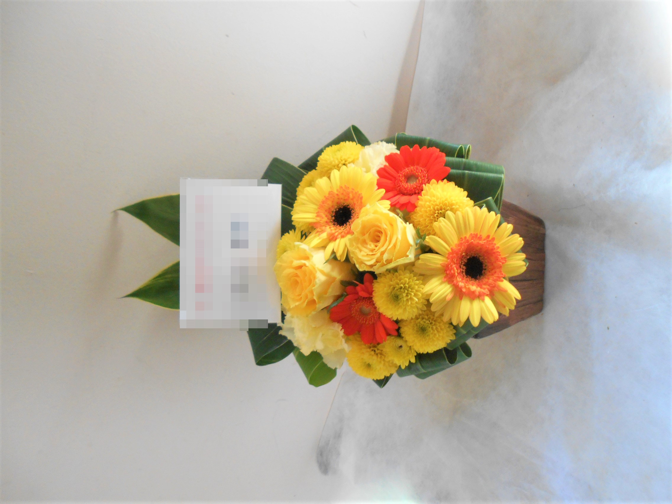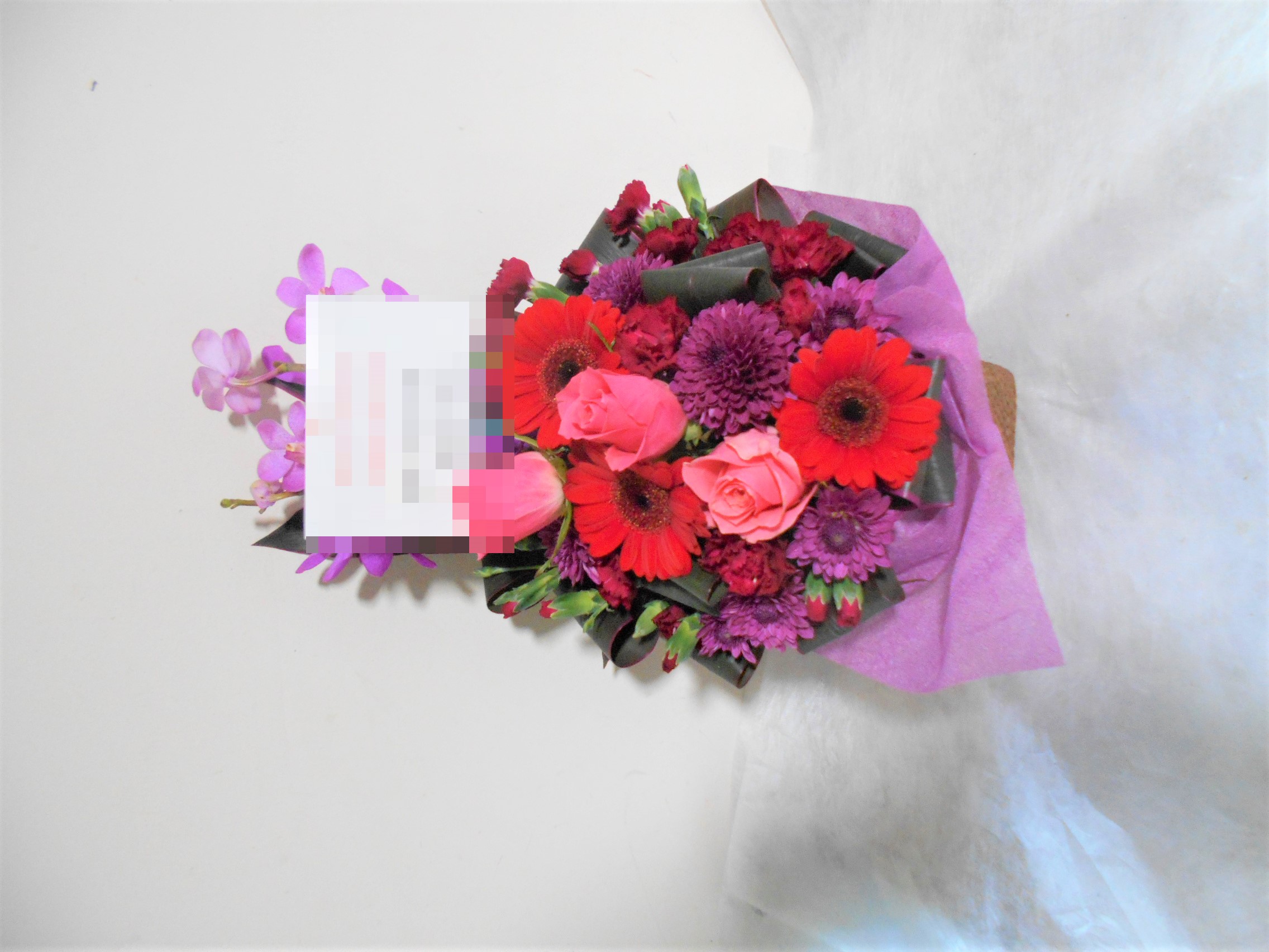 この写真は、実際にお届けさせていただいたアレンジメントです
