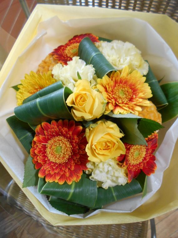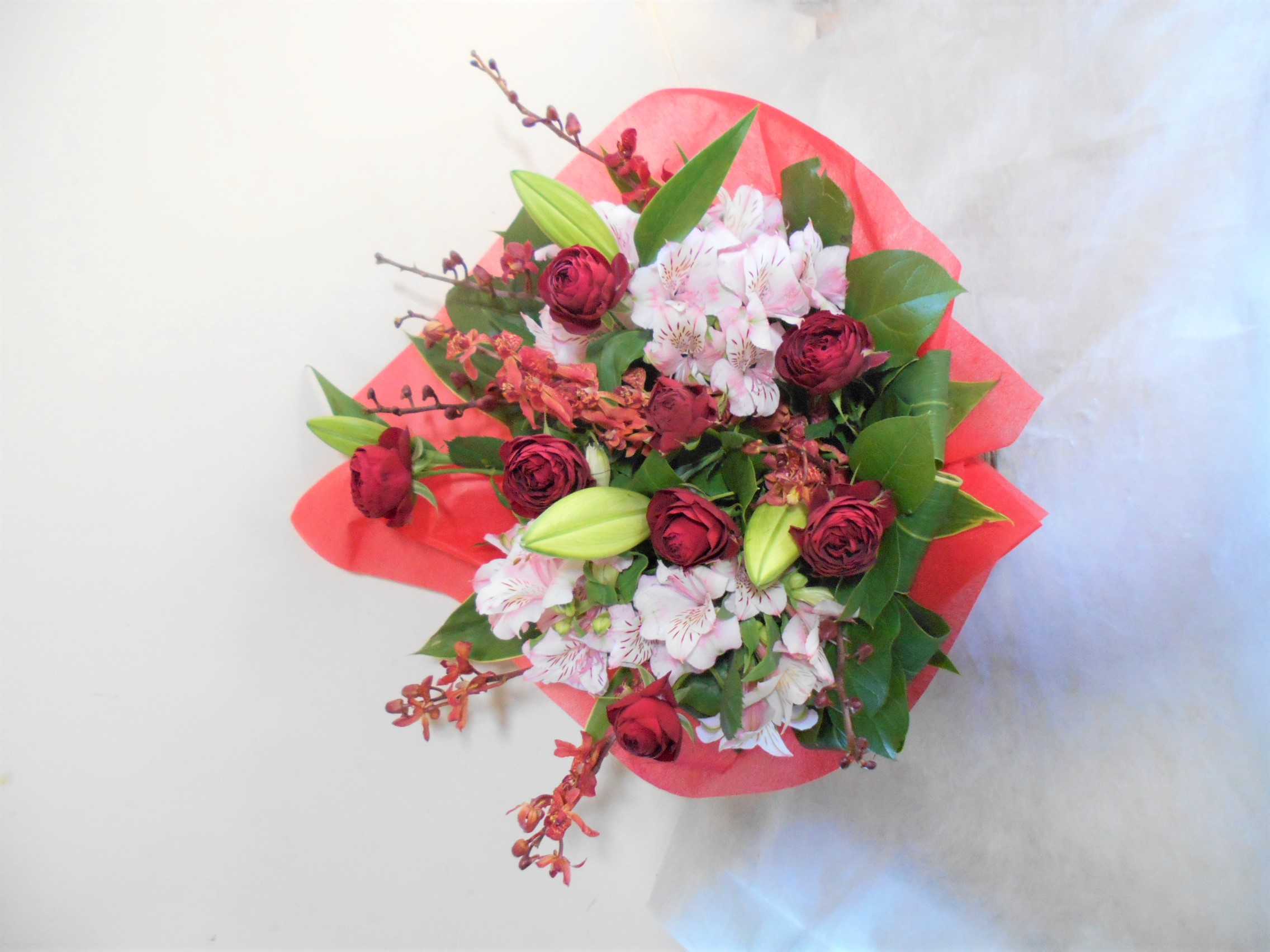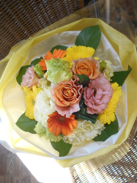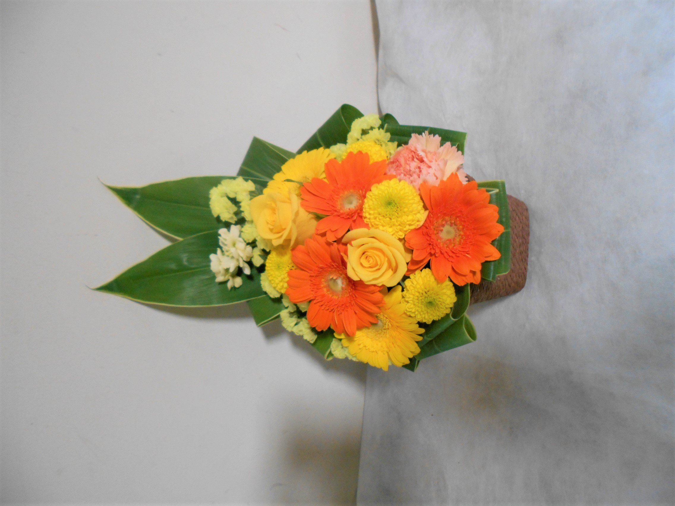 この写真は、実際にお届けさせていただいたアレンジメントです